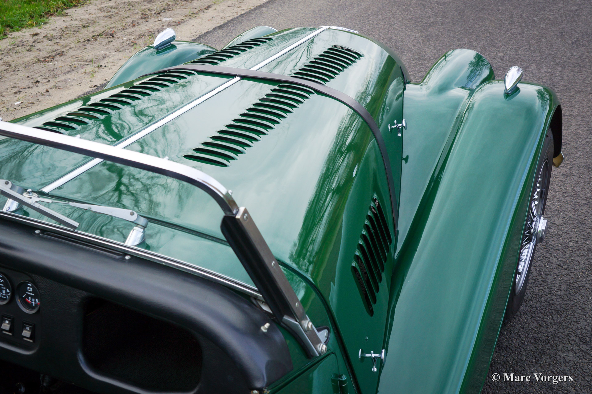 The Morgan 4/4 was built for over 50 years. The first model, introduced in the year 1936 was the 4/4 with flat radiator which was built until the year 1951. After a four year break (only the Morgan plus 4 was built those years) the Morgan 4/4 was going to be rebuild. The car did not change a lot (conservative as they are at the Morgan company), only the shape of the radiator changed from flat to cowled. Morgan never built their own engine, the early flat radiator cars were powered by Standard or Ford engines. The cowled radiator models were powered by Ford engines. The Ford engine used was known as the "Kent" engine and was also used in Fords Cortina model. Morgan 4/4 1600 cars were powered by the 1599 cc. Ford Kent engine which had a standard capacity of 98 bhp. giving the light car (two seater 660 kg./ four seater 785 kg.) sporty performance. The cars were fitted with a four speed manual gearbox. The modern Morgan 4/4 models are powered by a Ford Zetec 16V engine. These cars feature petrol injection and a five speed manual gearbox. The Morgan 4/4 is a very special car to drive because it has it's own strong character. It cannot be compared with any other roadster or convertible.