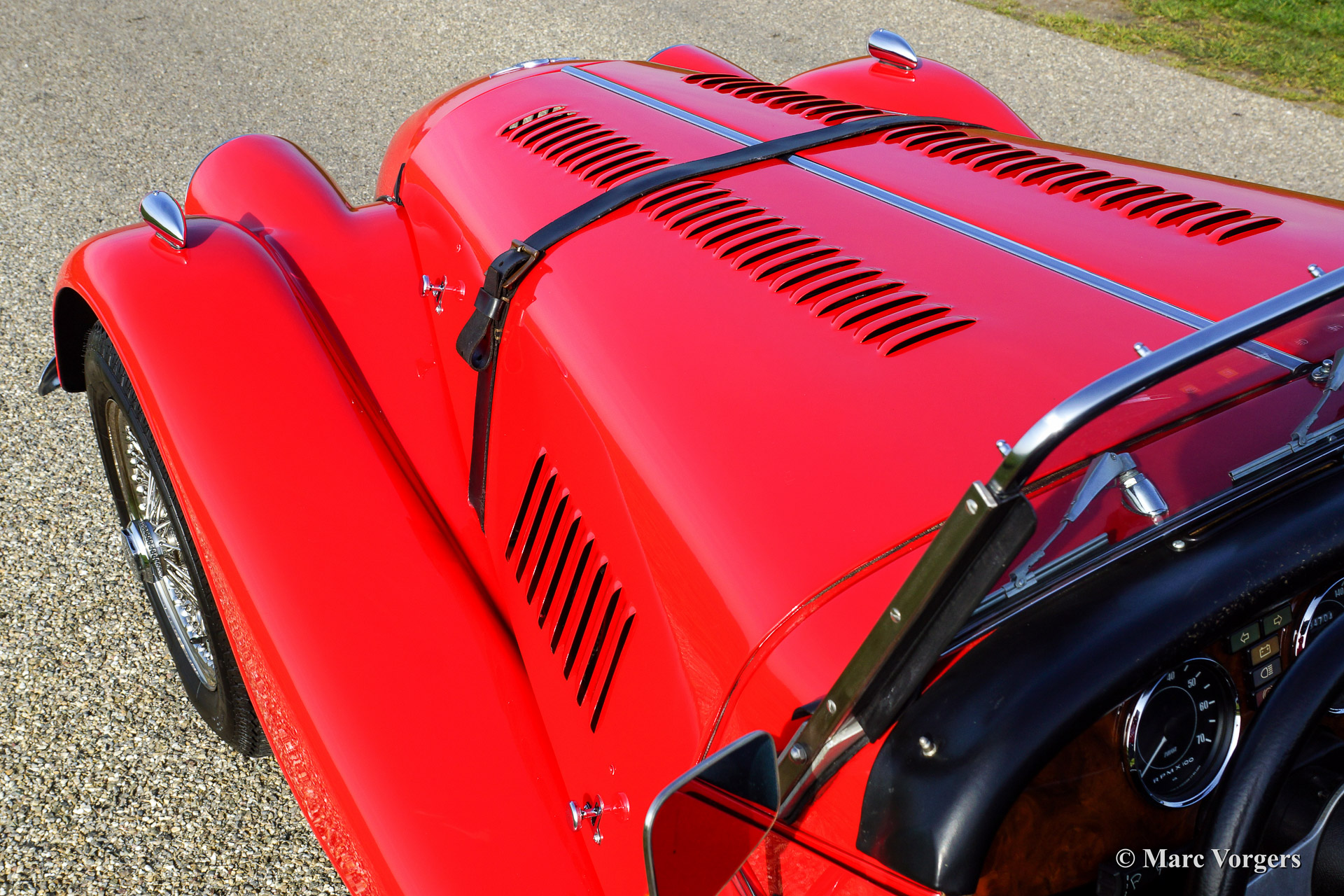 The Morgan 4/4 was built for 50 years. the first model, introduced in the year 1936 was the 4/4 with flat radiator which was built until the year 1951. After a four year break (only the Morgan plus 4 was built those years) the Morgan 4/4 was going to be rebuild. The car did not change a lot (conservative as they are at the Morgan company), only the shape of the radiator changed from flat to cowled. Morgan never built their own engine, the early flat radiator cars were powered by Standard or Ford engines. The cowled radiator models were powered by Ford engines. The Ford engine used was known as the "Kent" engine and was also used in Fords Cortina model. Morgan 4/4 1600 cars were powered by the 1599 cc. Ford Kent engine which had a standard capacity of 98 bhp. giving the light car (two seater 660 kg./ four seater 785 kg.) sporty performance. The cars were fitted with a four speed manual gearbox. The modern Morgan 4/4 models are powered by a Ford Zetec 16V engine. These cars feature petrol injection and a five speed manual gearbox. The Morgan 4/4 is a very special car to drive because it has it's own strong character. It cannot be compared with any other roadster or convertible.