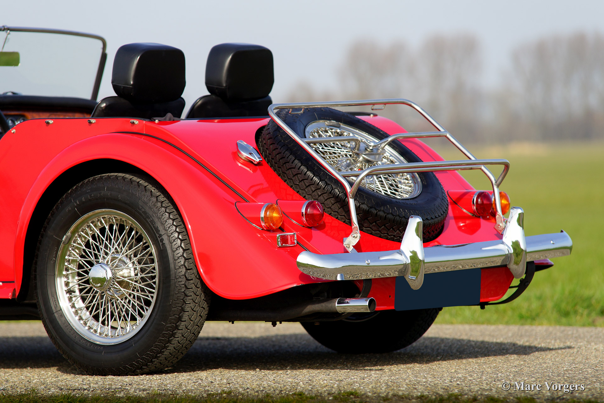 Morgan 4/4 1800, year 1988. Colour red with a black leather interior and black carpet. Black soft top and tonneau cover.