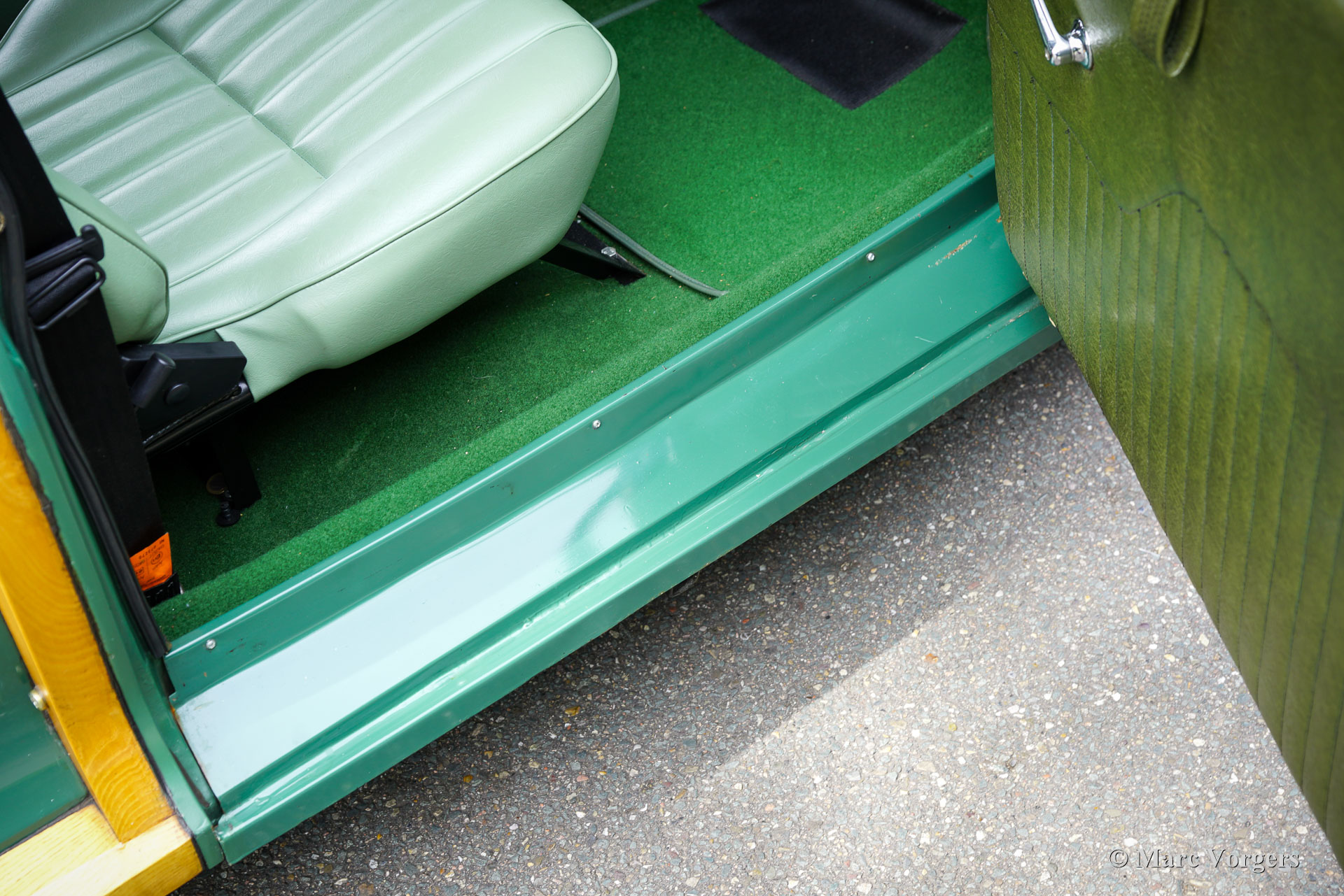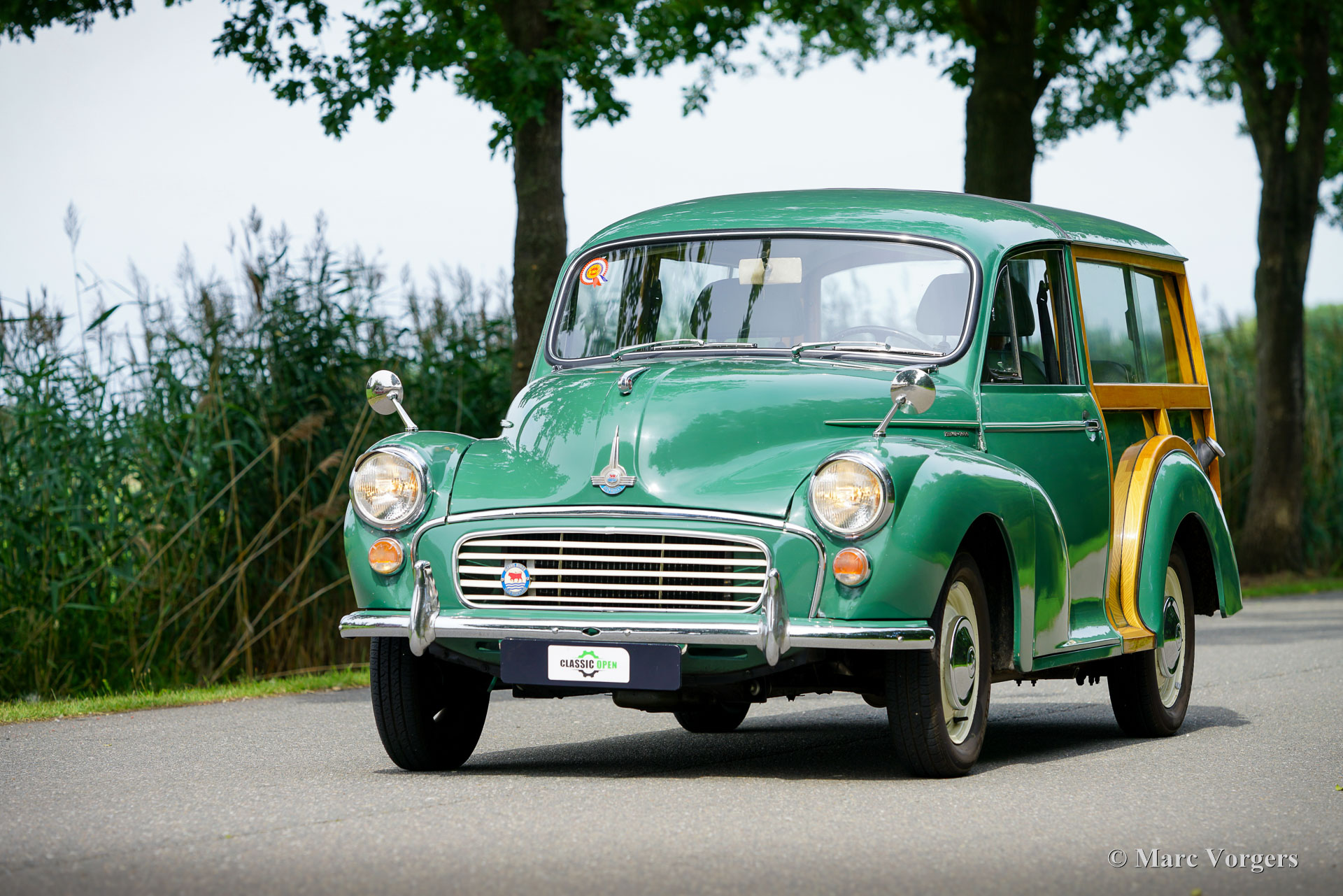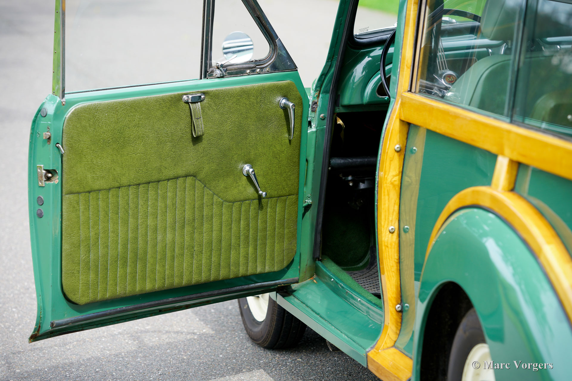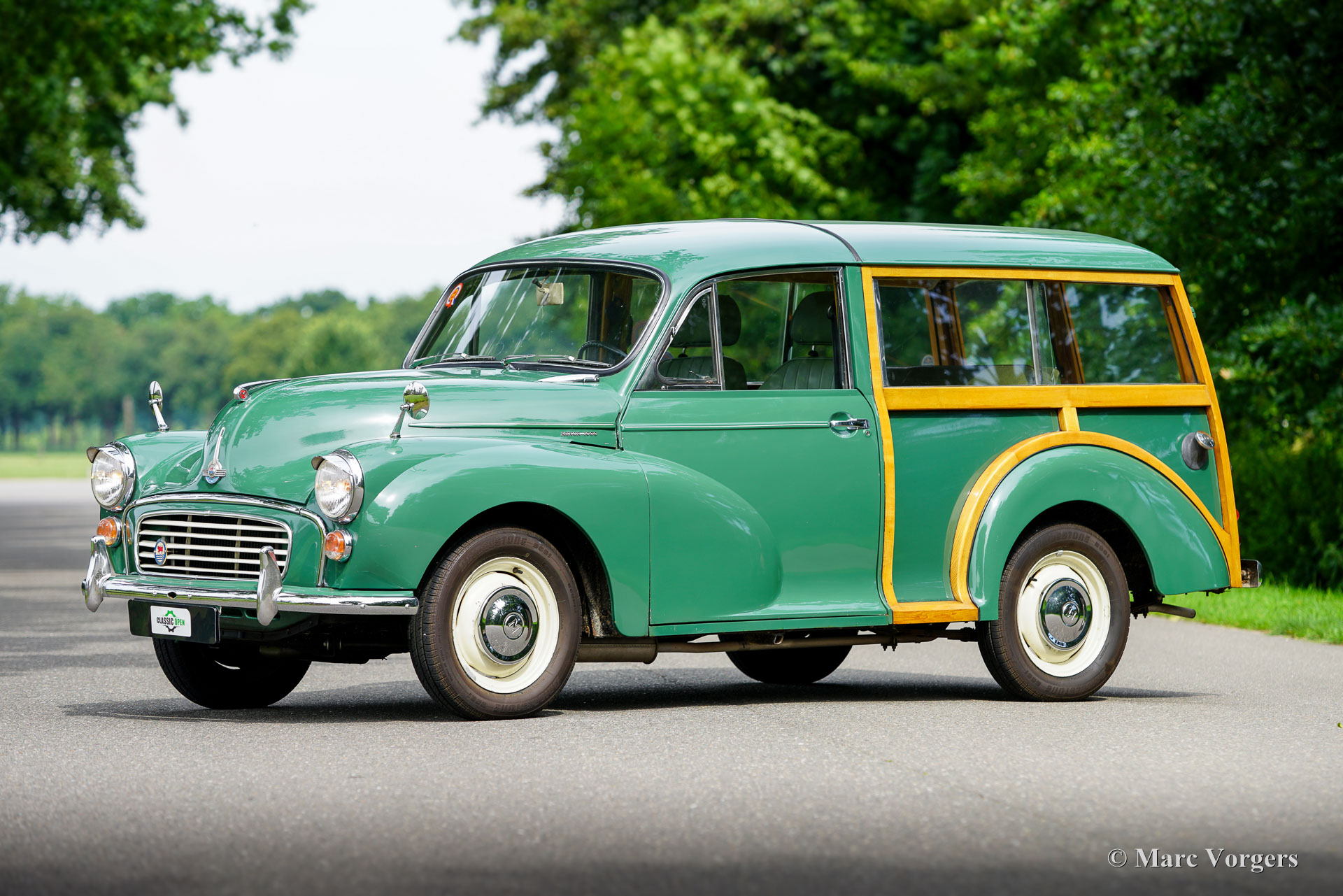 Morris Minor 1000 Traveller, année 1965. Présentée en vert amande avec un intérieur vert assorti, cette Morris Minor 1000 Traveller de 1965 a été importée d'Angleterre en 2001. La voiture fut soigneusement entretenue aux Pays-Bas depuis. Un historique complet accompagne la voiture, documentant les entretiens de routine et la conversion à la conduite à gauche. En 2007-2008, la carrosserie fut restaurée par un spécialiste Morris Minor en Angleterre. Pour plus de confort, des sièges modernes réglables d'une nuance de vert complémentaire furent installés, tandis que les sièges d'origine sont restés avec la voiture et sont en bon état. Au cours des 24 dernières années, la voiture a parcouru environ 10.000 miles (16 000 km). La dernière révision majeure a eu lieu en septembre 2024. Le moteur familier de 1 098 cm³, équipé d'un simple carburateur SU et d'un allumage électronique, fonctionne parfaitement avec la boîte à quatre rapports. Cette magnifique Morris Minor Traveller allie raffinements pratiques et caractère authentique d'époque et est proposée avec une documentation complète. Complétez votre style rétro avec cette ravissante Morris Minor Traveller, idéale pour les sorties du week-end, les pique-niques en famille et les rassemblements locaux de voitures anciennes.