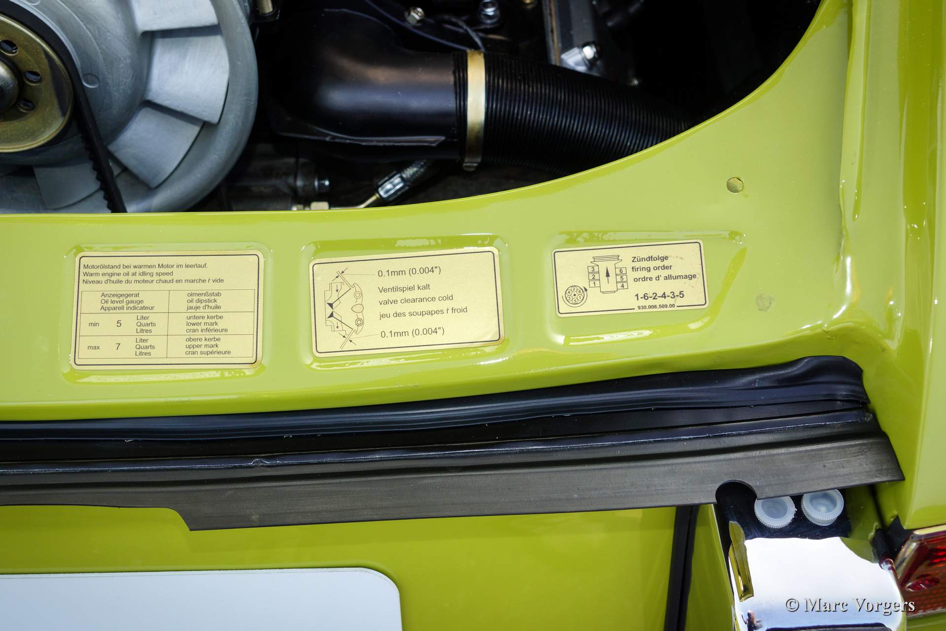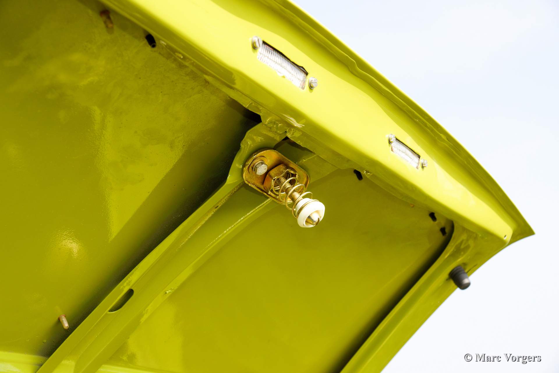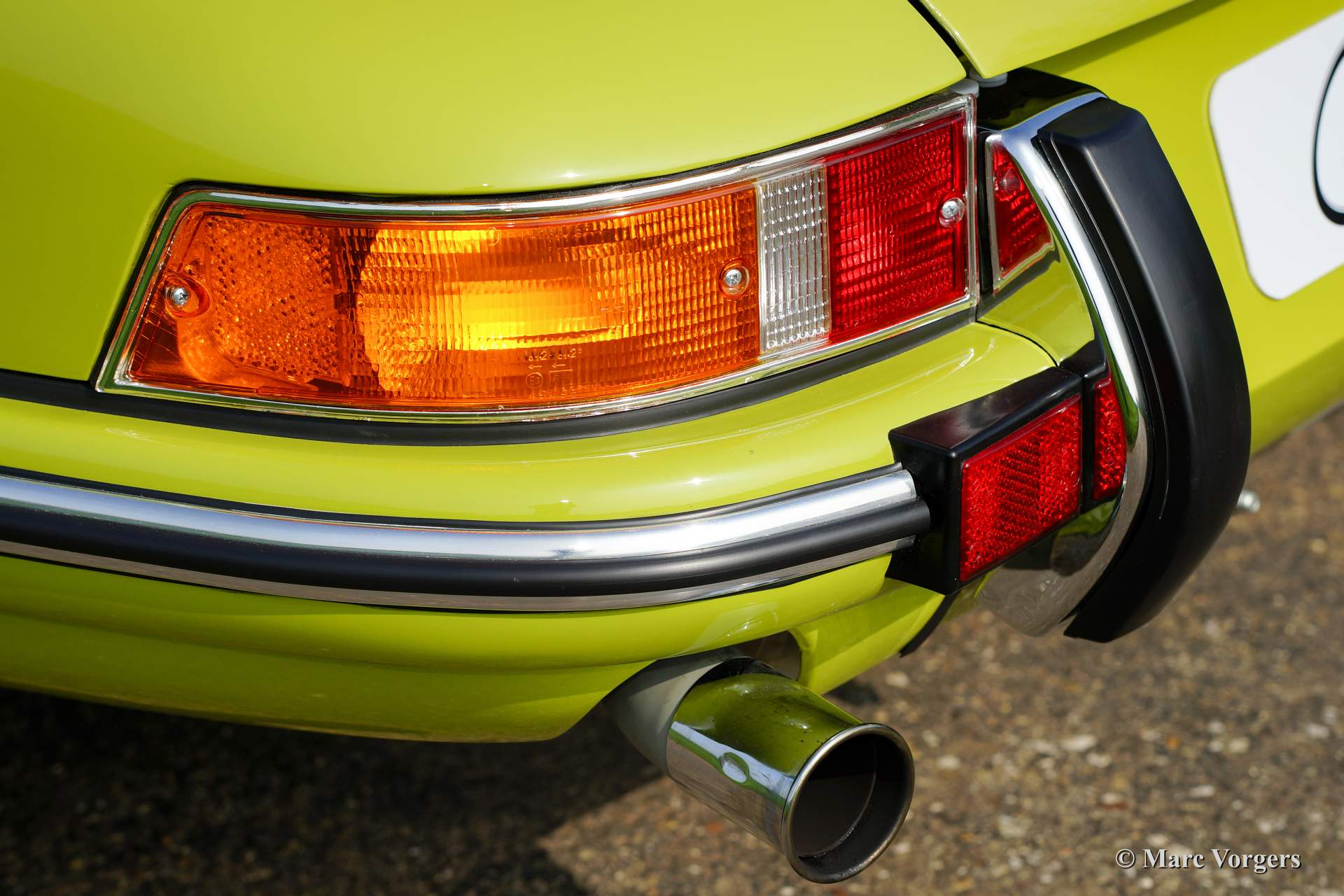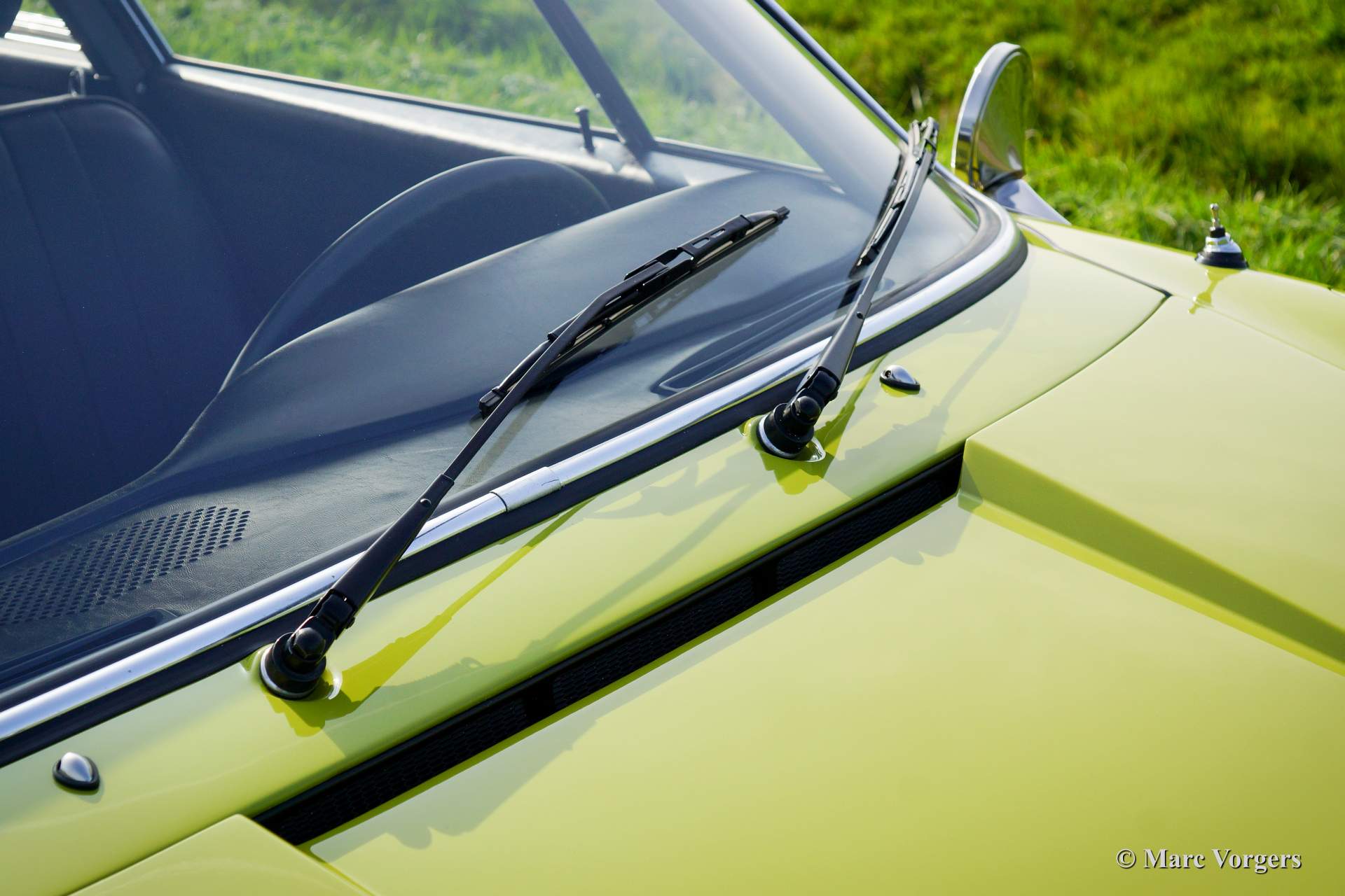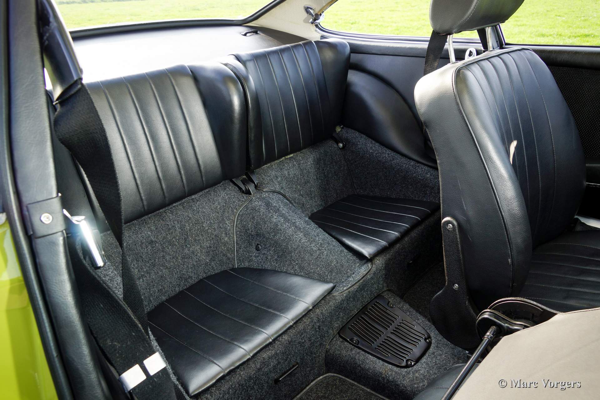 Porsche 911 2.0 T, année 1969. Couleur Golden Green (or vert) avec un intérieur en simili cuir noir.