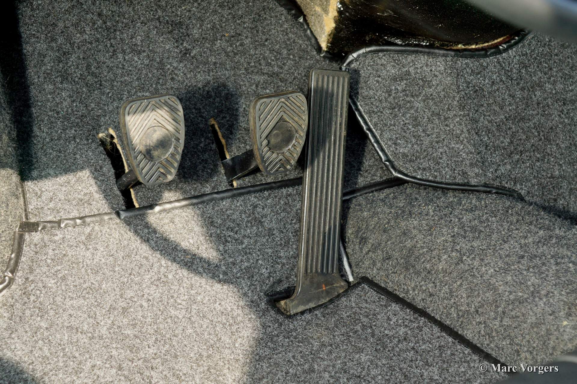The Porsche 356-001 was built using a chassis with tubular framework covered with aluminium body panels. Mechanically the car was based on Volkswagen components. The Porsche 356-001 was equipped with a center mounted engine located just in front of the rear axle.