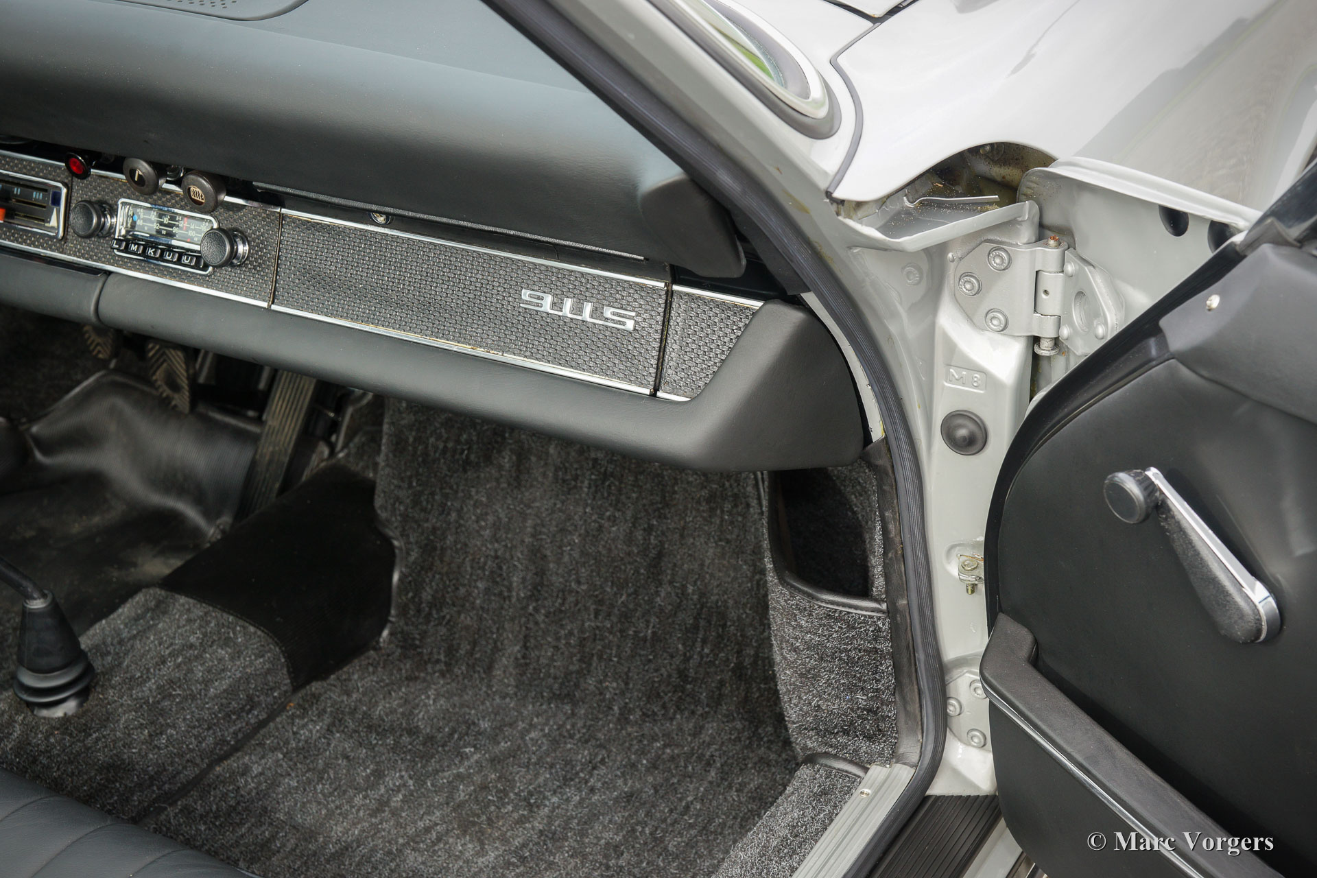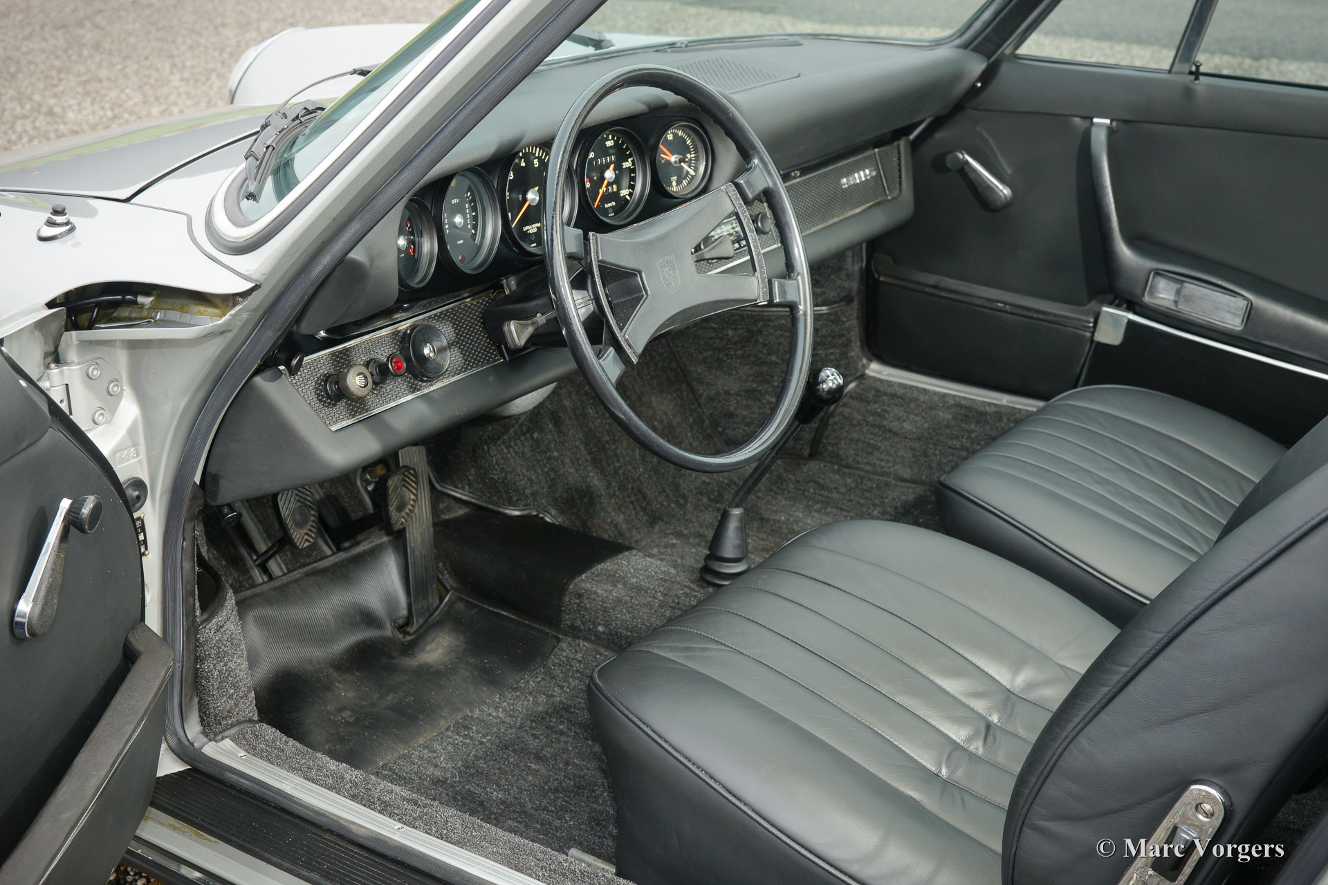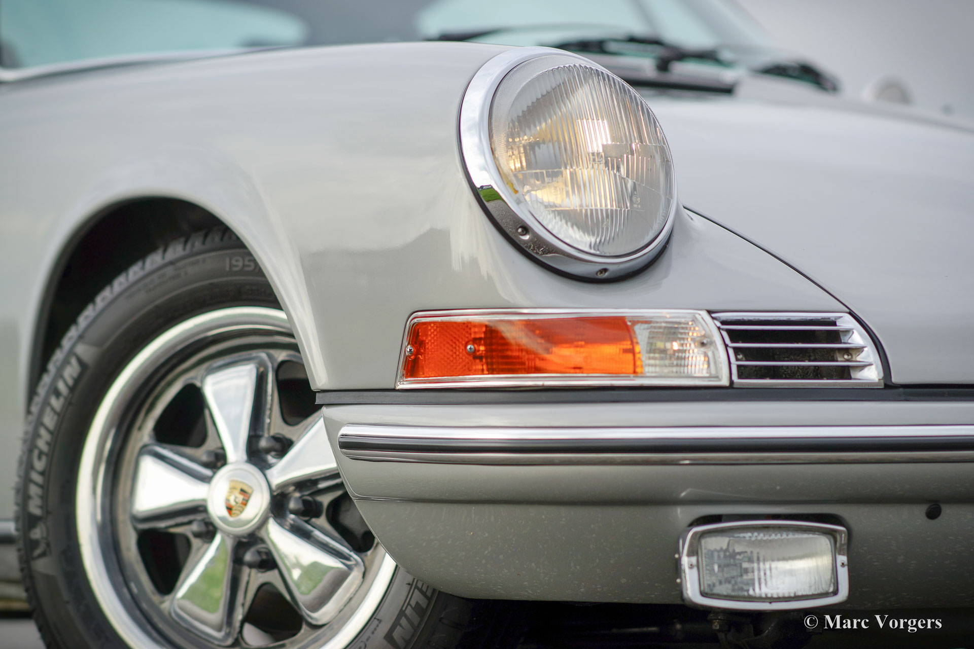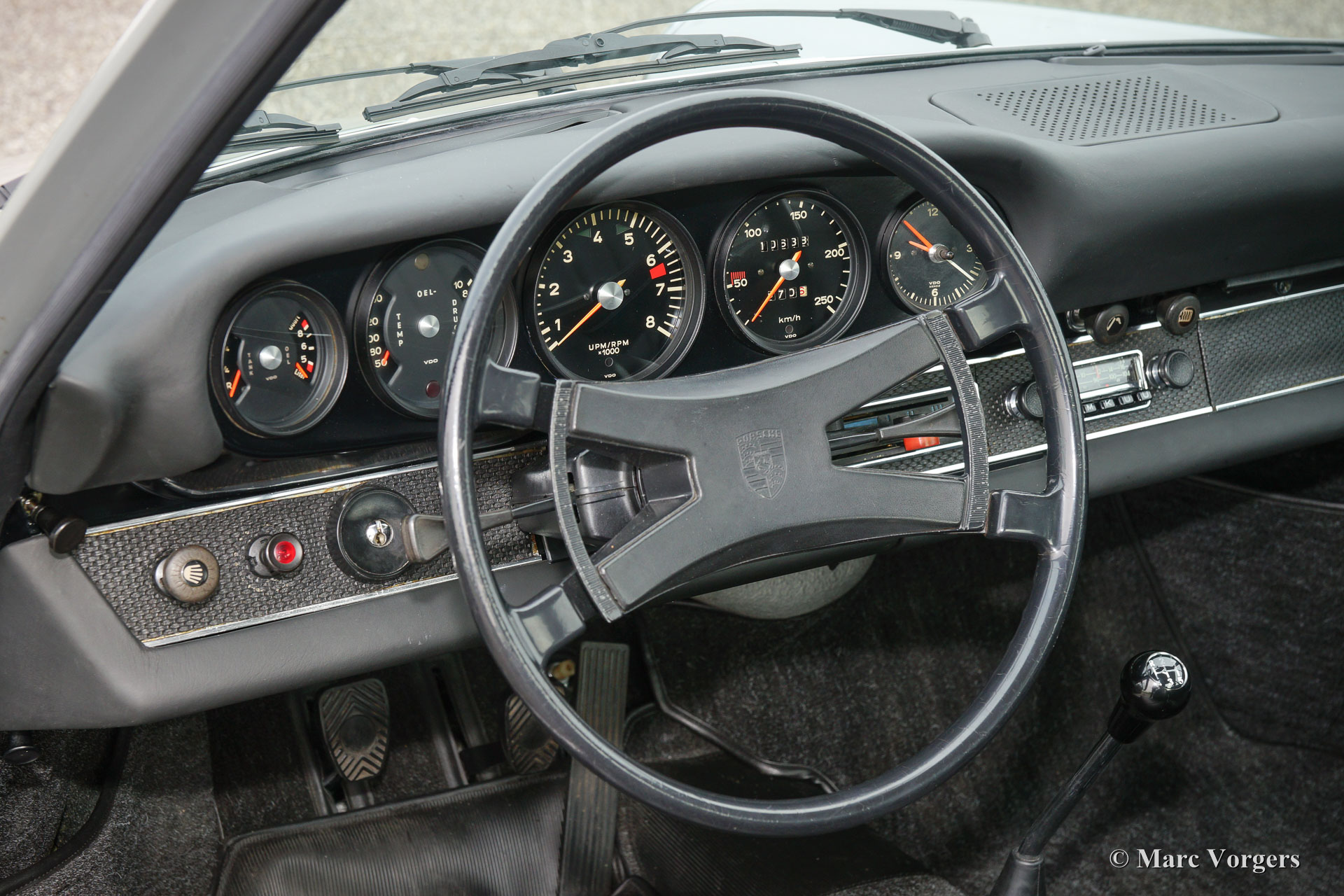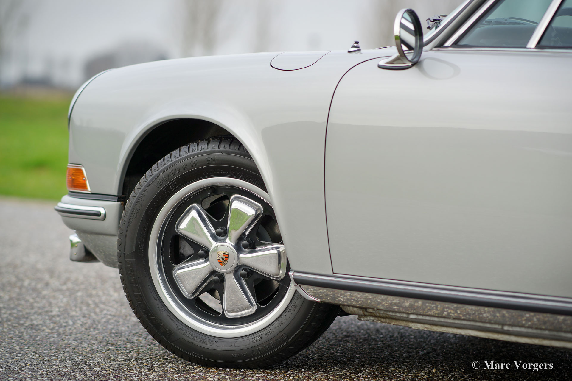 Porsche 911 2.2T, année 1969. Couleur argent métallique avec un intérieur en cuir noir. Cette magnifique Porsche 911 coupé a été restauré détaillé dans le passé. La voiture est en très bon à excellent état et la voiture roule fantastique ! Cette Porsche 911 dispose roues Fuchs, une boîte de vitesses à 5 rapports, appui-têtes sur les deux sièges et la radio + antenne.