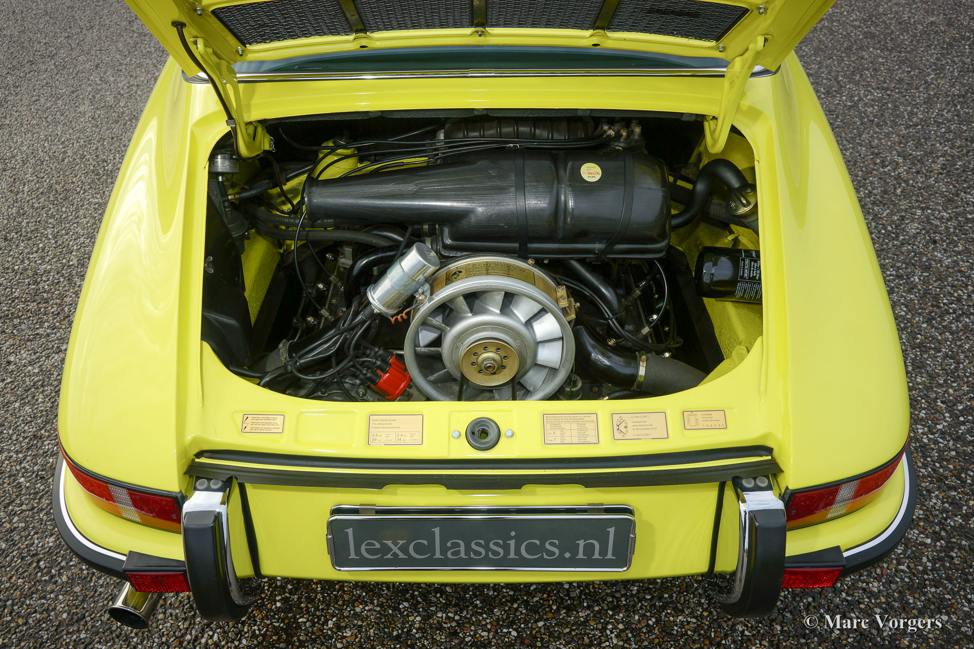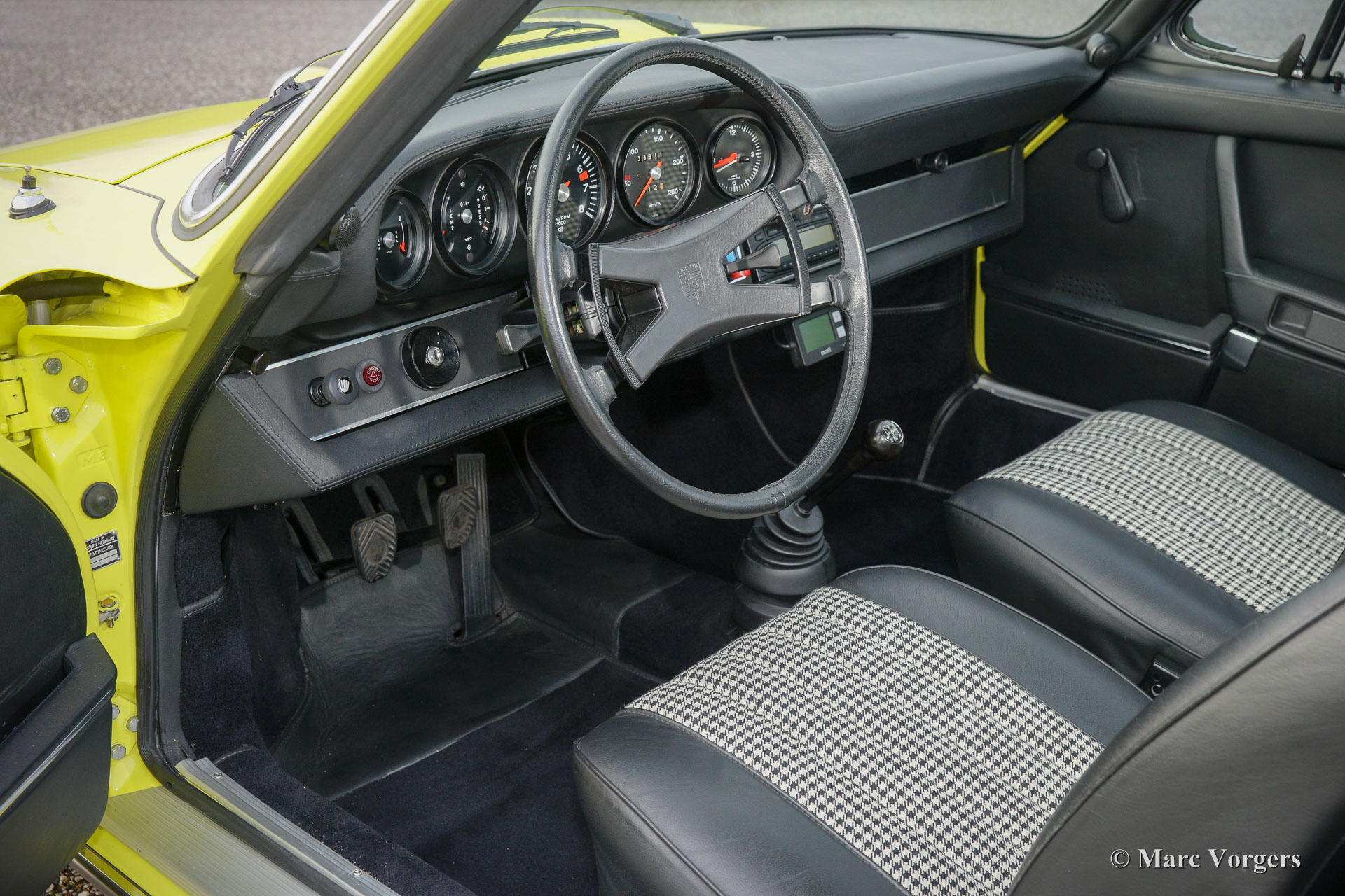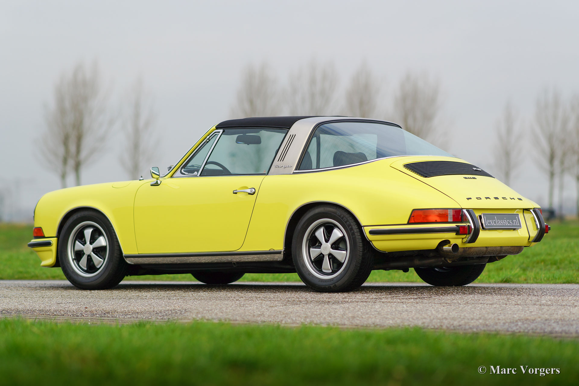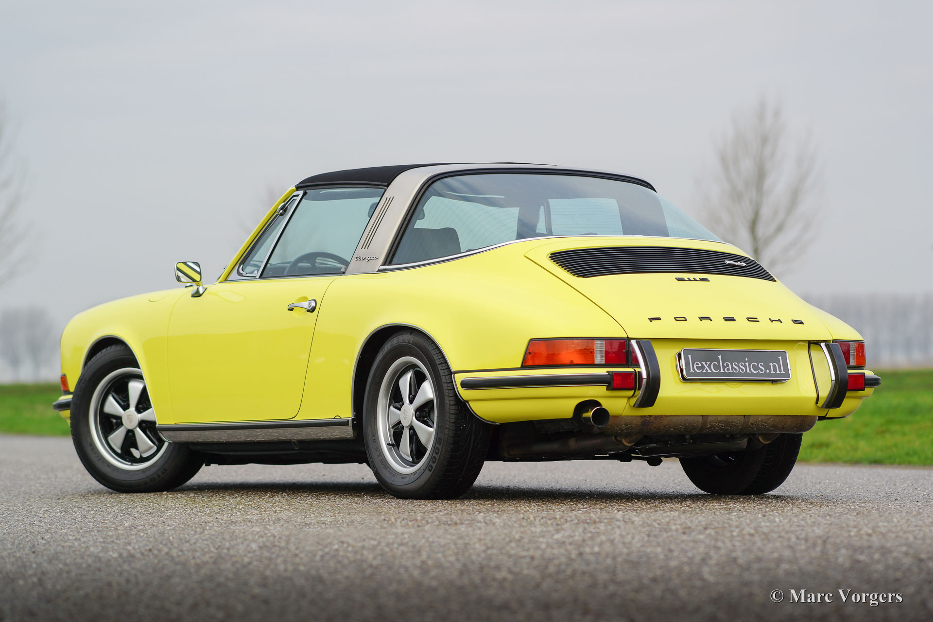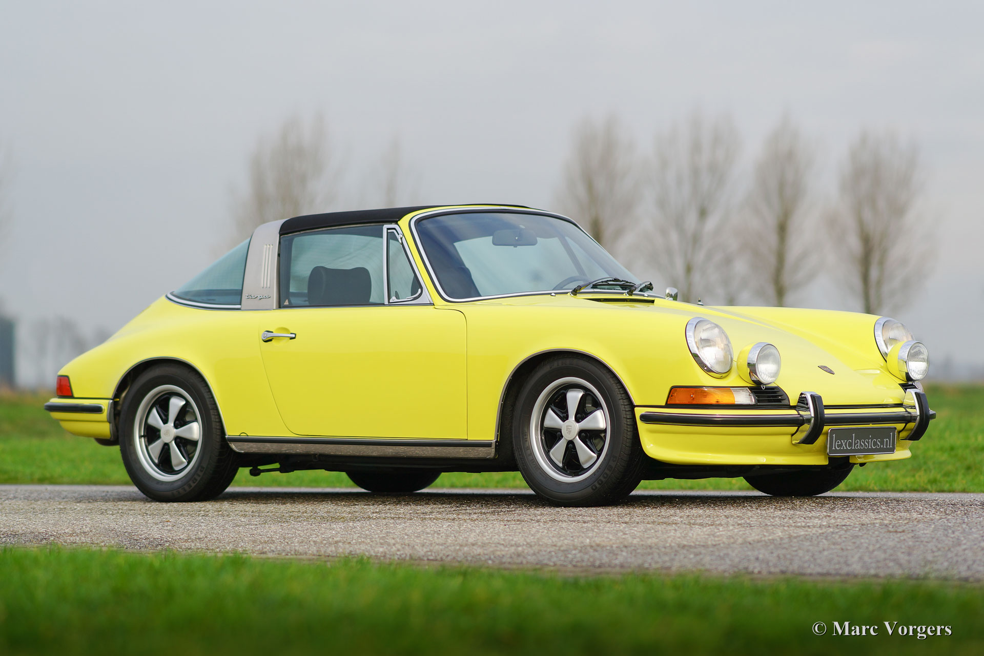 Porsche 911 2.4 T Targa, année 1973. Numéro de Châssis 9113111XXX. Couleur jaune (Hell Gelb) avec un intérieur mi- cuir noir. Cette magnifique Porsche 2.4 T Targa a été restauré et remanié détaillé aux Pays-Bas a les normes très élevées. La voiture est en superbe état TOP, concours ! Depuis le rétablissement de la voiture a conduit 9872 kilomètres. Cette très belle 911 T Targa a été vendue neuve aux Etats-Unis, la voiture a été importé aux Pays-Bas en l'an 2001. En l'an 2008, la voiture a été restauré détaillé en superbe état TOP. Cette 911 Targa dispose en forme de panneau parfait, superbe travail de peinture et un intérieur immaculé. Une photo reportage vaste de la restauration est présent. Le moteur et la boîte de vitesses ont des numéros correspondants (‘matching numbers’). Un certificat de ‘naissance’ Porsche est demandée. La voiture est équipée avec les options suivantes : roues Fuchs, phares antibrouillards à l’avant, la radio et le toit en alcantara. Un spécimen TOP !