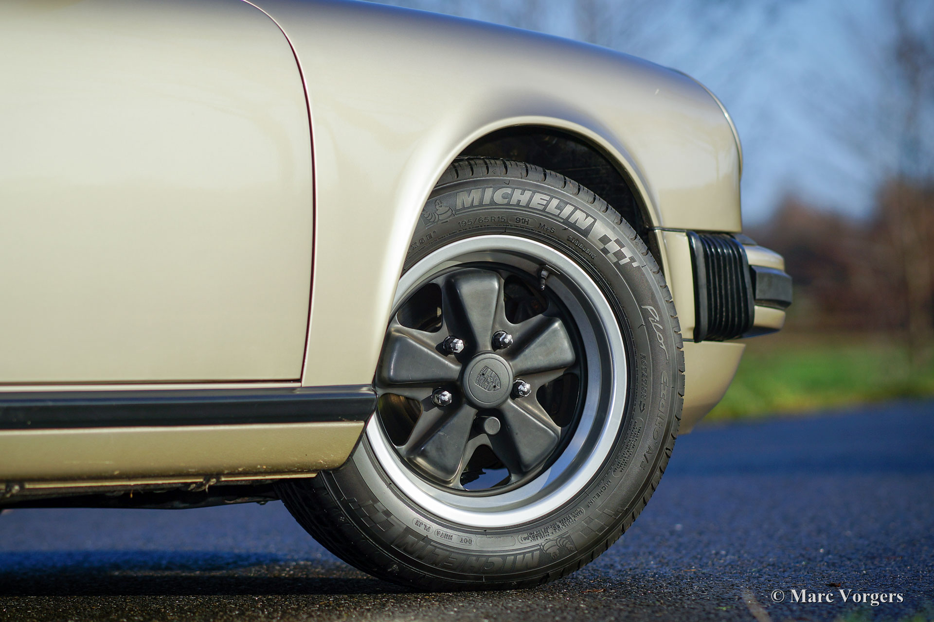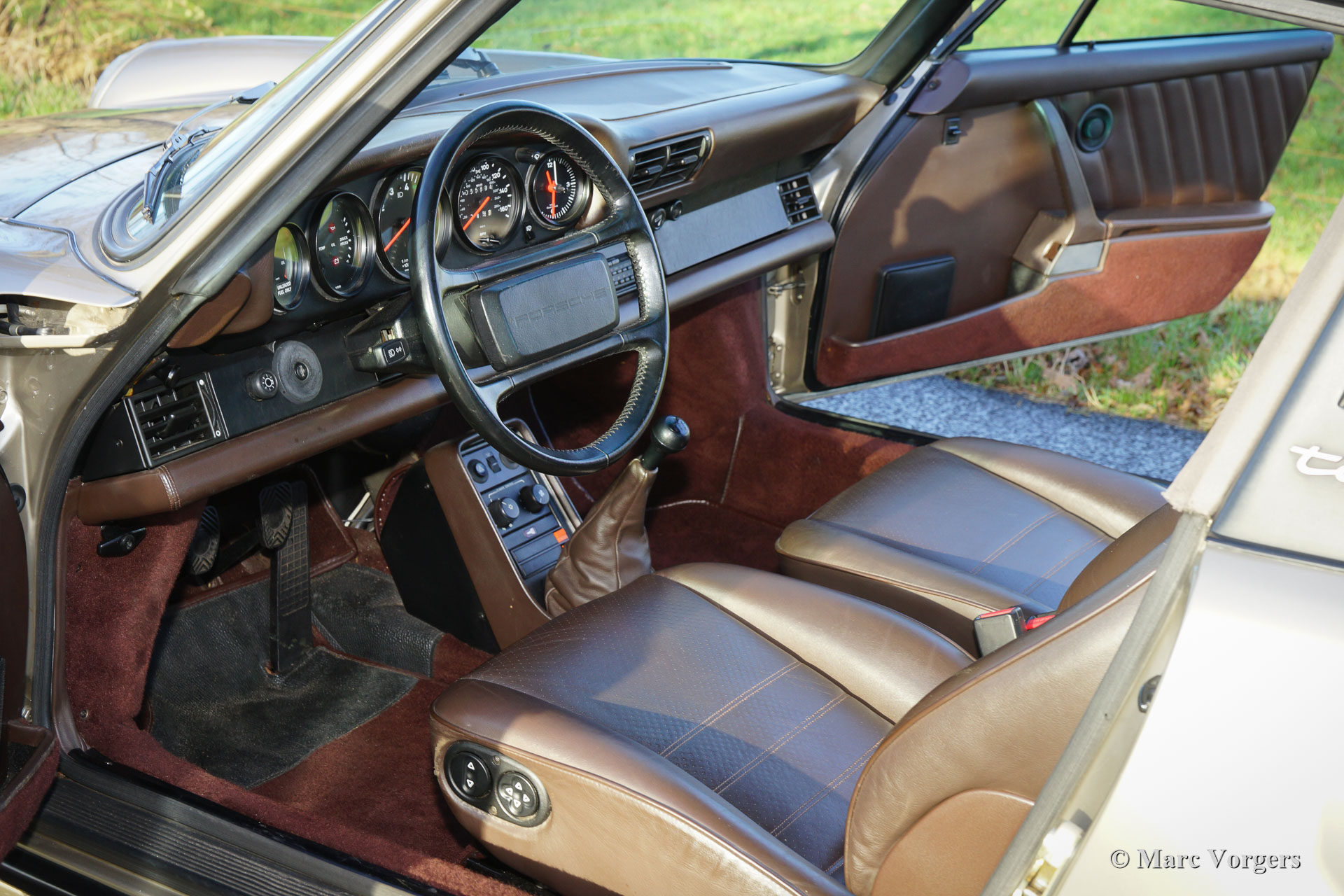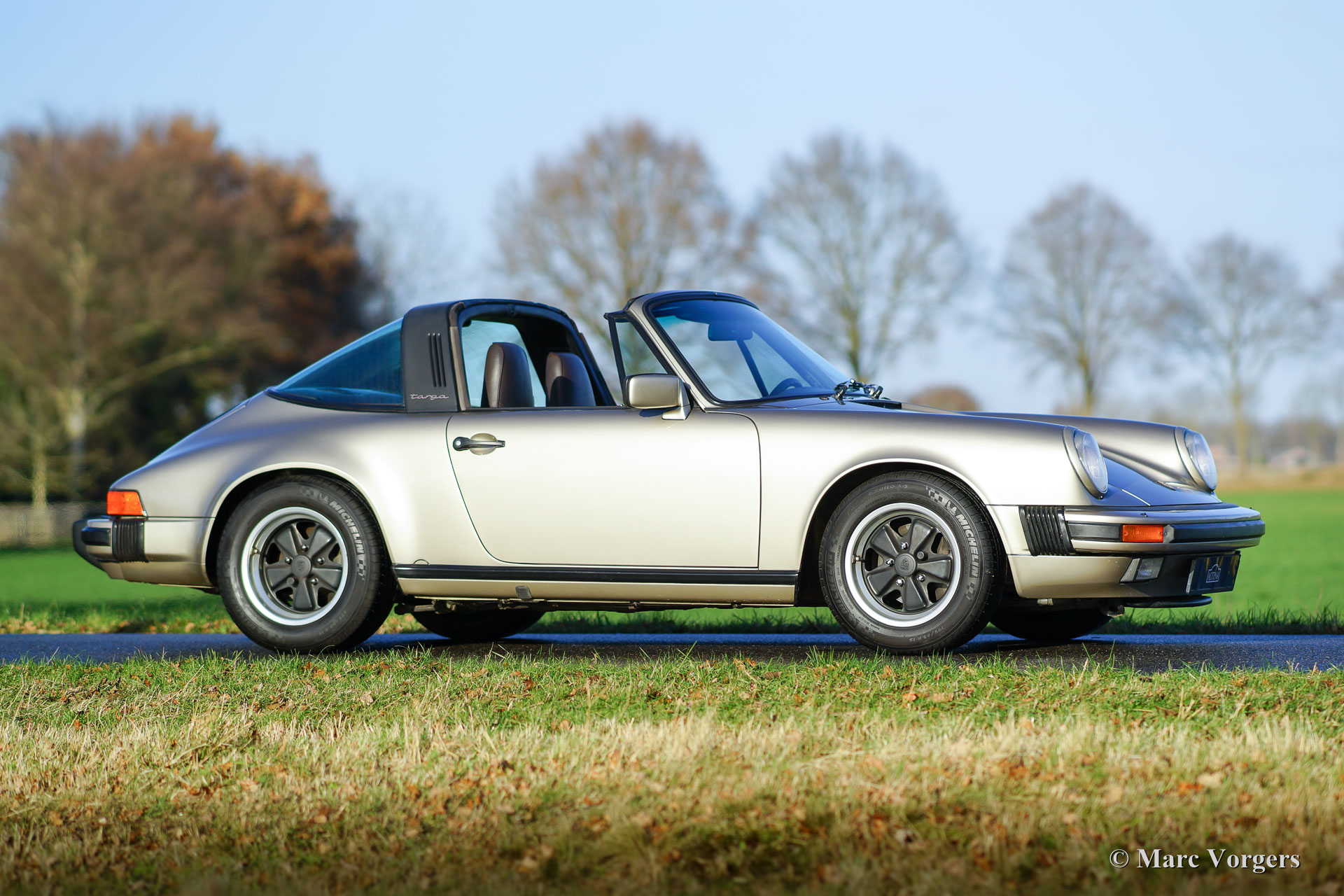 Porsche 911 3.2 Carrera Targa, année 1986. Couleur ‘Weissgold’ métallique (code L999) avec un intérieur en cuir brun et tapis brun. Cette magnifique Porsche 911 de la série 3.2 Carrera a été vendue neuve aux Etats-Unis (Sacramento en Californie). La voiture a été importée aux Pays-Bas en l'année 2014. Cette fantastique Porsche 911 Targa est en super original et en excellent état ! La voiture a conduit seulement 55.784 milles de nouveau et ceci est entièrement documenté. La voiture montre tous les détails originaux et tout semble et se sent très bien entretenu à des normes élevées. Présent sont des livrets originaux et un livre de maintenance Porsche. L'ensemble d'outils original et complet, l'original compresseur d'air et un beau tapis marron original avec le nom Porsche tissé. Cette Porsche 911 3.2 Carrera Targa est équipé de belles roues originales Fuchs. C'est un superbe exemple original !