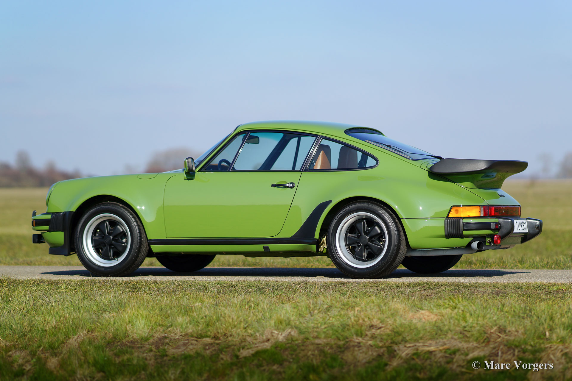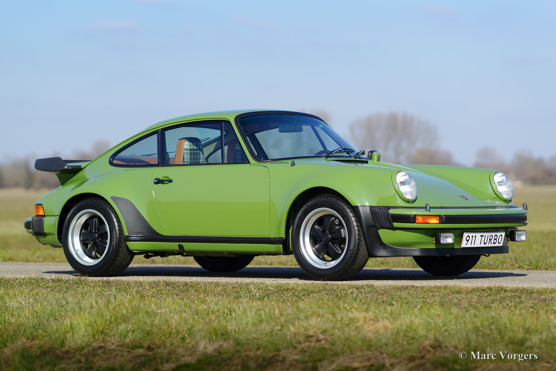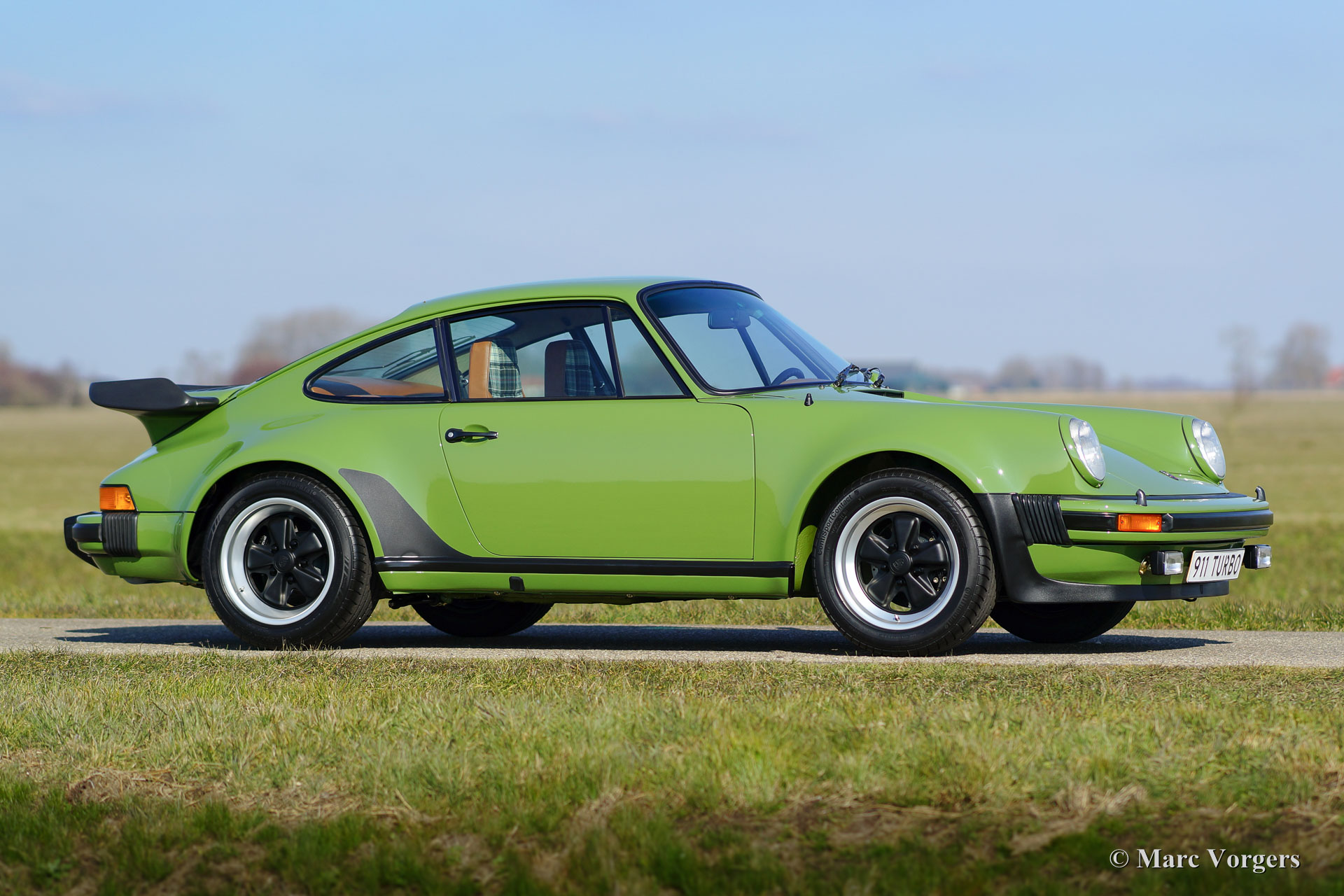 Porsche 911 (930) 3.3 Turbo, année 1978. ‘Matching numbers’. Couleur vert olive avec un cognac / beige intérieur demi-cuir. Cette magnifique Porsche 911 Turbo a été vendue neuve à Essen, en Allemagne. Très spécial est le fait que seulement deux voitures 911 3.3 Turbo ont été livrés dans cette fantastique livrée verte Olive ! Cette 911 Turbo est super original ; la voiture a été seulement professionnellement donné une nouvelle peinture parfaite dans le passé. L'automobile est en excellent état d'origine TOP ; concours ! Cette Porsche a conduit 125.000 kilomètres de nouvelle et la voiture a connu trois propriétaires (une en Allemagne et deux aux Pays-Bas). La voiture a été importé aux Pays-Bas en l'année 1994. La voiture est livrée avec tous les livrets originaux et des outils de conseil originaux. Un certificat de naissance Porsche est présent. Ceci est un spécimen TOP !