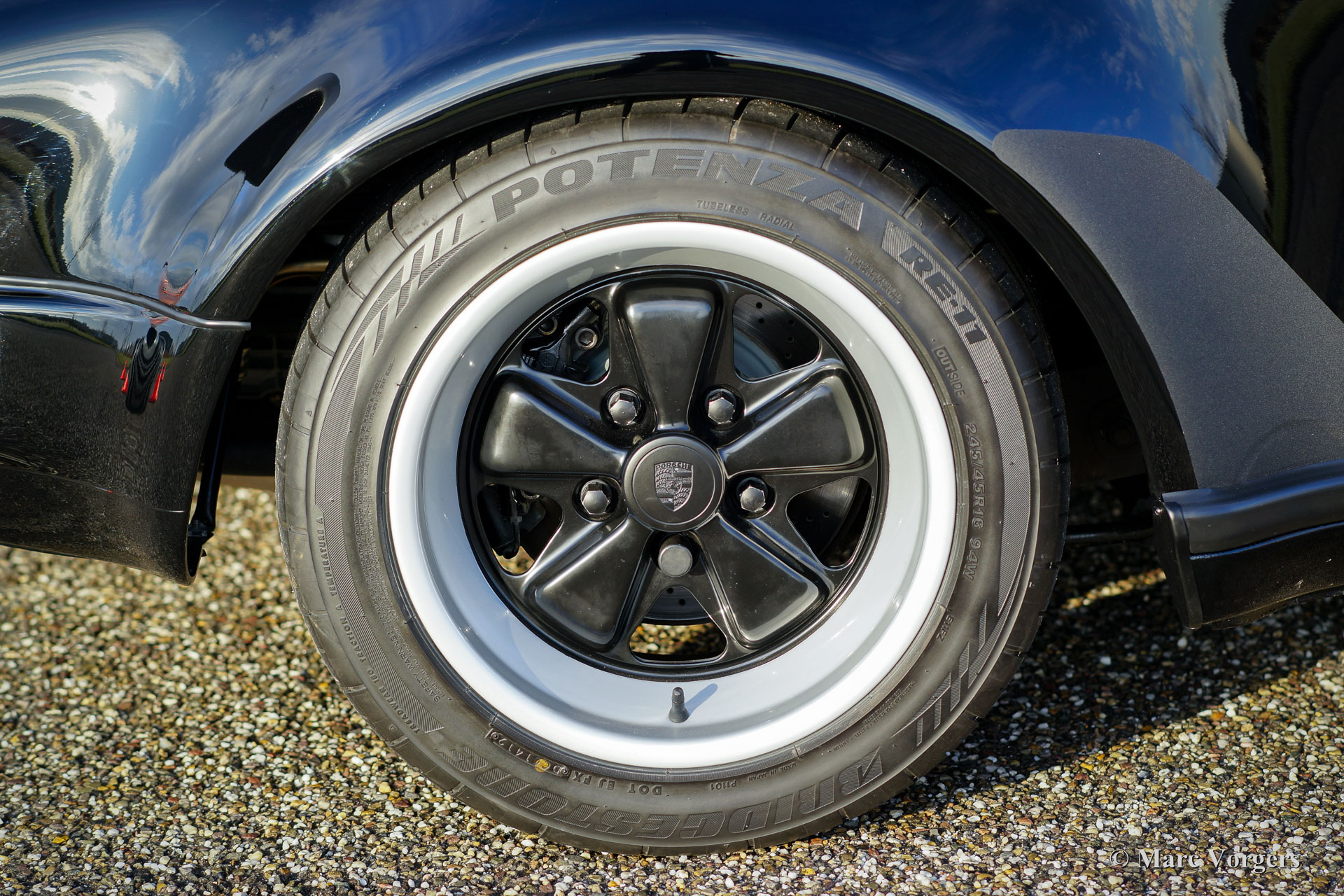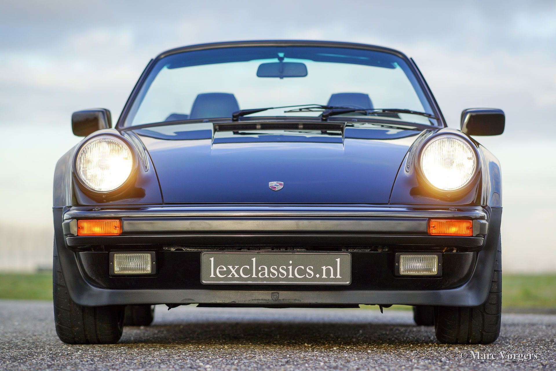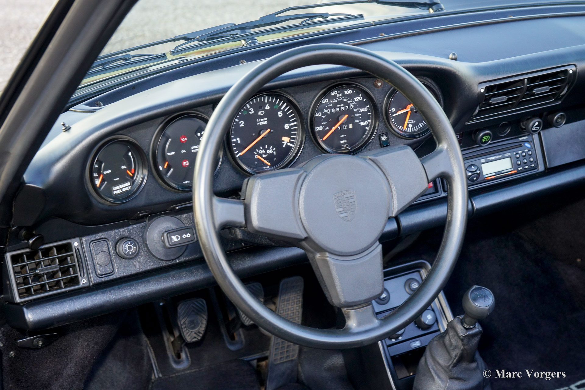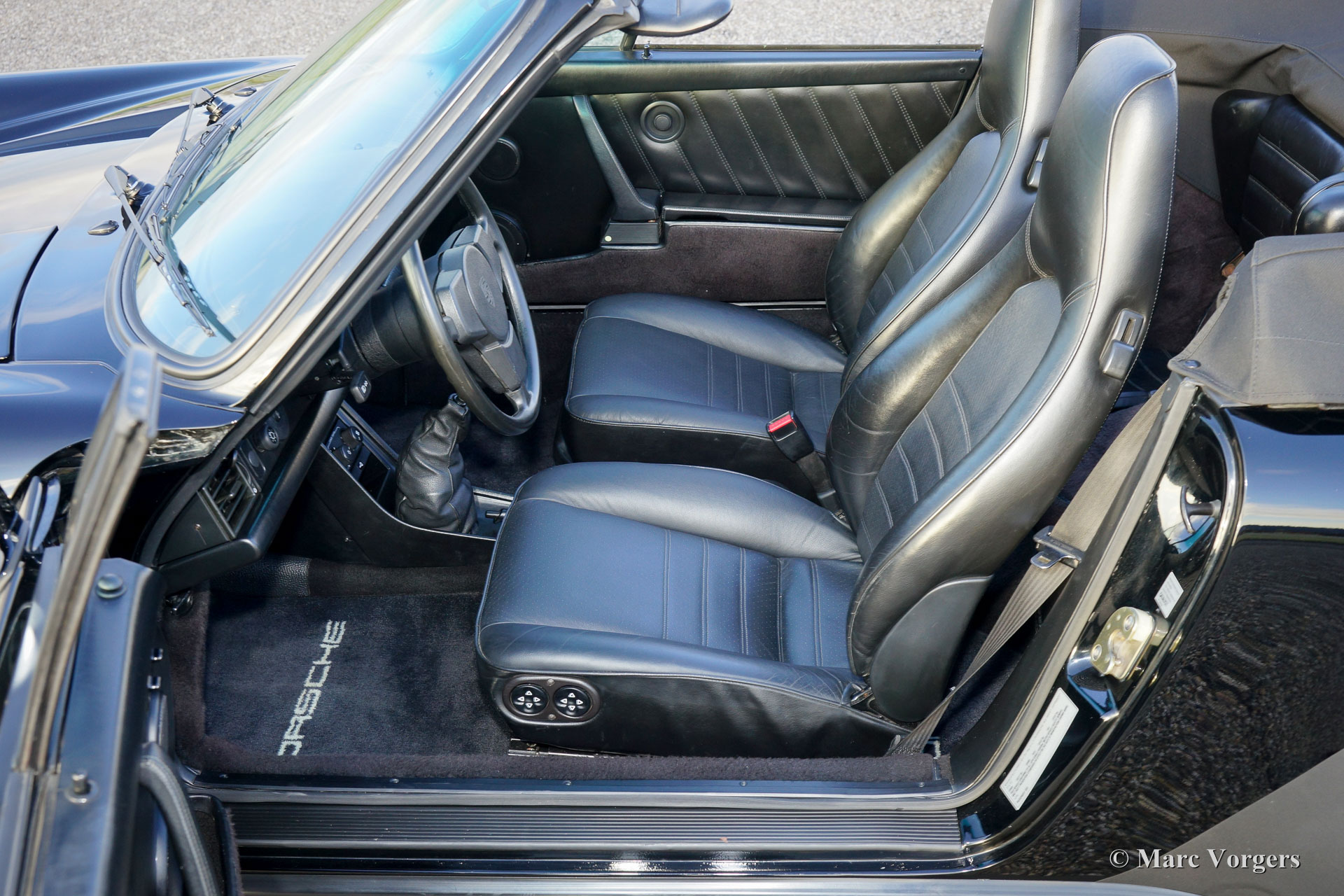 Porsche 911 (930) Turbo Cabriolet, 1987. Couleur noir (Code couleur A1V9) avec un intérieur cuir noir et tapis noir. Capote noire et couvercle de la hotte noire. Ce magnifique et ‘matching numbers’ Porsche 911 Turbo est en excellent/superbe état. La voiture a été vendue neuve en Californie, États-Unis, en 1988. Aux Etats-Unis, la voiture a connu trois propriétaires. Le premier propriétaire a conduit la voiture pendant huit ans et le dernier propriétaire chérissait la voiture pendant seize ans. En l'an 2014 cette belle Porsche a été importé aux Pays-Bas. La voiture est livrée avec un fichier fantastique et très complète l'histoire et le service.