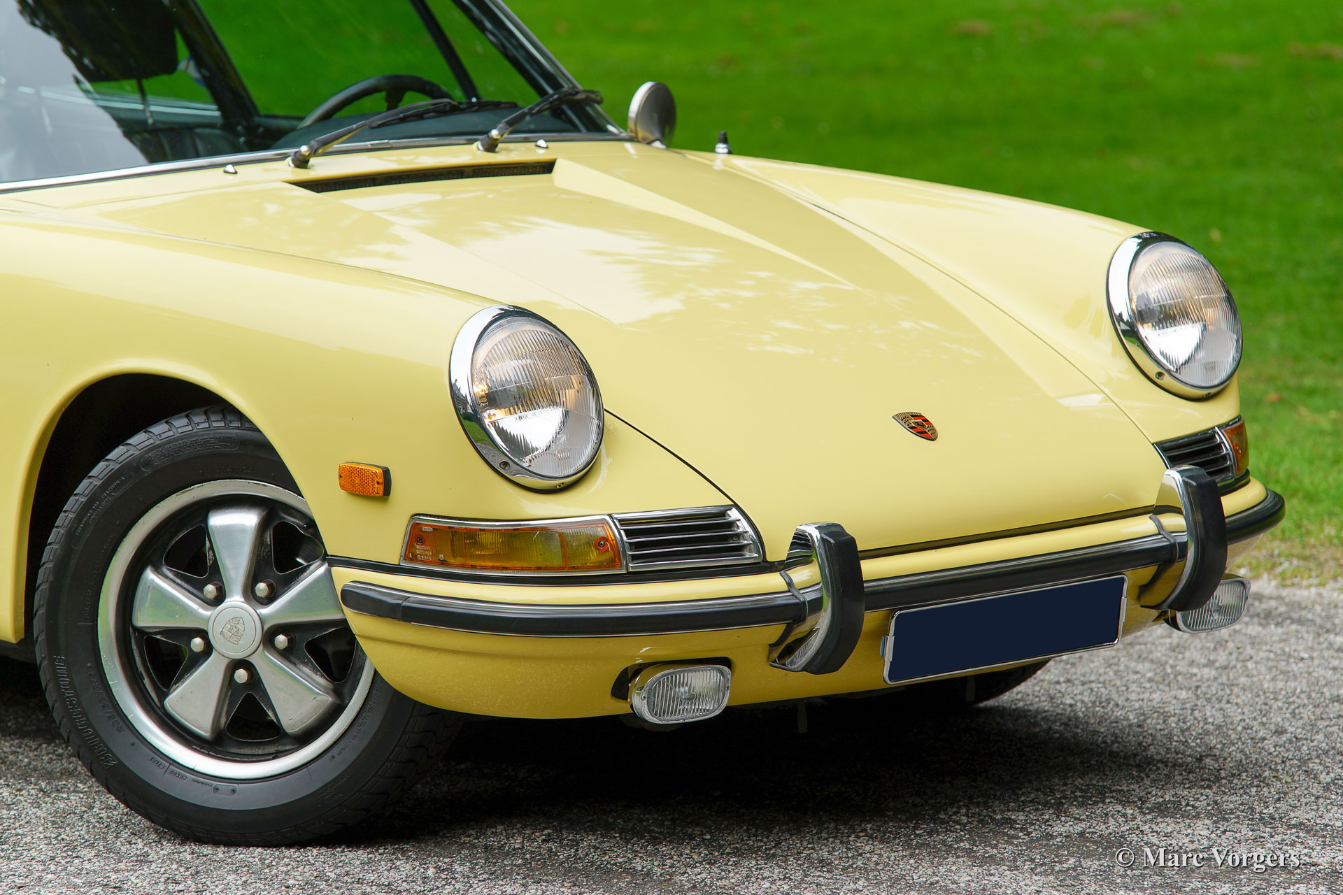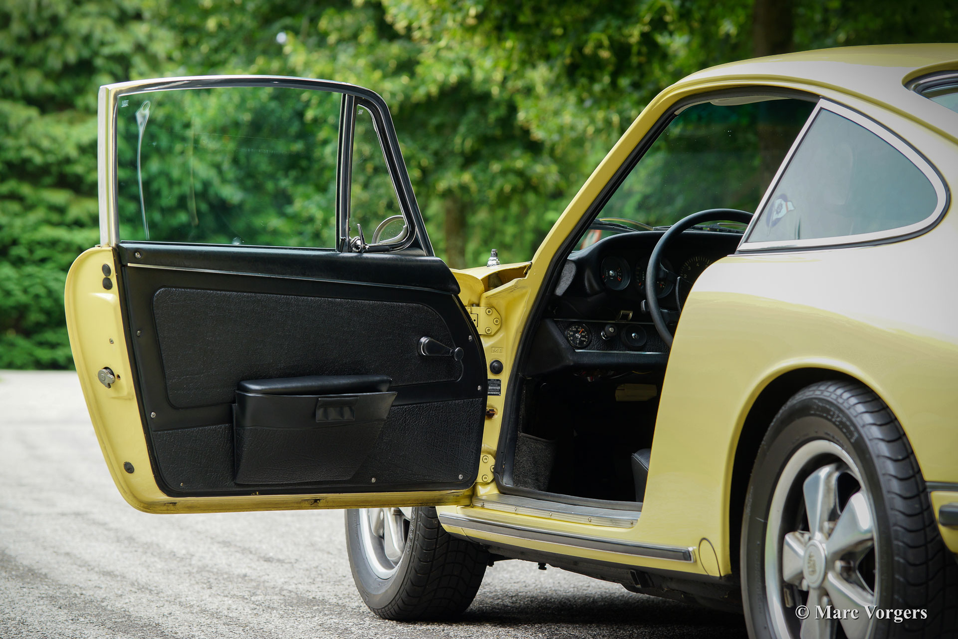 Porsche 911 L, année 1967. Première immatriculation 1968. Numéro de châssis 1,180 5XXX, numéro de moteur: 328 0XXX, numéros correspondant. Couleur «champagne» jaune avec un intérieur en simili cuir noir et tapis gris foncé. Les panneaux de porte et les détails intérieurs rembourré avec <peau d'éléphant> vinyle texture, unique pour ce modèle 1968. Ceci est un modèle rare de <short wheelbase> Porsche 911 L de la série" A "qui a été fabriqué à partir d'Août 1967 à Juillet 1968. Ce magnifique Porsche 911 L est en excellent état d'origine! La voiture n'a jamais été restauré, que ponctuellement entretenu et parfaitement entretenu. En l'an 2002 la carrosserie frais et propre a été donnée nouvelle peinture parfaite professionnellement. Le 911 a été vendue nouvelle aux Etats-Unis où la voiture connaissait qu'un seul propriétaire pour près de 50 ans! Cette amende 911 L est livré avec le fichier de l'histoire la plus magnifiquement documentée que nous ayons jamais vu. Sur tous les documents le nom de la première et la seule propriétaire américain est déclaré, très spécial. Cette rare <short wheelbase> Porsche 911 L est un objet de collection magnifique par sa belle originalité et son fichier belle et parfaite histoire. Les connaisseurs reconnaîtront la valeur de cette belle pièce d'origine du patrimoine Porsche.