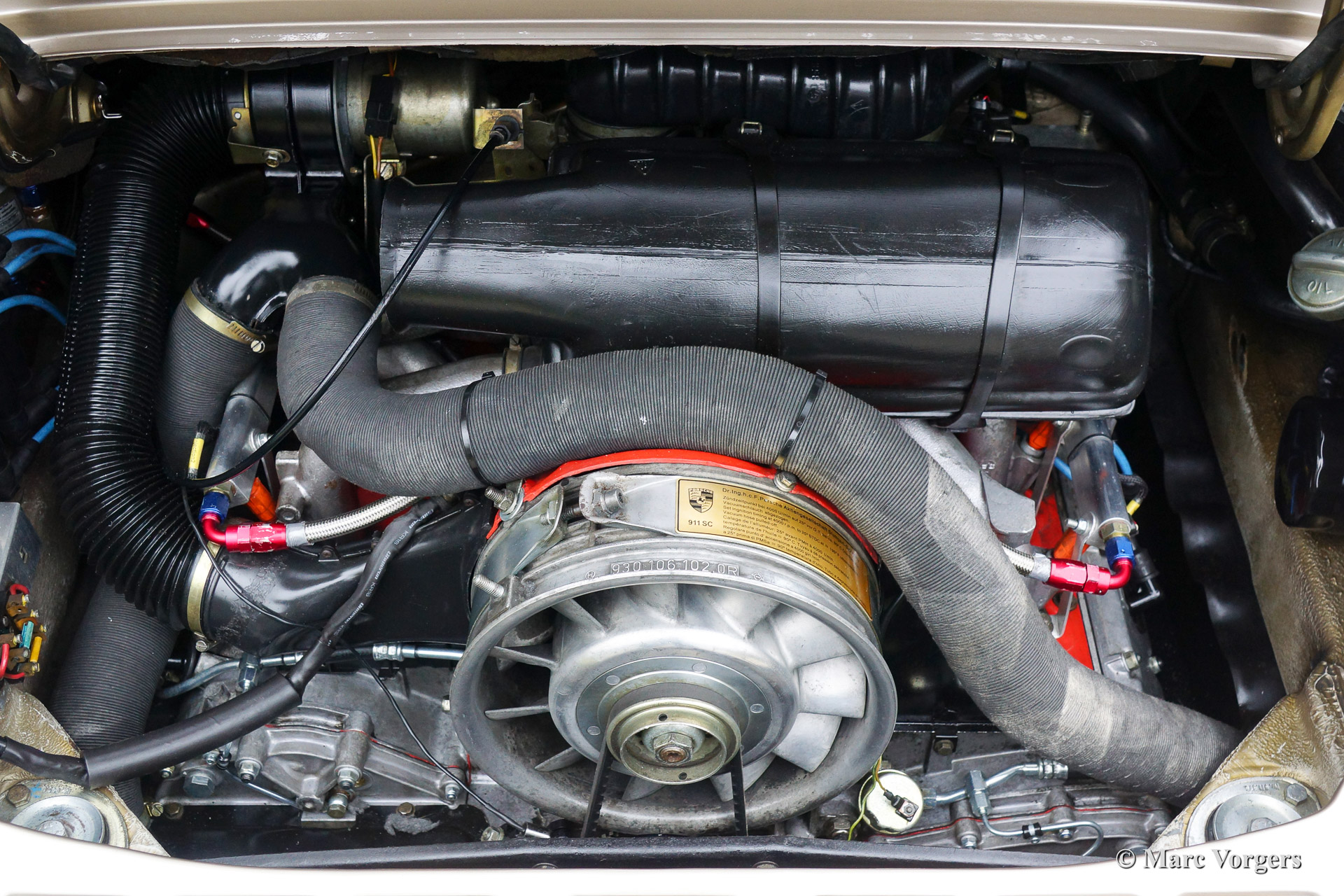 This concept evolved over the years and is still actual in the Porsche 911 model built today. The flat-six air-cooled engine was at first available with a cylinder capacity of 1991 cc. and 130 bhp. Over the years the cylinder capacity increased; 1969 2195 cc., 1971 2341 cc., 1973 2687 cc., 1975 2993 cc. and in 1979 3258 cc. giving an output of 300 bhp. in the Porsche 911 Turbo.
