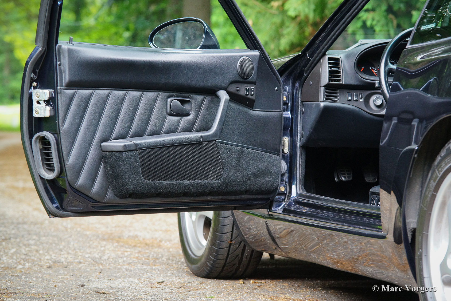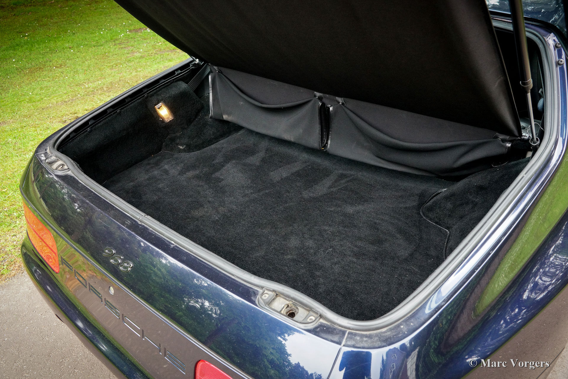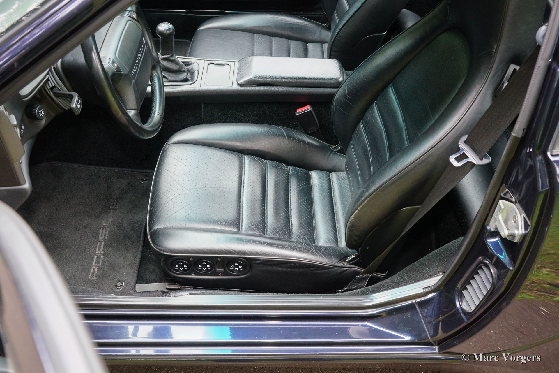 Porsche 968 coupé, année 1992. Couleur bleu foncé métallique avec un intérieur en cuir noir et le revêtement de toit noir. Ce fantastique 968 coupé a un panneau de toit réglable qui peut également être retiré ! La Porsche 968 est le dernier dans la série de modèles « trans-axle et refroidi a l’eau » qui a commencé avec la Porsche 924. Le 968 est le successeur de la Porsche 944. Comme le 944 le 968 est une véritable voiture de conducteur très sportive. La tenue de route est magnifique, le puissant moteur, un pur délice, le tour est sportif et le confort très agréable. Cette belle Porsche 968 a été vendue neuve à Lisbonne (Portugal) ; il est donc un modèle européen. La Porsche a connu deux propriétaires et la voiture a toujours été entretenu par le représentant Porsche à Lisbonne. Les factures et les documents sont présents tout comme les livres originaux qui sont venus avec la voiture à l'origine. Aussi deux clés originales sont présentes. Ce fantastique Porsche 968 a conduit seulement 89,200 km de nouveau ; la voiture est en très bon à excellent état d'origine ! Cette 968 conduire / roule parfaitement et la voiture possède six vitesses à commande manuelle. Le corps présente encore sa belle peinture originale ! De plus, cette voiture est équipée de roues ‘Cup’ et un système audio Alpine. Ceci est un magnifique exemple original !