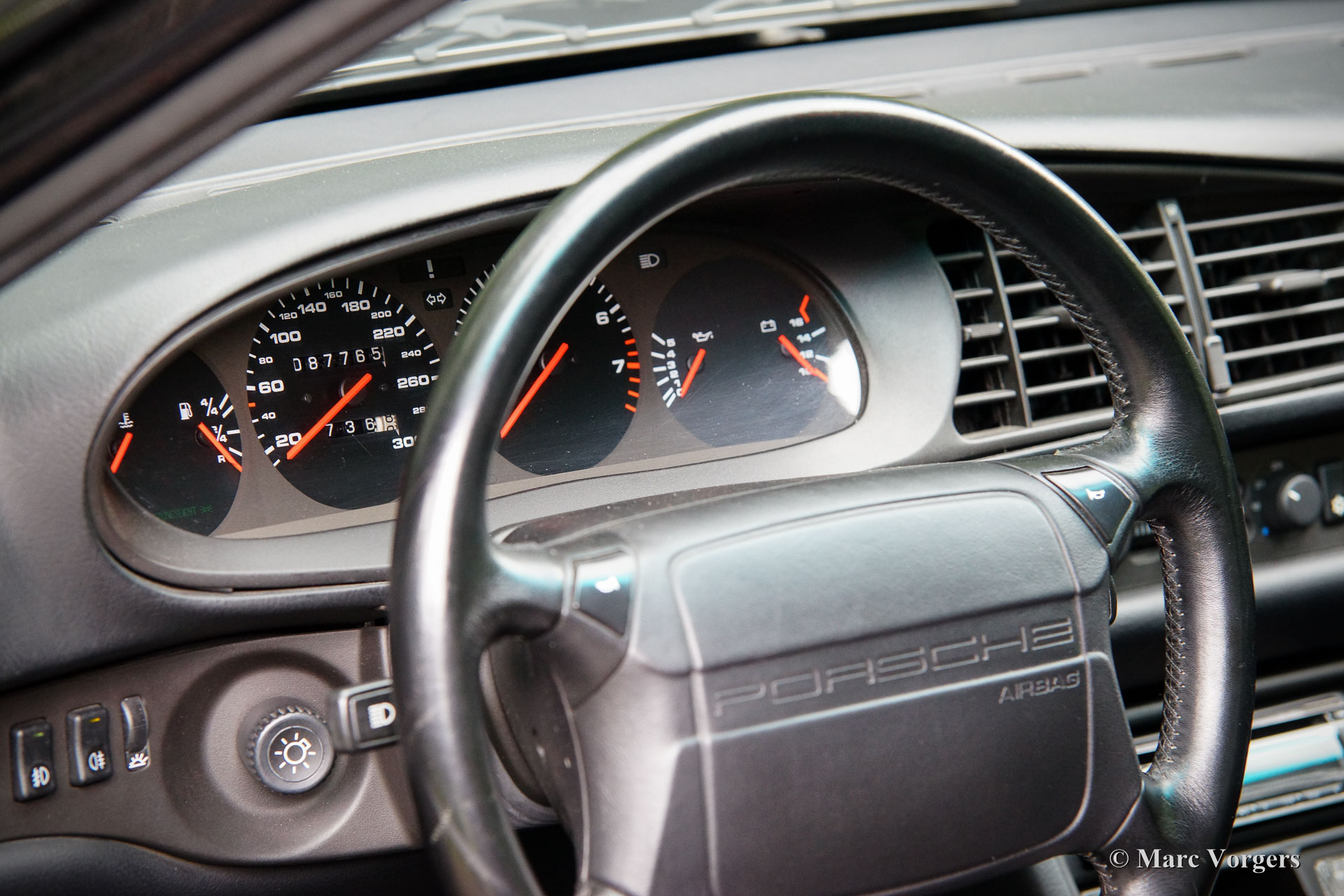 The Porsche 968 was presented in the year 1991. Right from the start buyers had the choice between a coupe and a cabriolet model. The Porsche 968 was a evolution of the Porsche 944 S2. The 968 featured a powerful 240 bhp. 3 Litre Porsche engine which drove the rear wheels through a gearbox fitted to the differential (Transaxle). Standard the car was fitted with a 6-speed manual gearbox, a 4-speed 'Tiptronic' was optionally available as was a limited slip differential. The motoring press and drivers were impressed by the road holding and balance of the Porsche 968. In 1993 the program was extended with a lightened model: the 968 CS (Club Sport). The CS was stripped of 50 kg. and amongst others fitted with more powerful brakes, ABS, wider Cup style alloy wheels and light Recaro bucket seats.