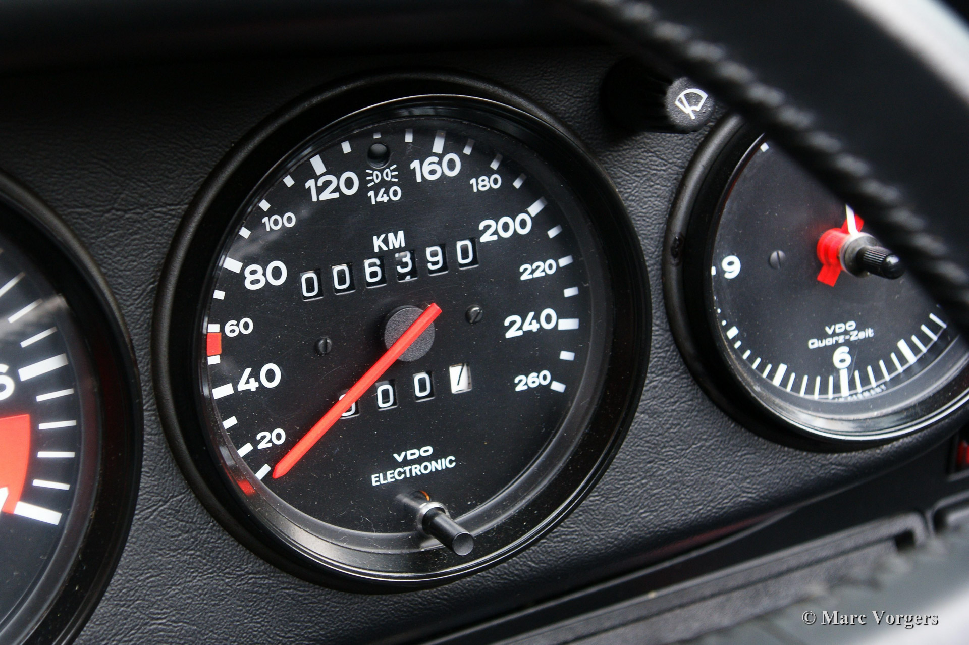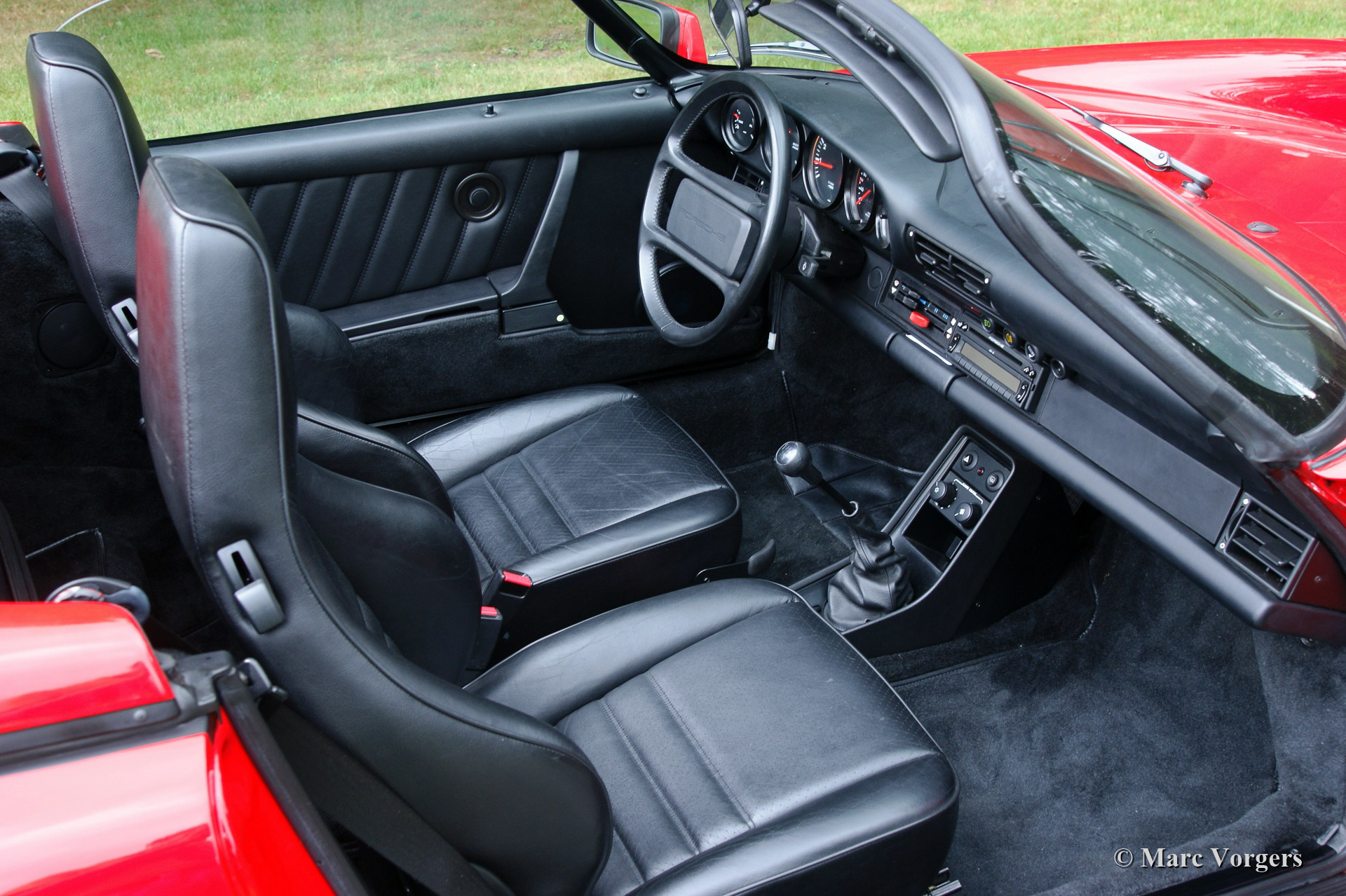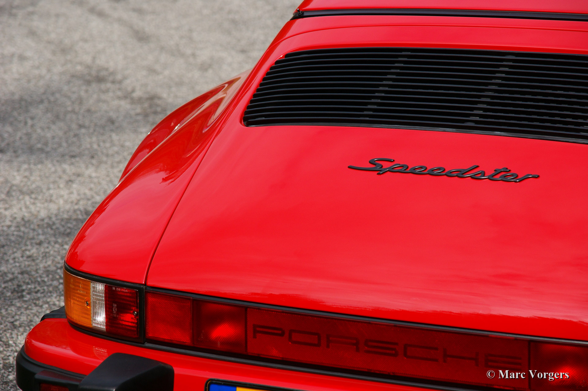 Porsche Carrera 3.2 Speedster, year 1989. Colour red with a black leather interior and a black soft top. This beautiful 911 Speedster was sold new in The Netherlands on February 28 1989. This Porsche 911 Carrera 3.2 Speedster is in brand new original condition (6390 km. from new.) A limited series of 2103 cars of this type have been built.