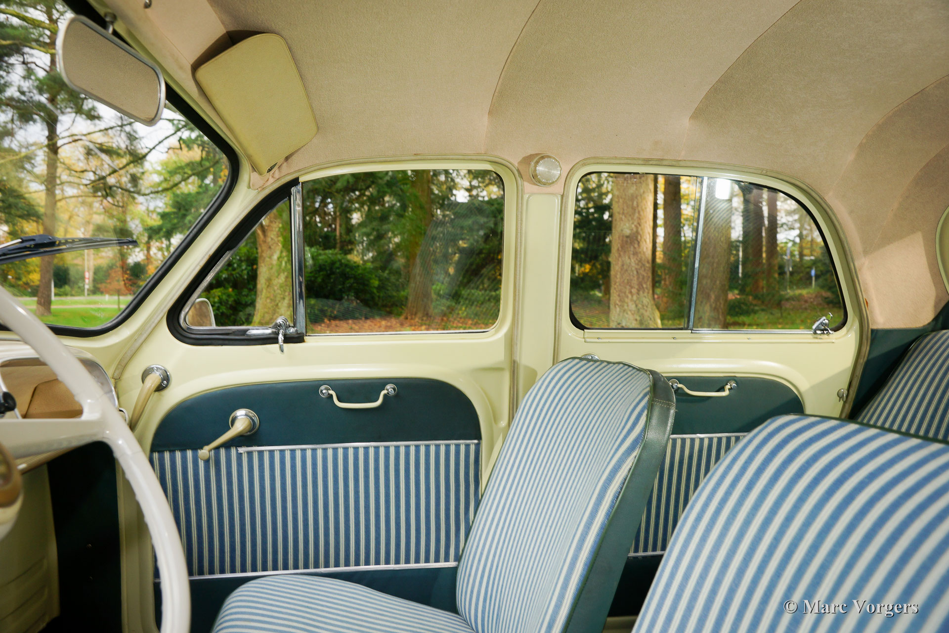 Renault Dauphine, année 1957. Couleur jaune clair avec un intérieur rayé blanc / bleu. Cette voiture a été restauré dans les années 1990 et la voiture est encore en état excellente sans rouille. Depuis la restauration de la voiture a conduit seulement 1000 km. Une Dauphine spéciale avec tous les détails particuliers d'un exemple précoce. La caractéristique la plus particulière de cette voiture est qu'elle est Mille Miglia admissible ! Ce pourrait être votre 'rentable' entrée dans le rallye le plus célèbre et prestigieuse dans le monde. Il est livré avec des factures et de nombreux de nombreux manuels originaux et brochures période.
