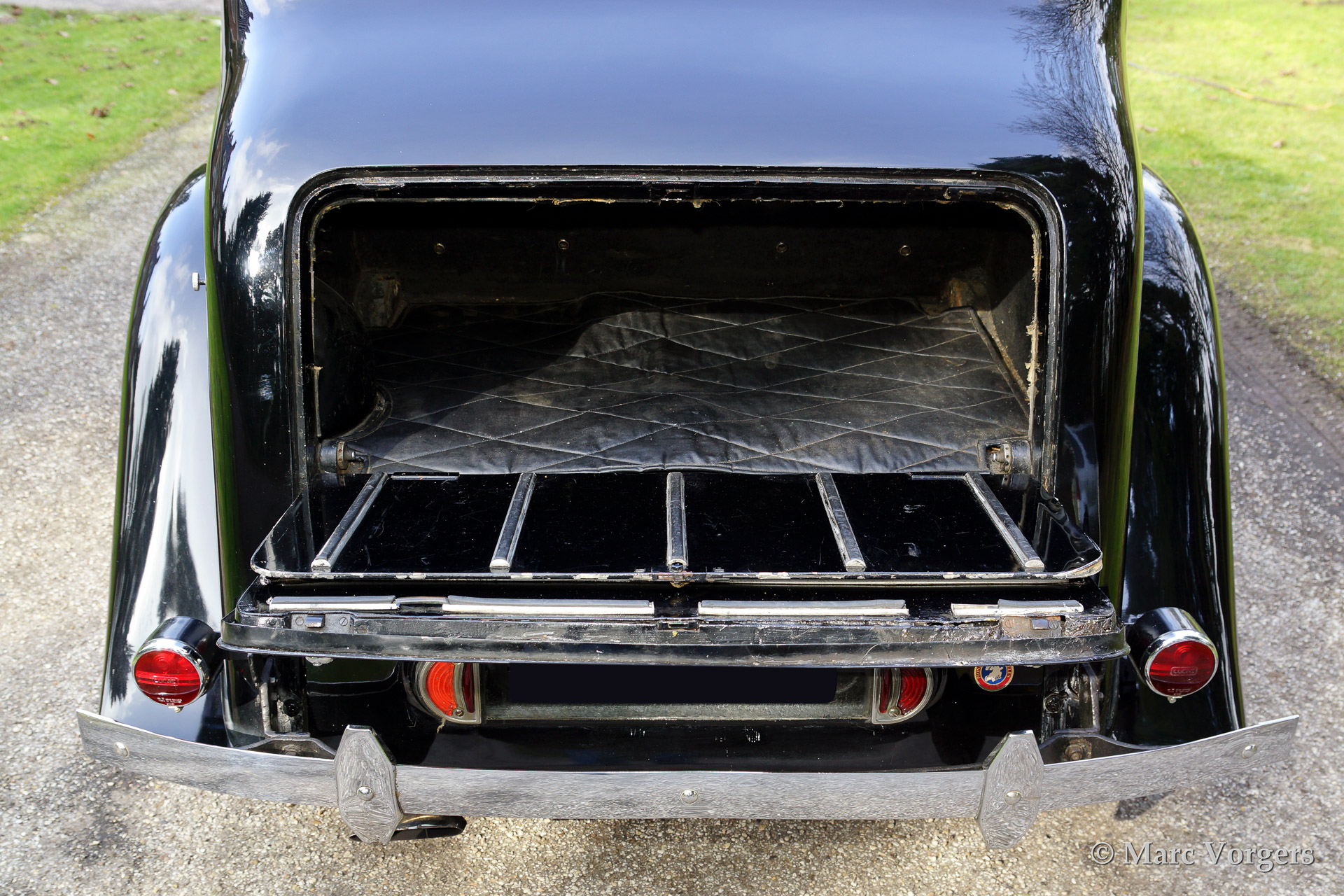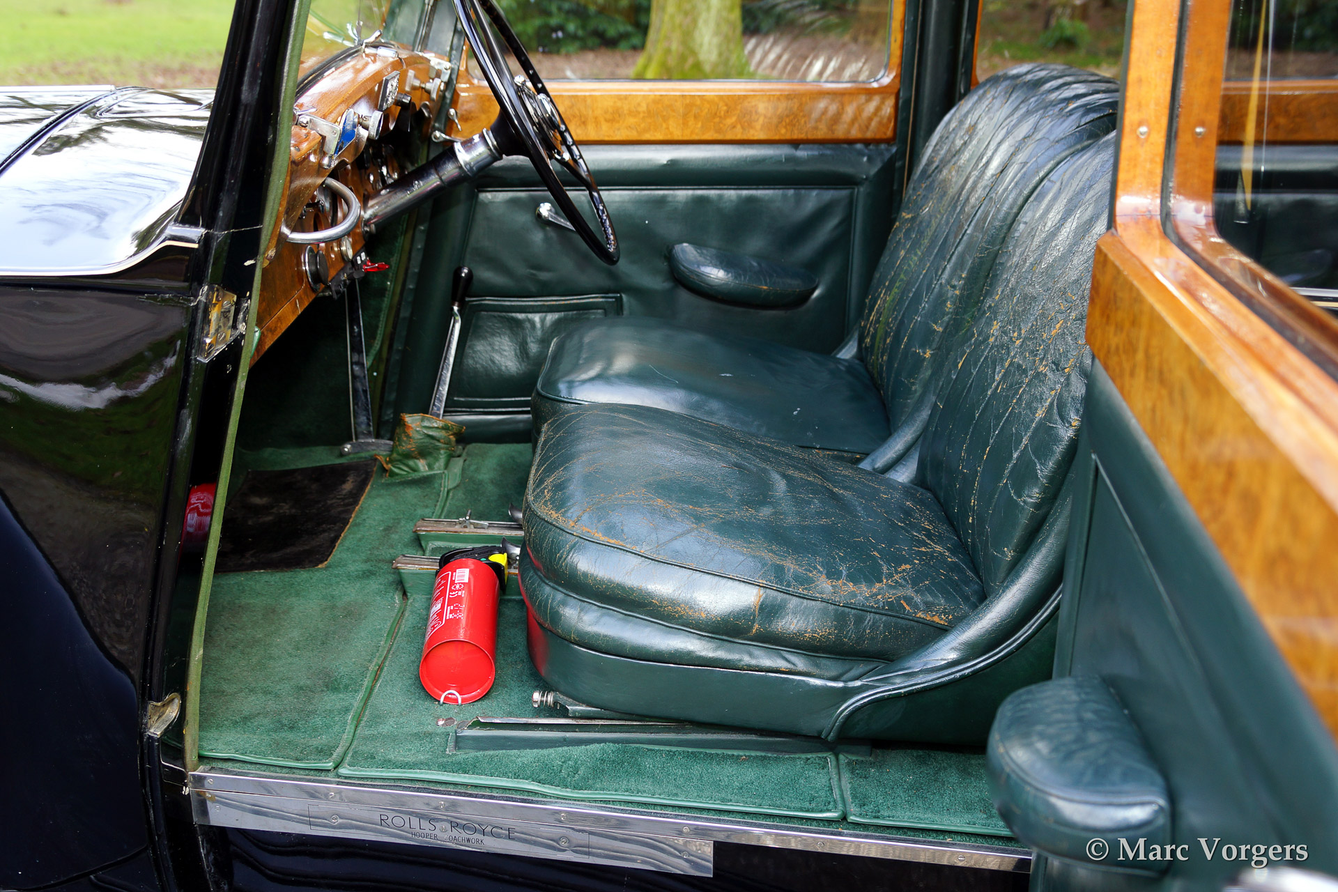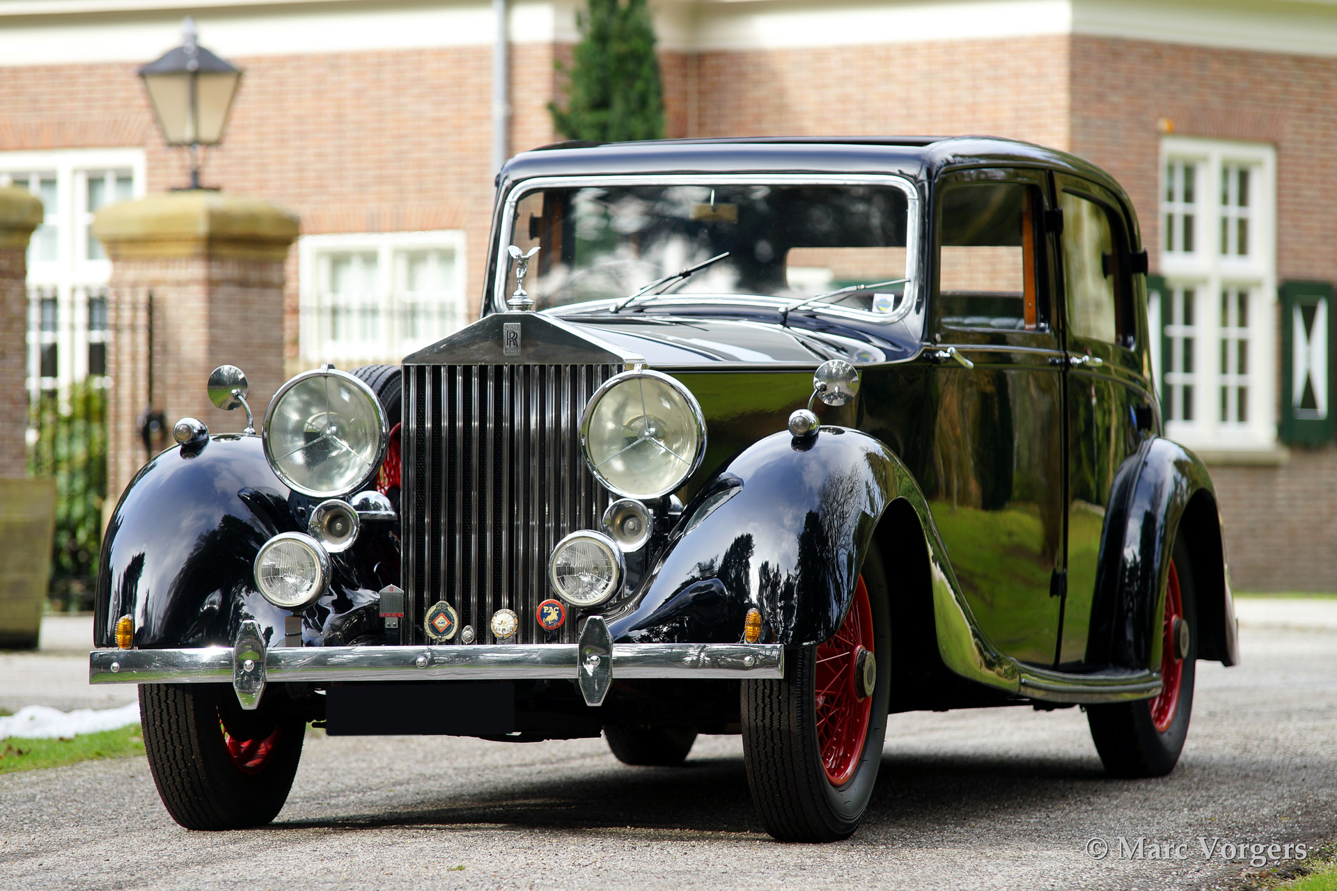 Rolls Royce 25/30 Hooper sports saloon, 1937. Colour black with a dark green leather interior. Green wool carpet. Red enameled wire wheels. This Rolls Royce with Hooper sports saloon bodywork is in very good and very original condition throughout. The automobile was sold new in the United Kingdom.