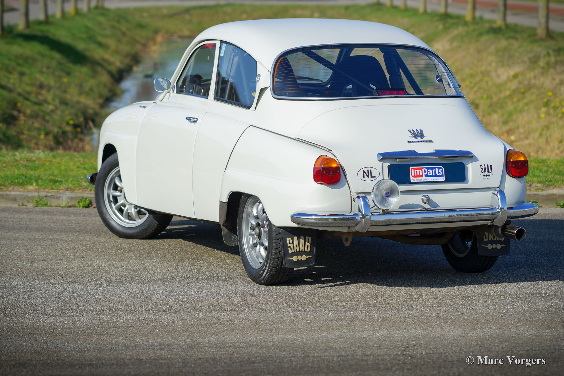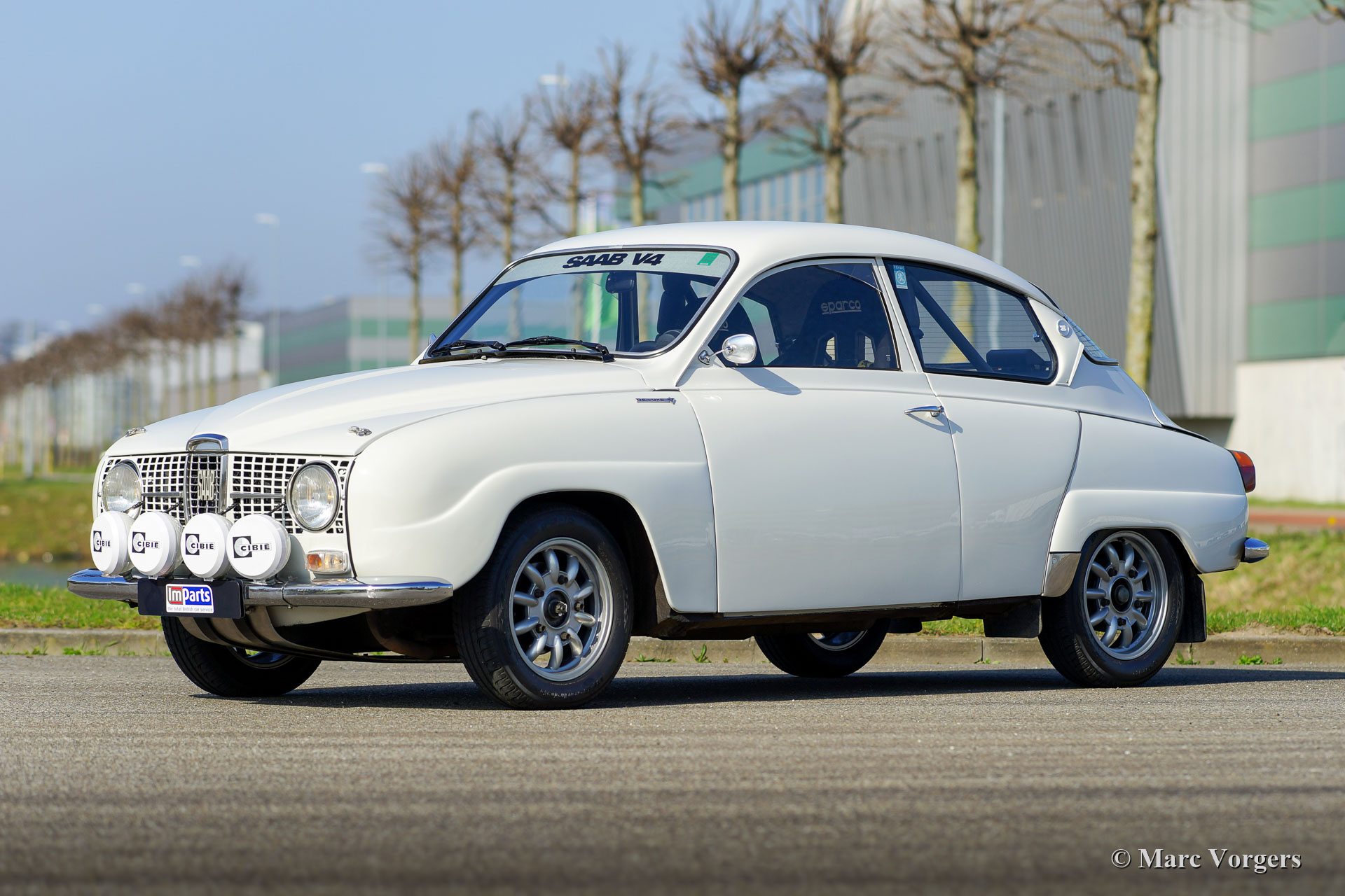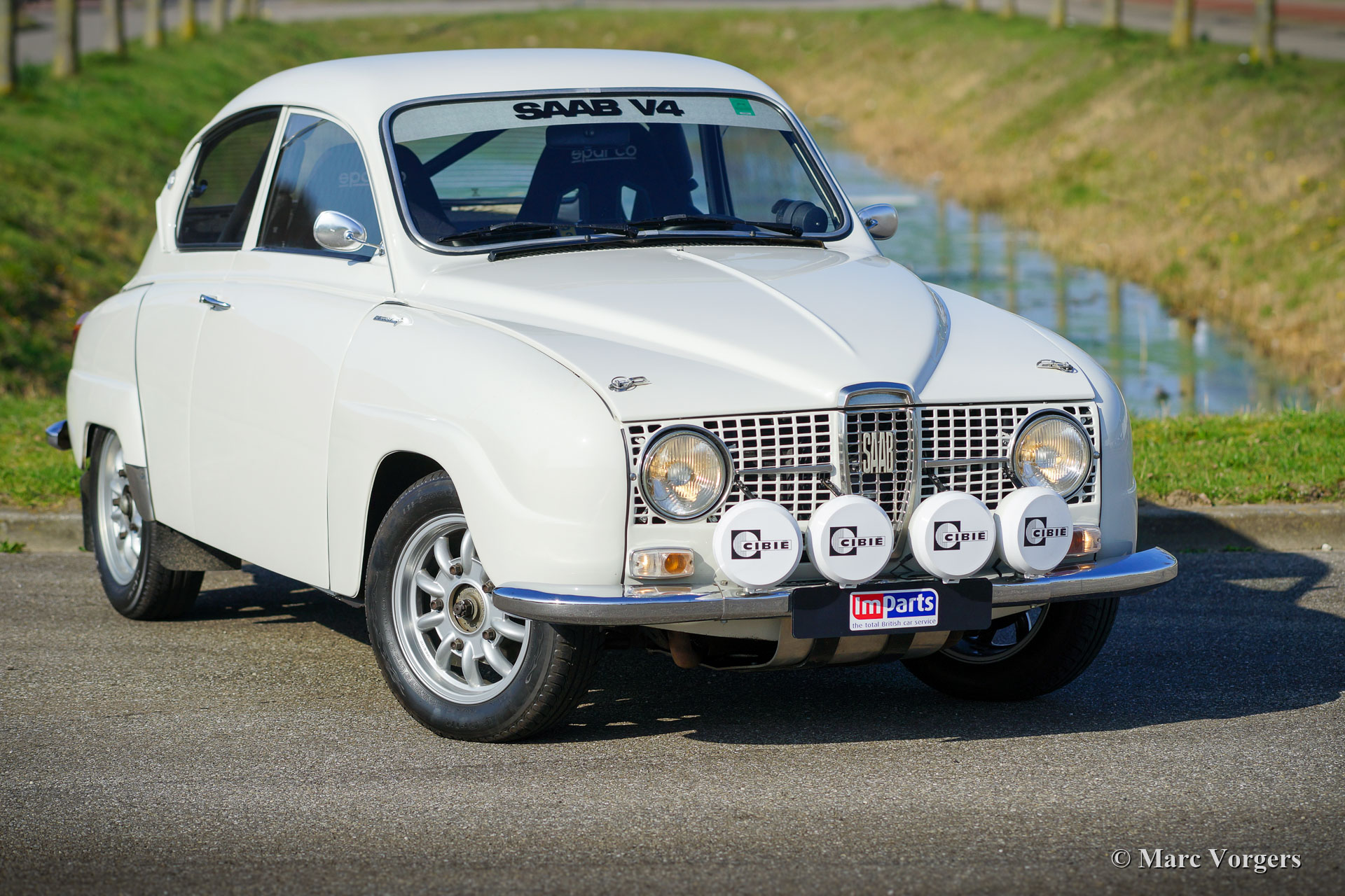 Saab 96 V4 De Luxe voiture de rallye, année de construction 1968, première immatriculation le 14 janvier 1972 (Pays-Bas). Couleur blanche associée à un intérieur de rallye noir. Sièges baquets Sparco recouverts de tissu noir et cuir sur les parties surélevées, tapis en caoutchouc noir. Cette impressionnante Saab V4 fut superbement construite, modifiée et réglée comme une voiture de rallye historique compétitive et fiable en 2009. Les travaux furent commandés par le propriétaire actuel qui chérit la voiture depuis 2009. La voiture est en très bon à excellent état, et il a parcouru environ 20 000 kilomètres depuis la fin des travaux. Le propriétaire a beaucoup apprécié cette Saab puissante et rapide lors de plusieurs rallyes historiques. Avant et après chaque événement, la voiture fut entièrement inspectée et entretenue, récemment, la voiture a reçu un service complet par un spécialiste Saab. Le moteur V4 incroyablement spécial fut construit par la société Sweed Speed Racing (spécialiste Saab V4) aux Pays-Bas. Vous trouverez ci-dessous une liste des modifications qui furent apportées au moteur et à d'autres parties de la voiture. Le moteur est désormais équipé de collecteurs d'admission spéciaux avec deux carburateurs Weber à double starter. Cet ensemble de puissance prend beaucoup de place sous le capot. Pour ouvrir le capot, il faut maintenant l'enlever complètement puisque les charnières furent supprimées. Spécifications du moteur : moteur V4, 1770 cm3, puissance de 130 ch, couple de 200 Nm. Il s'agit d'une Saab 96 V4 De Luxe parfaitement préparée pour le rallye. La voiture est prête pour toute aventure entre les mains d'un nouveau propriétaire passionné
