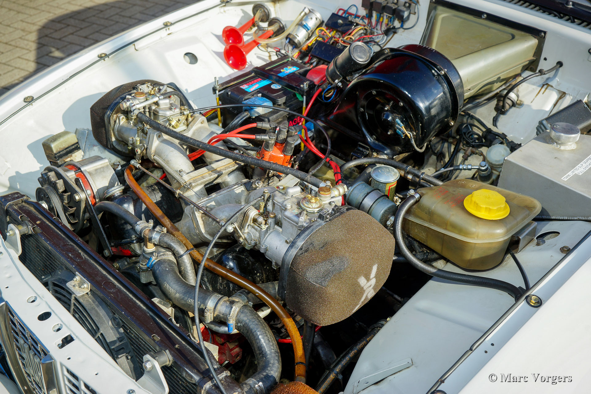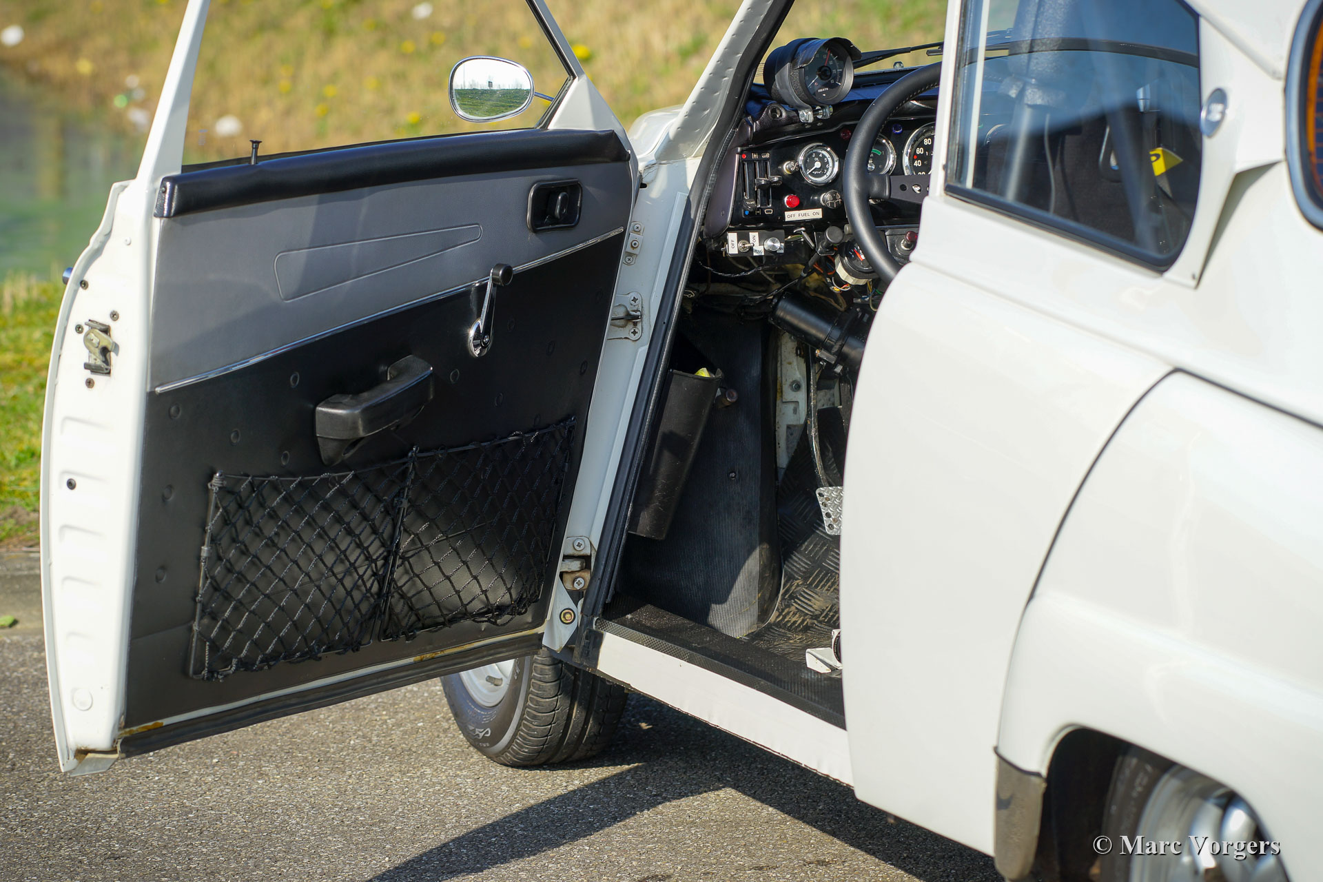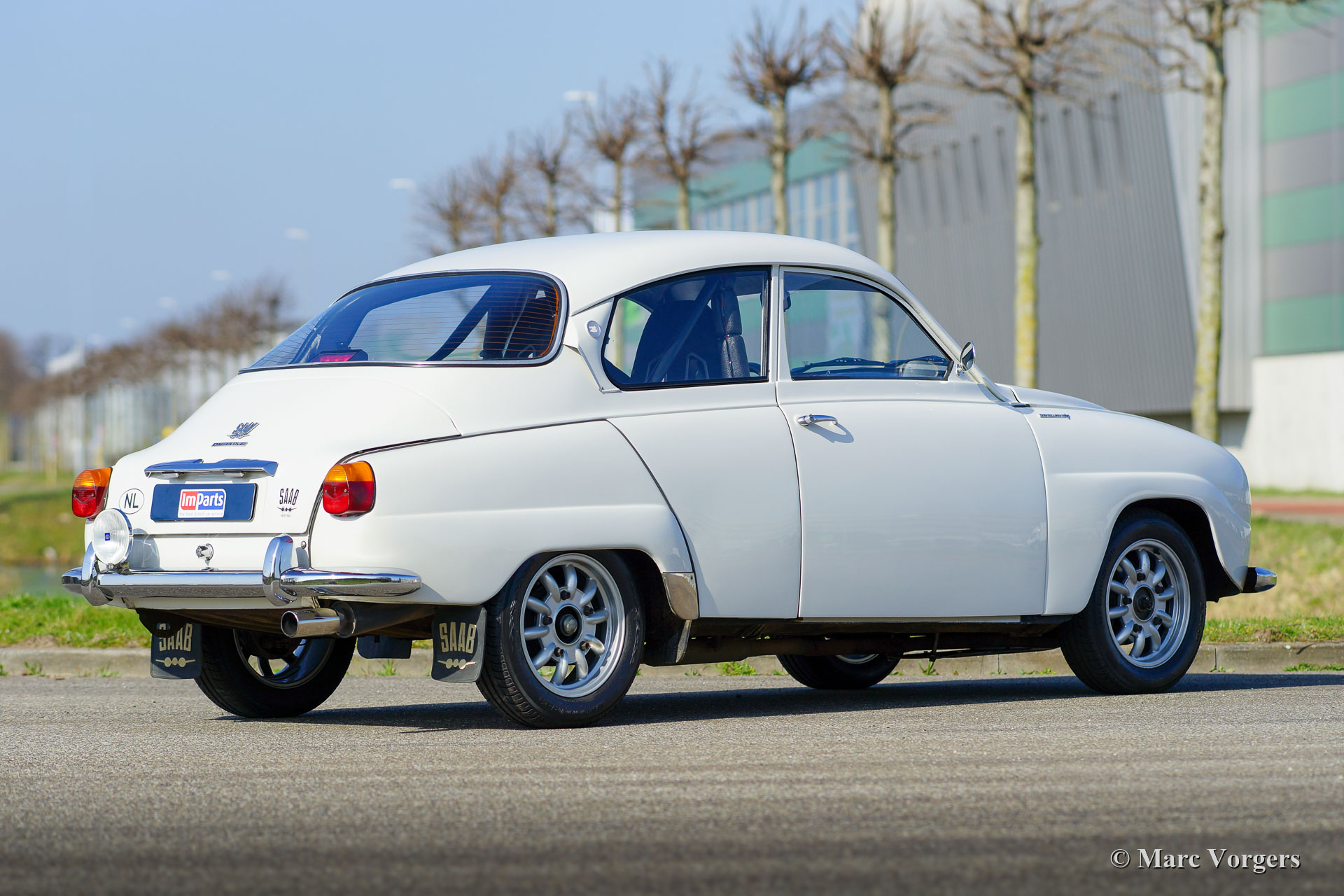 Saab 96 V4 De Luxe voiture de rallye, année de construction 1968, première immatriculation le 14 janvier 1972 (Pays-Bas). Couleur blanche associée à un intérieur de rallye noir. Sièges baquets Sparco recouverts de tissu noir et cuir sur les parties surélevées, tapis en caoutchouc noir. Cette impressionnante Saab V4 fut superbement construite, modifiée et réglée comme une voiture de rallye historique compétitive et fiable en 2009. Les travaux furent commandés par le propriétaire actuel qui chérit la voiture depuis 2009. La voiture est en très bon à excellent état, et il a parcouru environ 20 000 kilomètres depuis la fin des travaux. Le propriétaire a beaucoup apprécié cette Saab puissante et rapide lors de plusieurs rallyes historiques. Avant et après chaque événement, la voiture fut entièrement inspectée et entretenue, récemment, la voiture a reçu un service complet par un spécialiste Saab. Le moteur V4 incroyablement spécial fut construit par la société Sweed Speed Racing (spécialiste Saab V4) aux Pays-Bas. Vous trouverez ci-dessous une liste des modifications qui furent apportées au moteur et à d'autres parties de la voiture. Le moteur est désormais équipé de collecteurs d'admission spéciaux avec deux carburateurs Weber à double starter. Cet ensemble de puissance prend beaucoup de place sous le capot. Pour ouvrir le capot, il faut maintenant l'enlever complètement puisque les charnières furent supprimées. Spécifications du moteur : moteur V4, 1770 cm3, puissance de 130 ch, couple de 200 Nm. Il s'agit d'une Saab 96 V4 De Luxe parfaitement préparée pour le rallye. La voiture est prête pour toute aventure entre les mains d'un nouveau propriétaire passionné