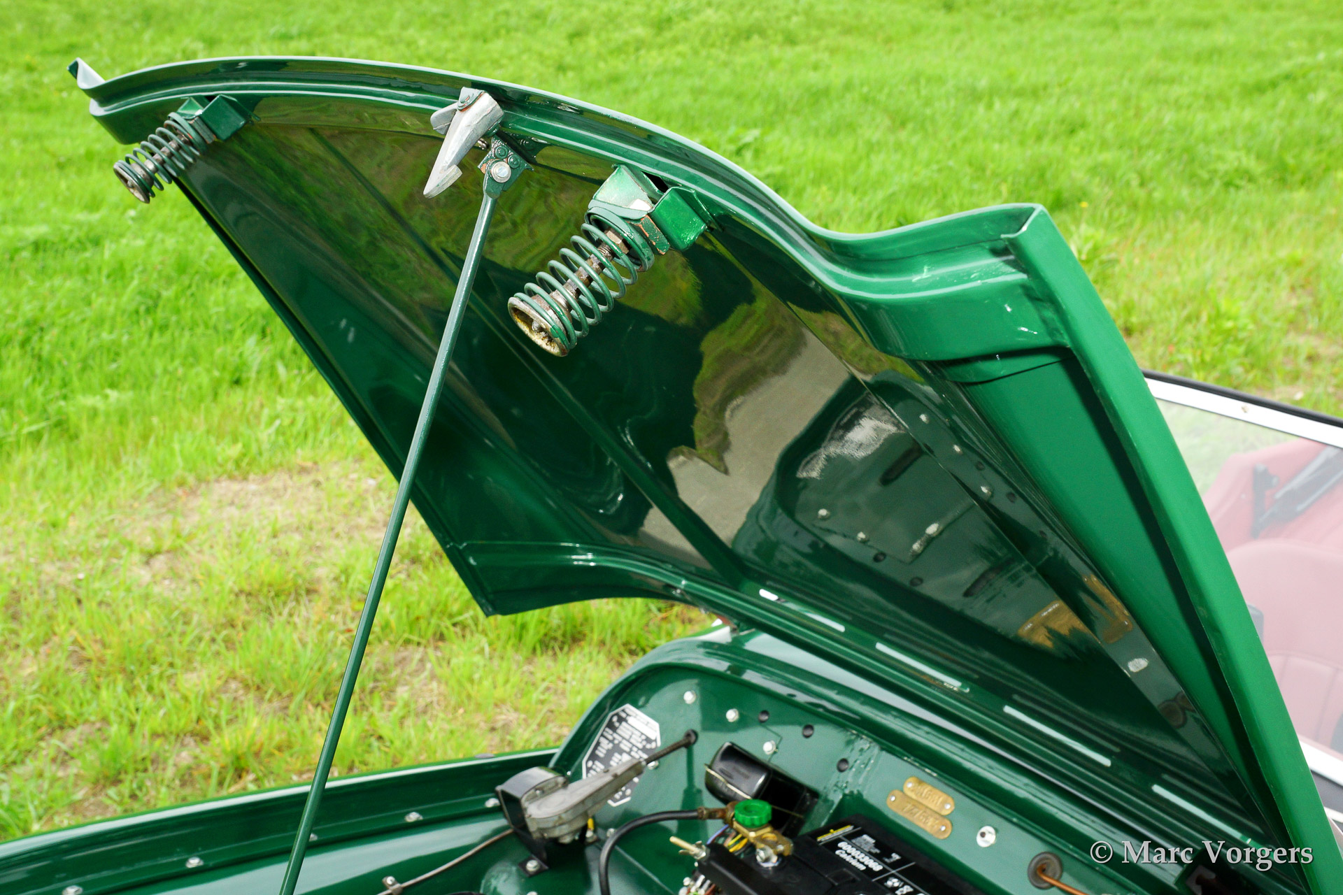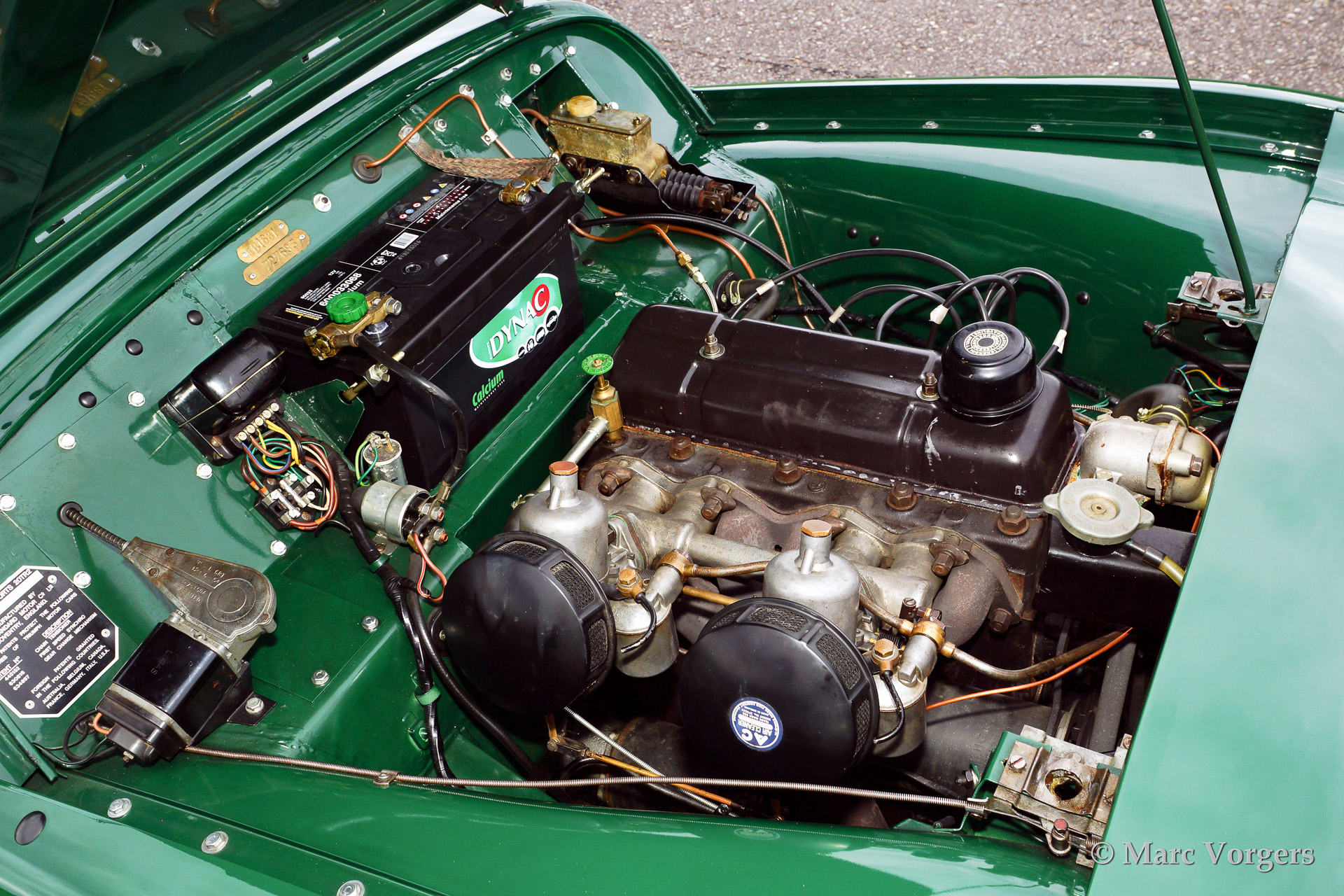 The Triumph TR 2 is a no nonsense sports car; very robust, simple and reliable, a true British sports car all over. The engine was a Standard Vanguard based, cast-iron, long stroke, in-line four cylinder with a displacement of 1991cc. The engine was equipped with two S.U. carburettors giving a power-output of almost 100 bhp.