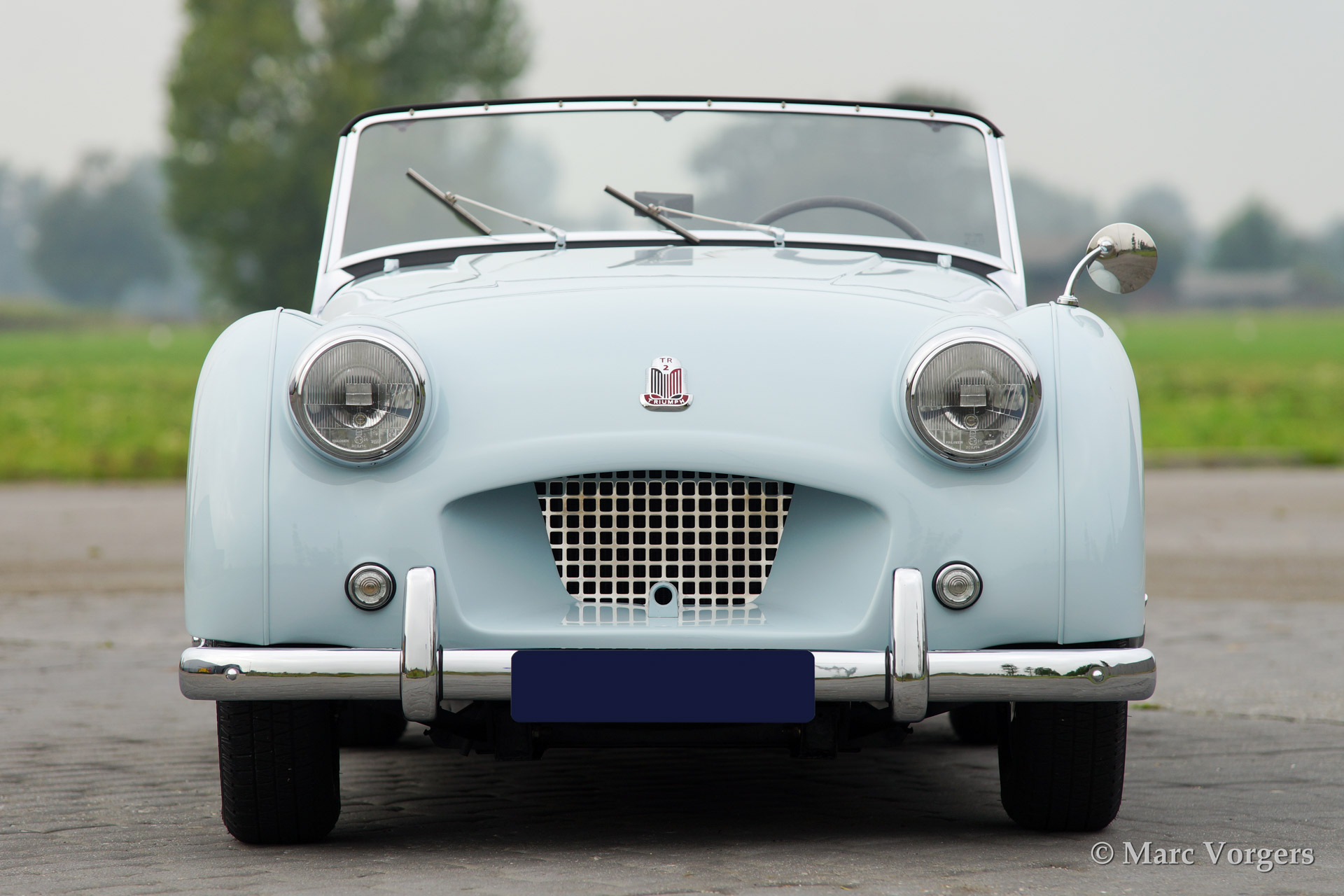 The Triumph TR 2 is the successor of the Triumph 2000 Roadster. TR 2 which was built from the year 1953 until the year 1955. The Triumph TR 2 was the first sports car in the long, successful, Triumph TR history ending with the TR 8 in the mid-1980ies. The car shows a very remarkable body shape with deep door cut-outs and very nice flowing wing- and tail-lines. The headlights are located way up in front of the bonnet looking a bit like frogeyes.