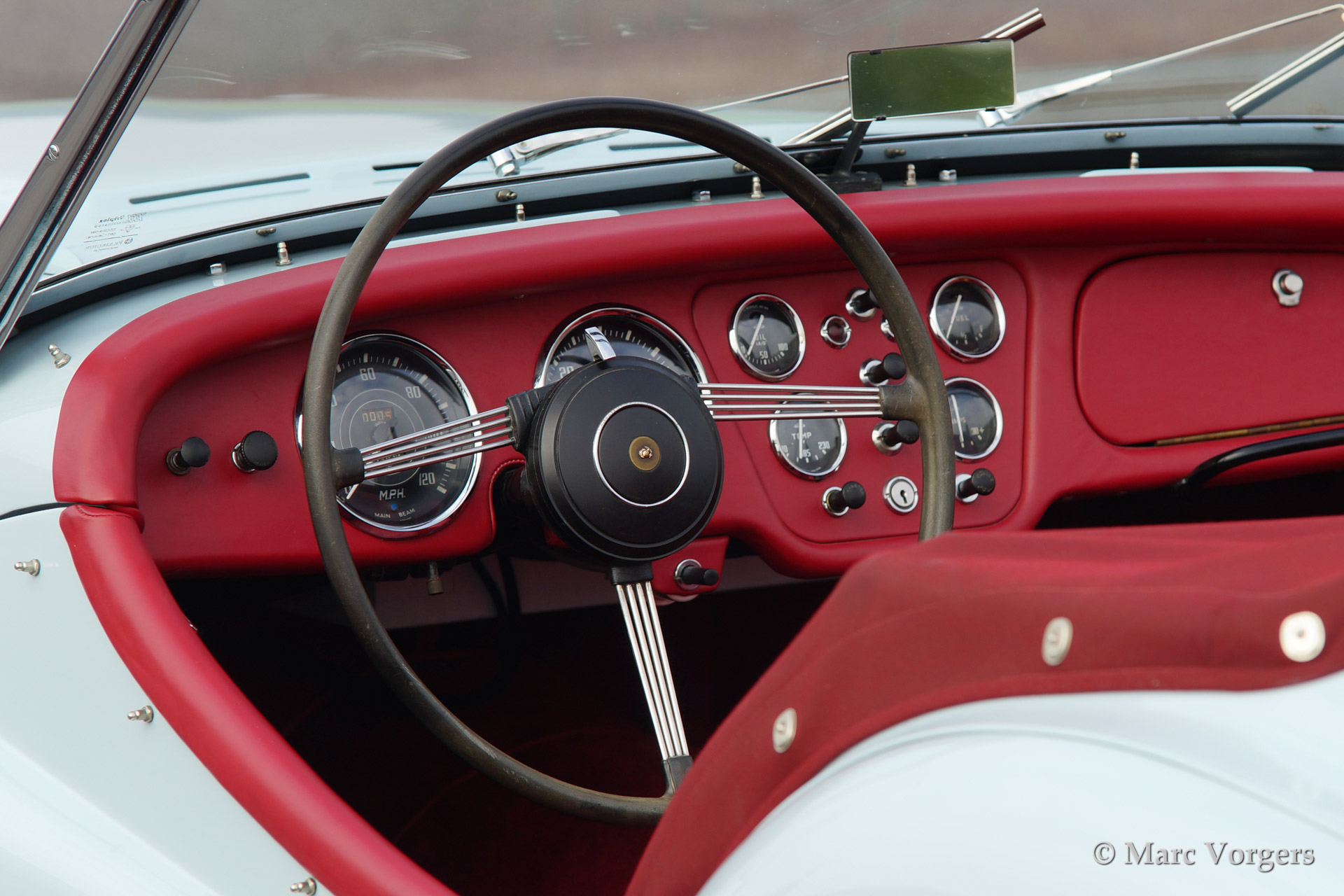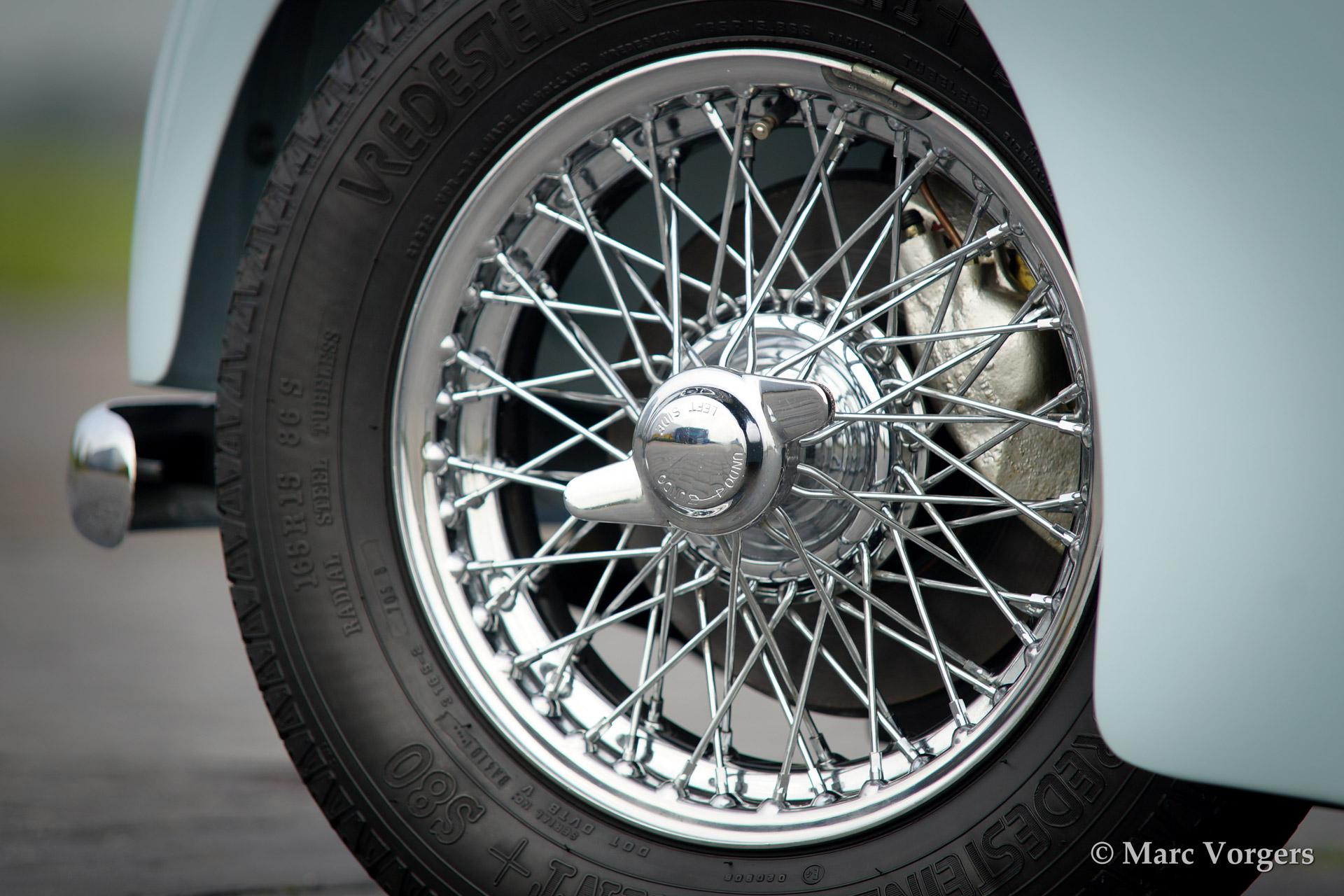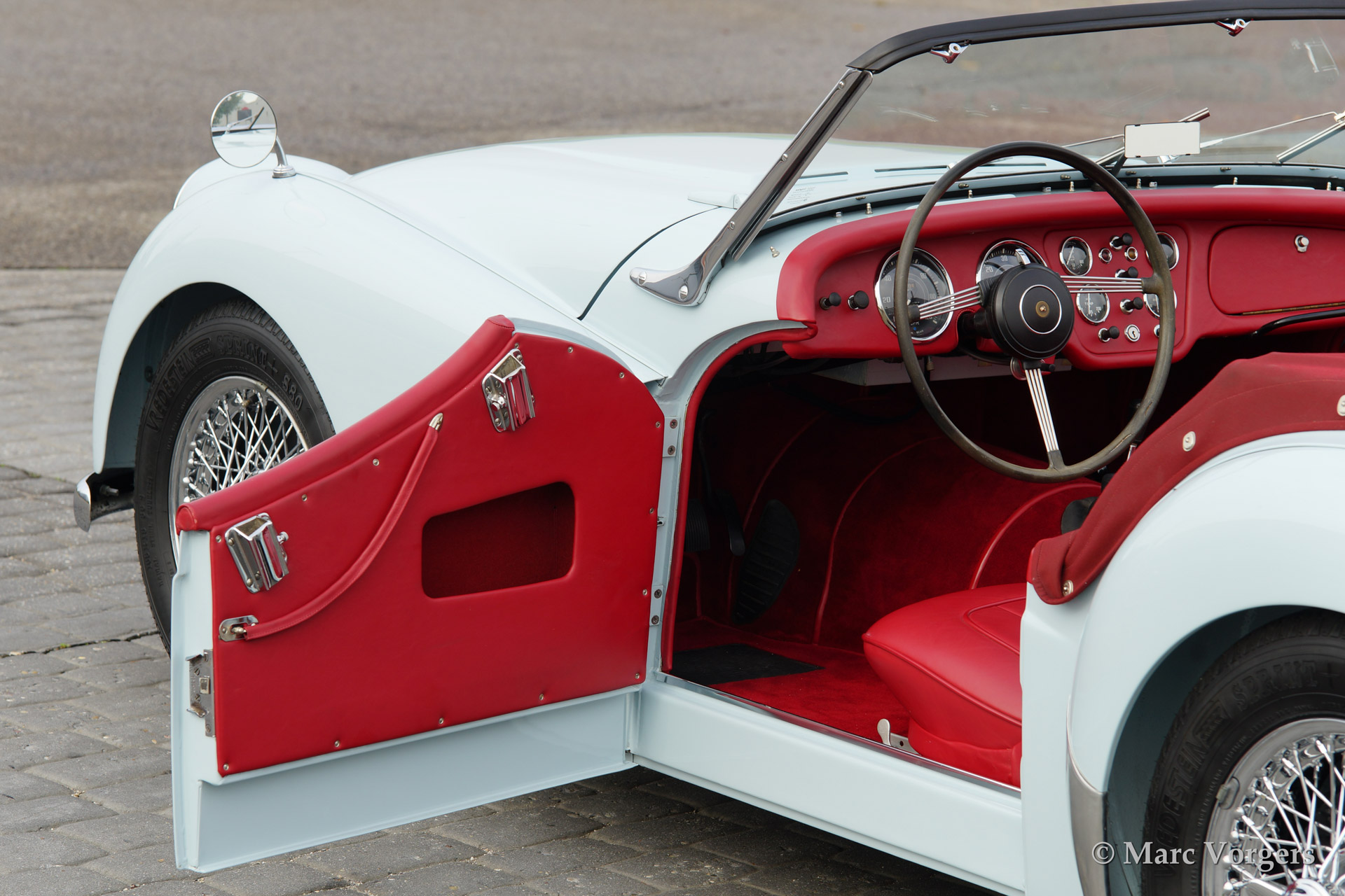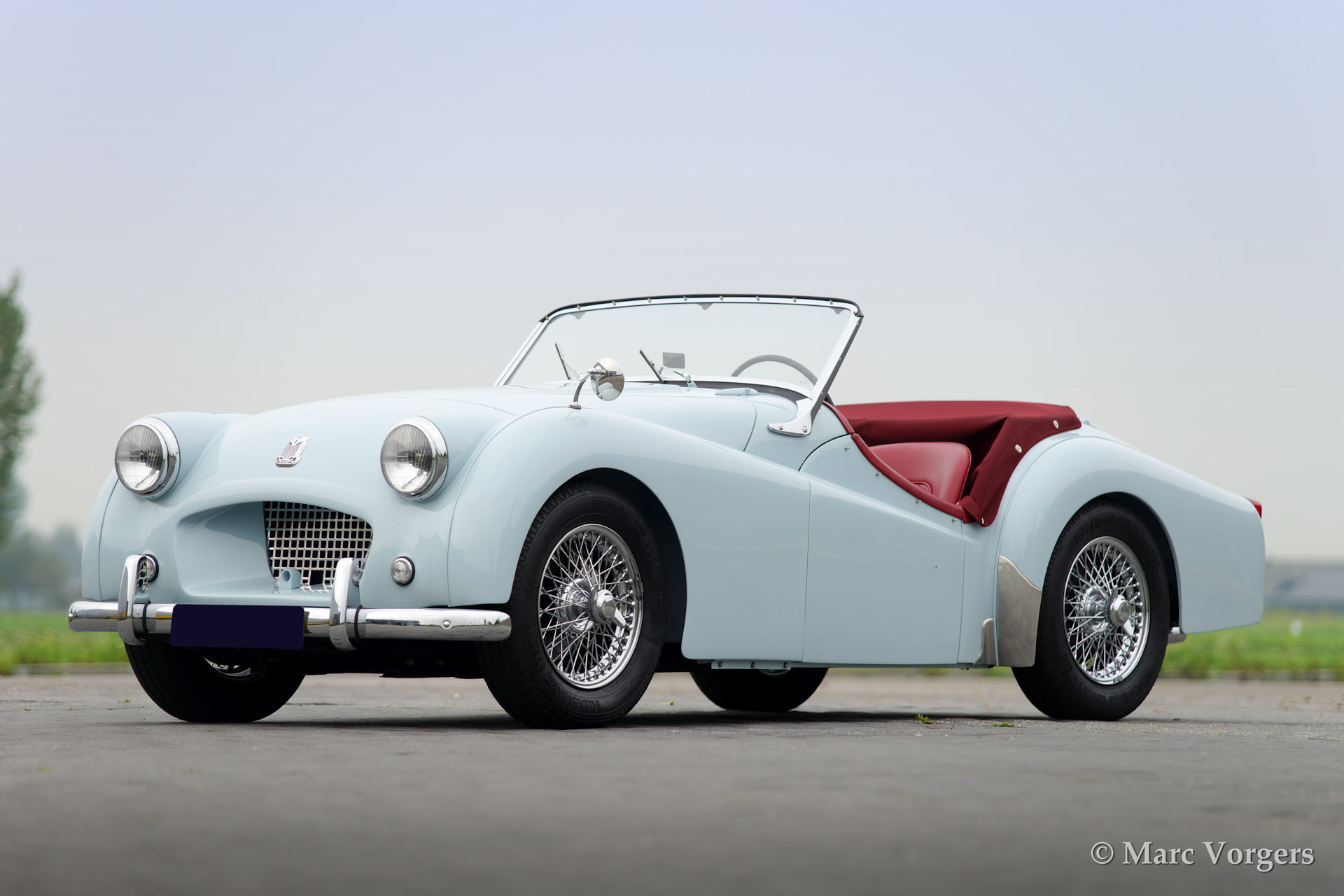 The Triumph TR 2 is a no nonsense sports car; very robust, simple and reliable, a true British sports car all over. The engine was a Standard Vanguard based, cast-iron, long stroke, in-line four cylinder with a displacement of 1991cc. The engine was equipped with two S.U. carburettors giving a power-output of almost 100 bhp.
