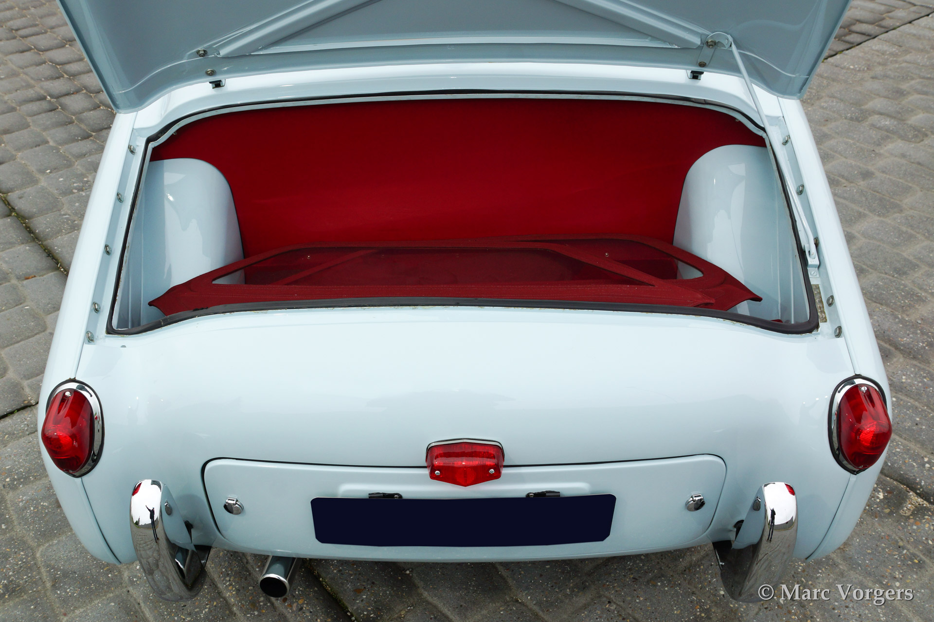 The TR 2 is a pure two-person roadster, a classic generously giving you the fifties British sports car feeling, rough but honest. It comes with a simple soft-top for weather protection. Separate clip-on side screens can additionally be attached to the doors.