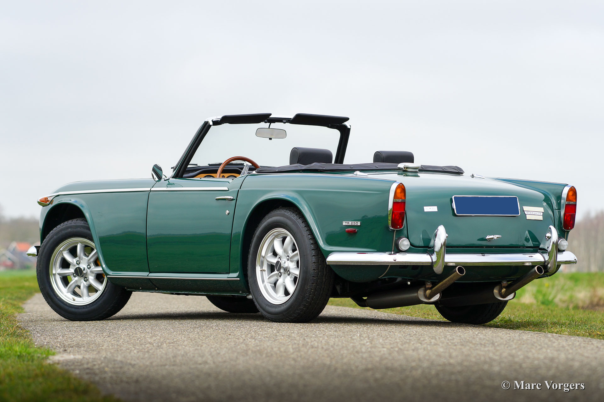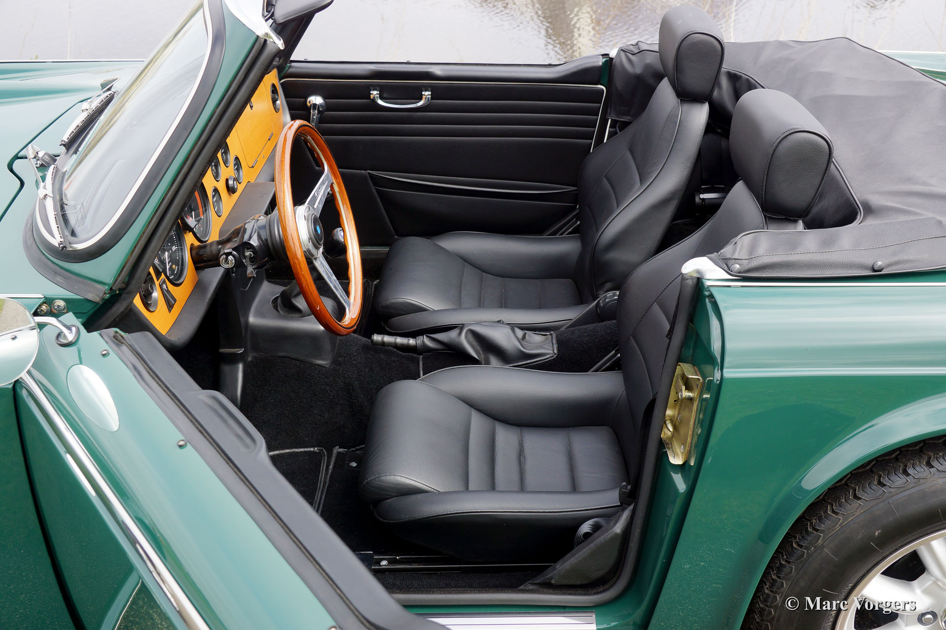 Triumph TR 250, années 1967. Numéro de châssis CD10XXL, numéro de moteur CC11XXE. Couleur Triumph Racing Green avec un intérieur en cuir noir et une capote en mohair noir. Cette Triumph TR 250 a été entièrement restauré aux normes les plus élevées par l'entreprise de renom Piet Mozes Restaurations. Coûts, ni les efforts ont été enregistrées pour construire le parfait TR 250. Cette Triumph TR 250 est mieux que l'état neuf! Multiple système de peinture de couche à base de primaire époxy, conservation complète et approfondie contre la corrosion, toutes les parties métalliques nus galvanisé et / ou chromé et le châssis et la suspension composants enduit de poudre pour assurer la qualité et la beauté durable. La carrosserie et le châssis ont été renforcées et modifiés à plusieurs détails importants. Mécaniquement tout a été révisé, renouvelé et sur les détails modifiés pour assurer la durabilité et une fiabilité maximale.