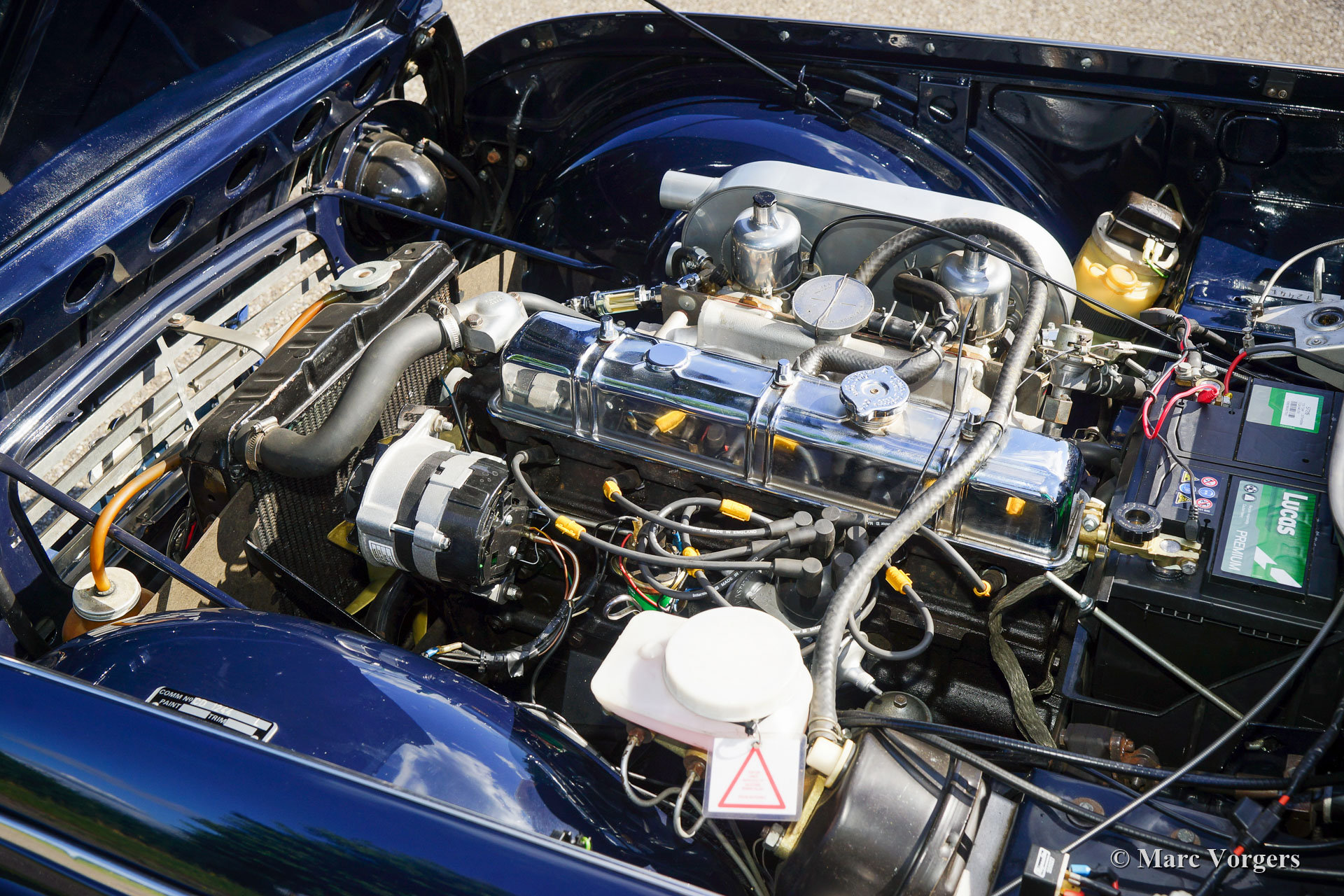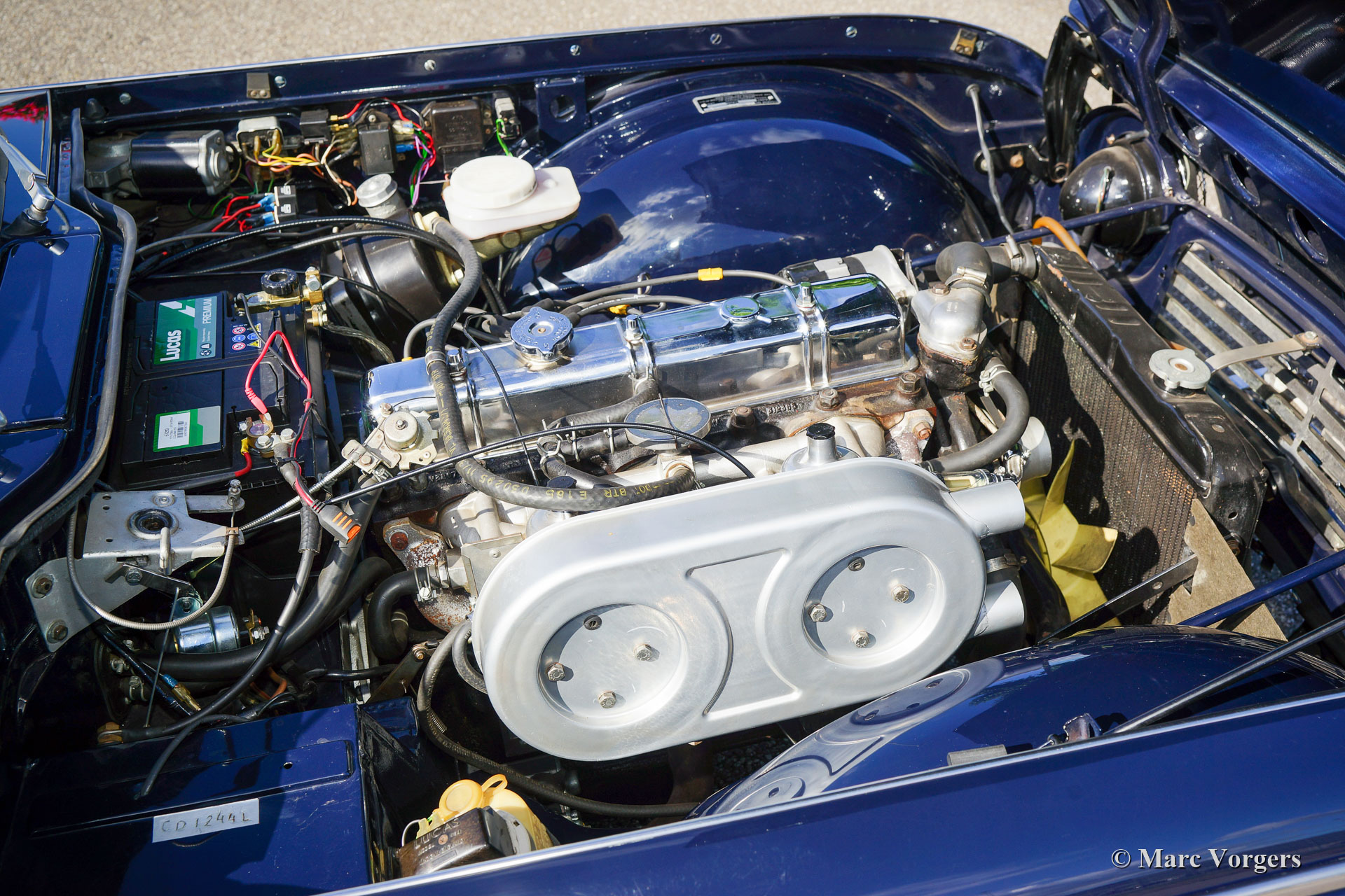 The six cylinder engine originally came from the Triumph 2000 saloon. For use in the TR 5/ TR 250 Triumph enlarged the cylinder capacity up to 2498 cc., fitted a more racy camshaft and petrol injection. Result was that they gained 60 bhp. (TR5) to the standard engine, enough for the engine to be used in a sports car like the TR 5/ TR 250.