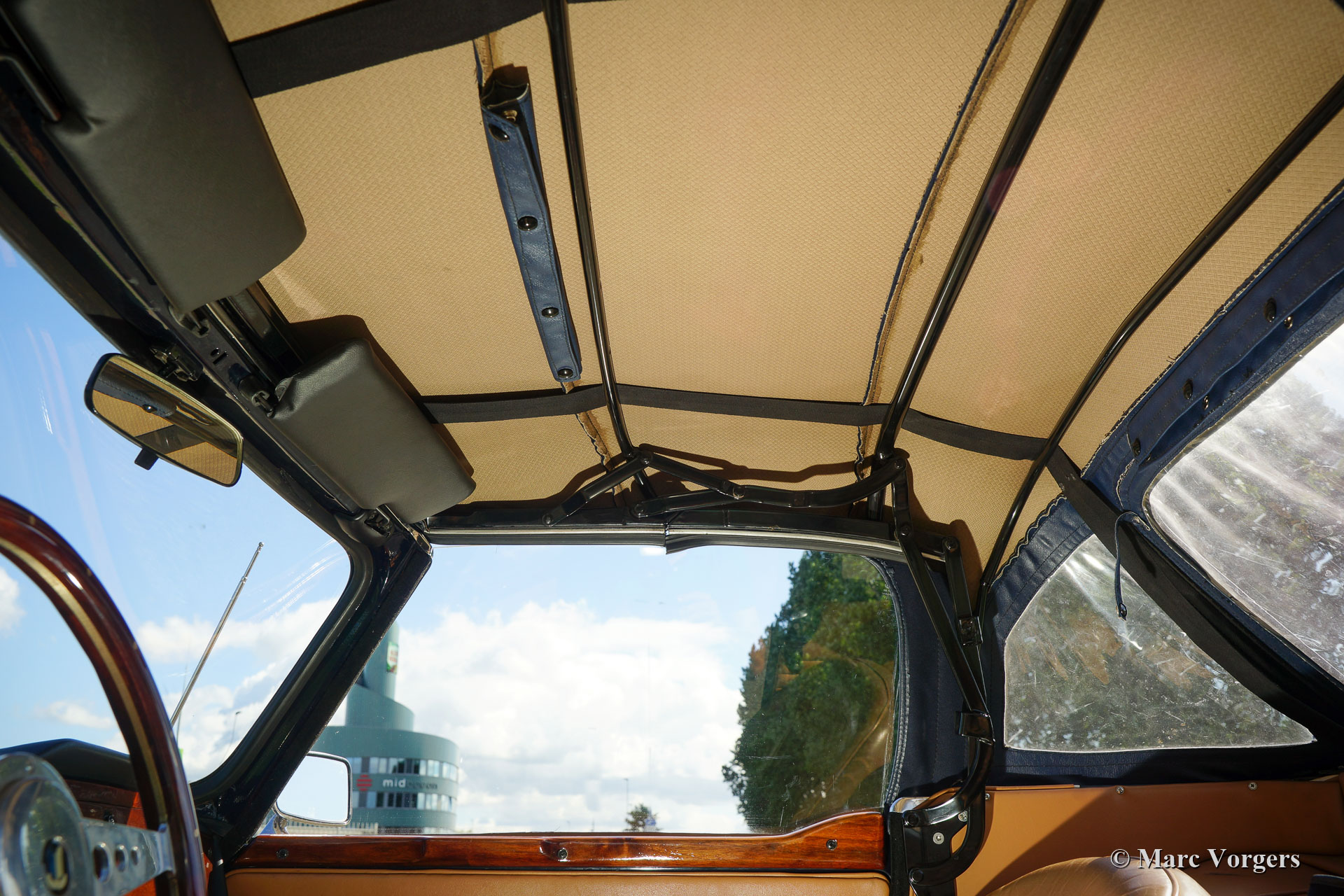 The Triumph TR 4 was in large based on TR 3b mechanics but it was a completely different car by design. Clear flowing lines and a compact purposeful look made the TR 4 a very handsome sports car. Functionally a lot changed; the interior offered more space as did the booth, the engine room was larger and easier to reach and the car was fitted with roll up windows.