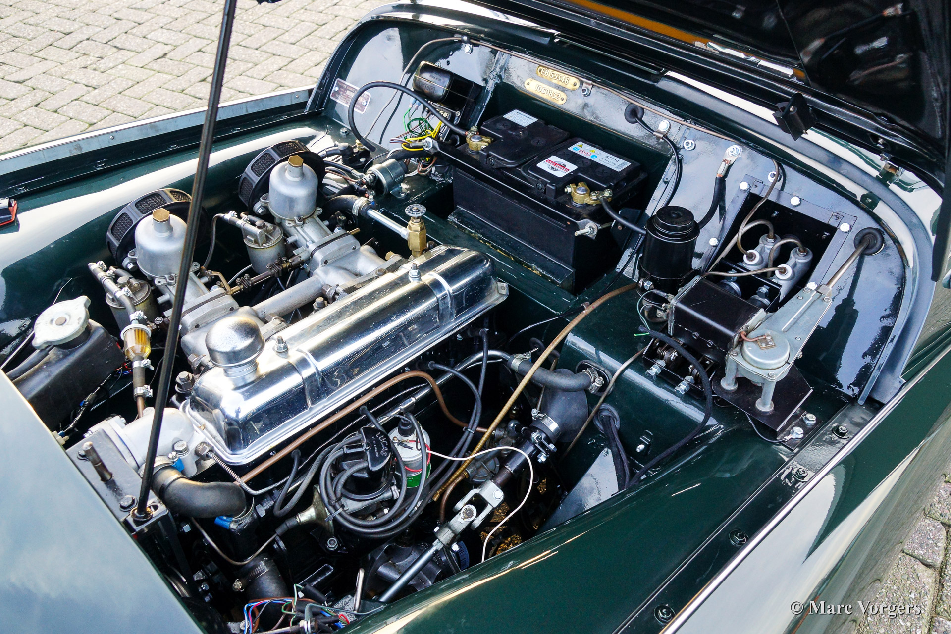 The Triumph TR 3 is a no nonsense sports car; very robust, simple and reliable, a true British sports car all over. The TR 3 was the first production car, off factory, equipped with disc brakes on the front-wheels. The engine was a Standard Vanguard based, cast-iron, long stroke, in-line four cylinder with a displacement of 1991cc. The TR 3 engine was equipped with two carburettors giving a power-output of almost 100 bhp.