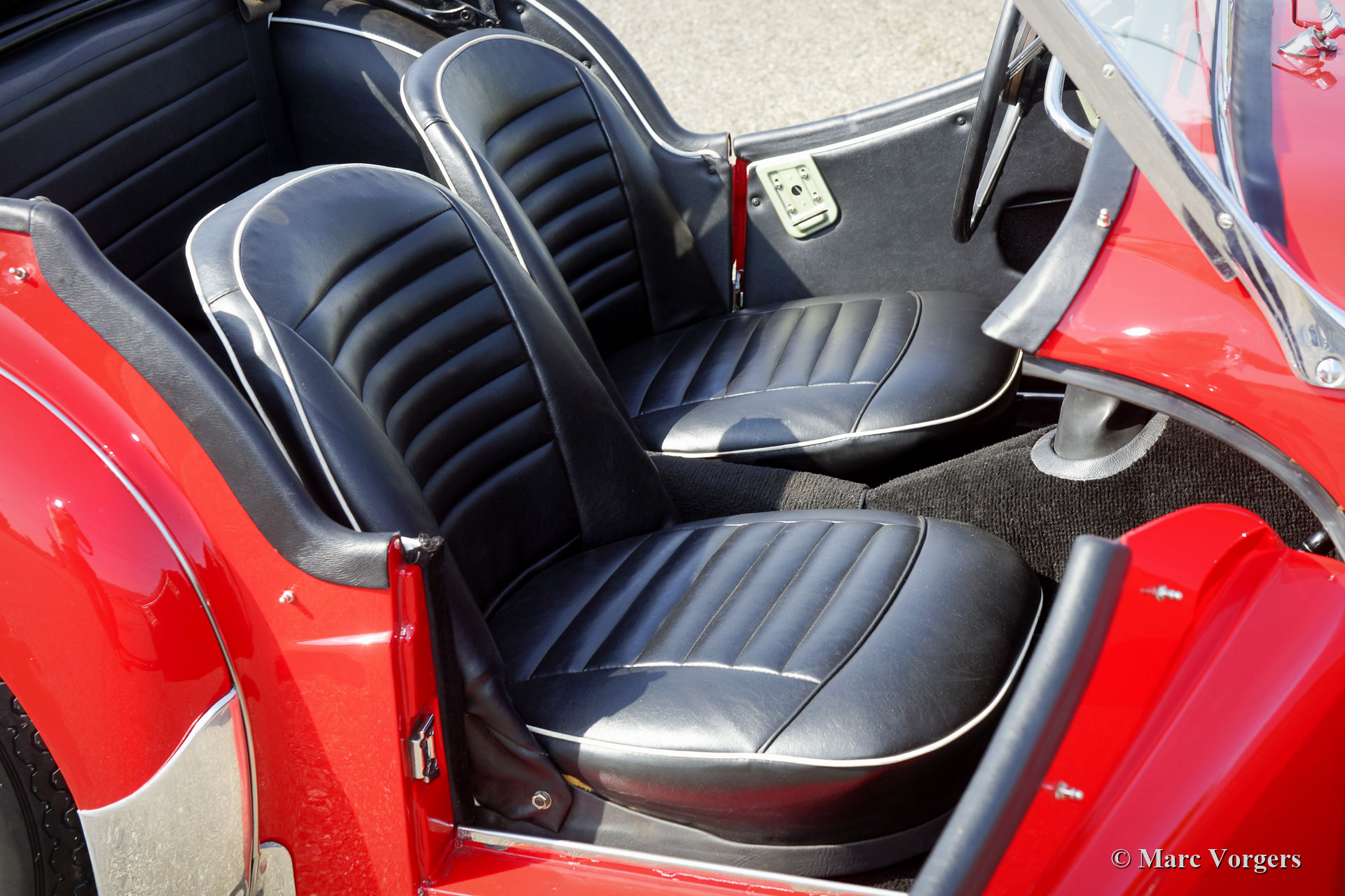 The Triumph TR 3 is a no nonsense sports car; very robust, simple and reliable, a true British sports car all over. The TR 3 was the first production car, off factory, equipped with disc brakes on the front-wheels. The engine was a Standard Vanguard based, cast-iron, long stroke, in-line four cylinder with a displacement of 1991cc. The TR 3 engine was equipped with two carburettors giving a power-output of almost 100 bhp.