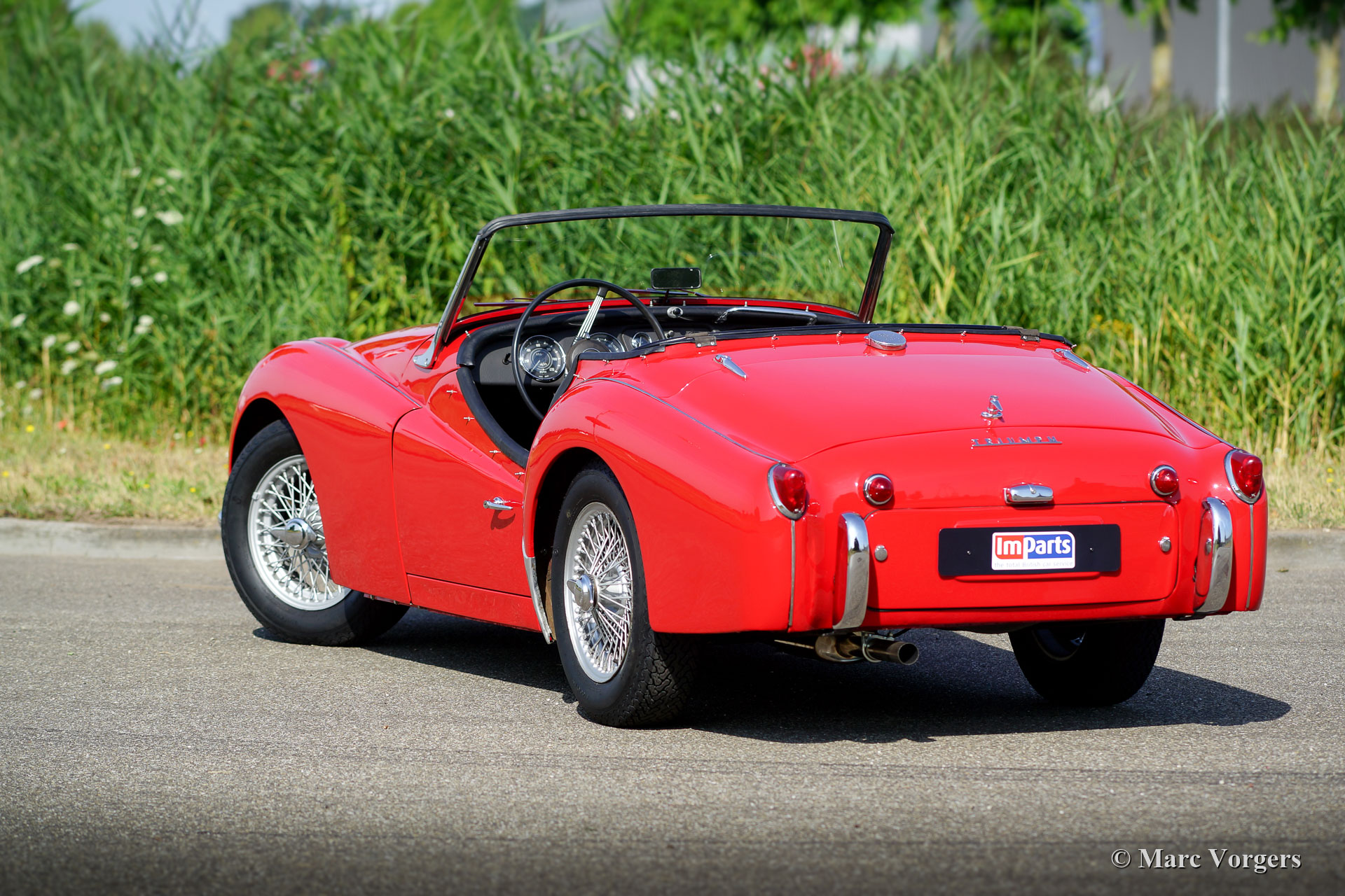 In the year 1957 the Triumph TR3a was presented. Again Triumph changed the grille (wider, covering the entire width of the car). Also the headlamps were placed a little backwards and door handles were fitted. Very short after the introduction of the TR 3a the Triumph TR 3b was introduced, the only change was the larger cylinder capacity of the engine.