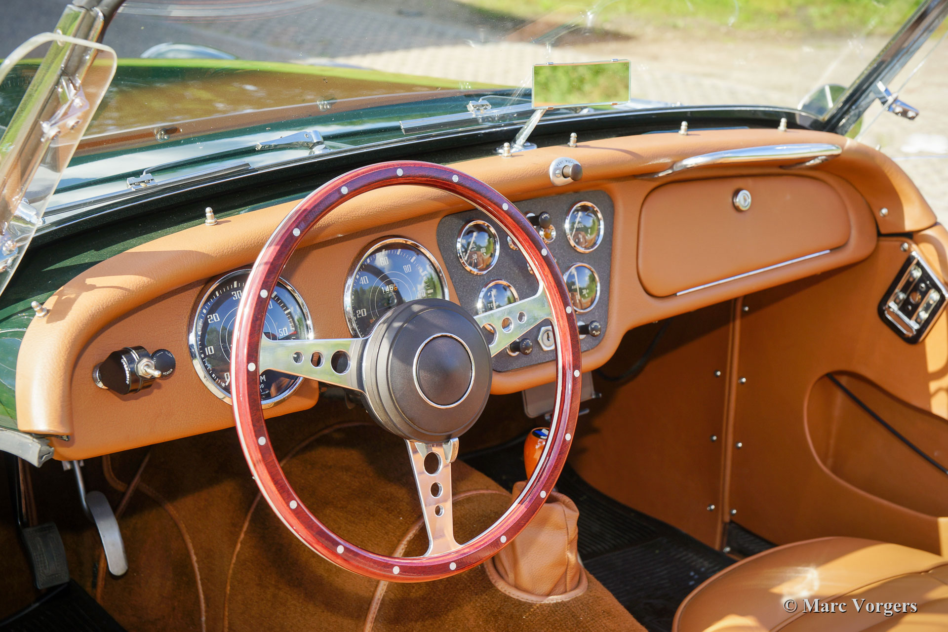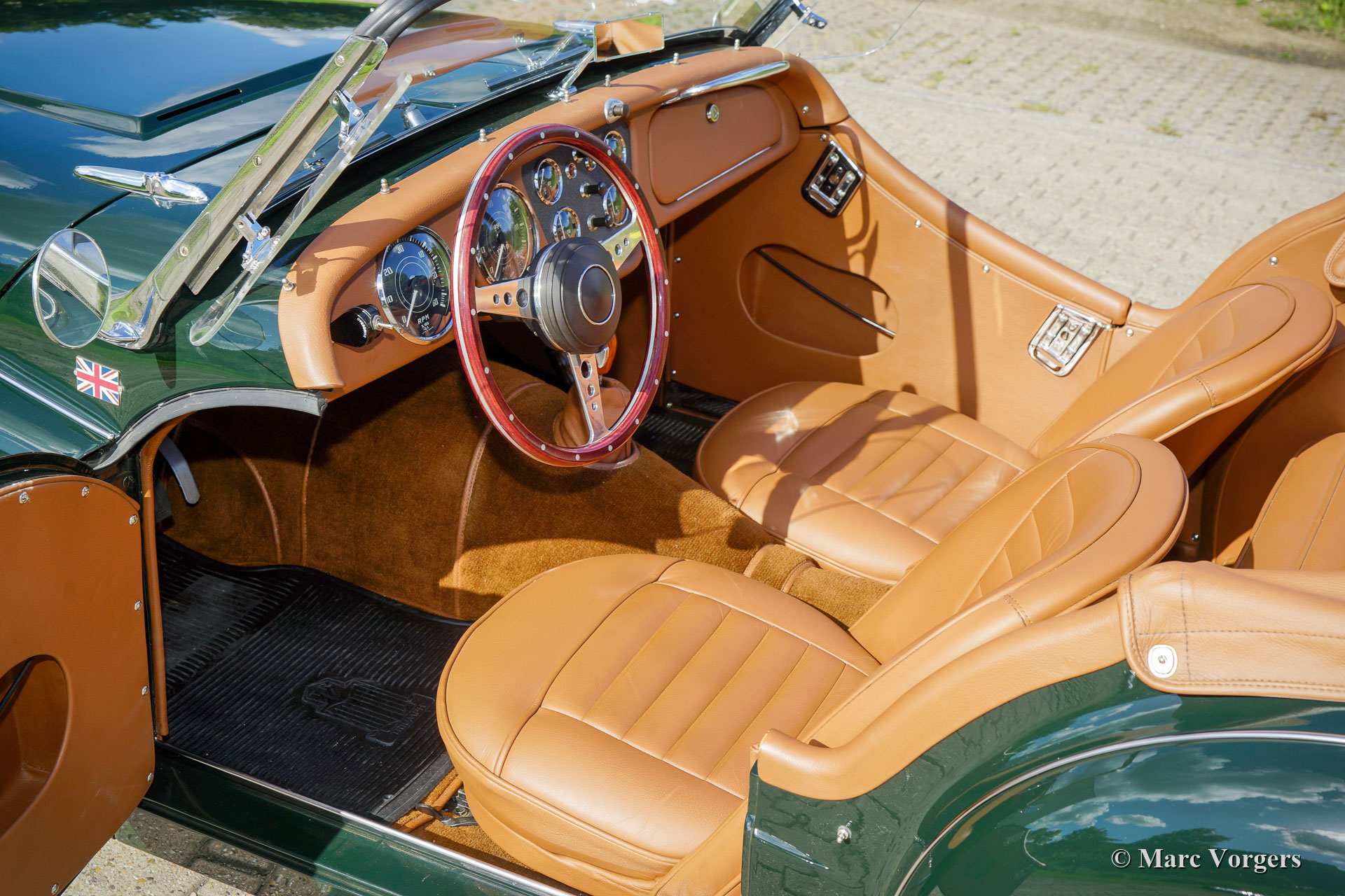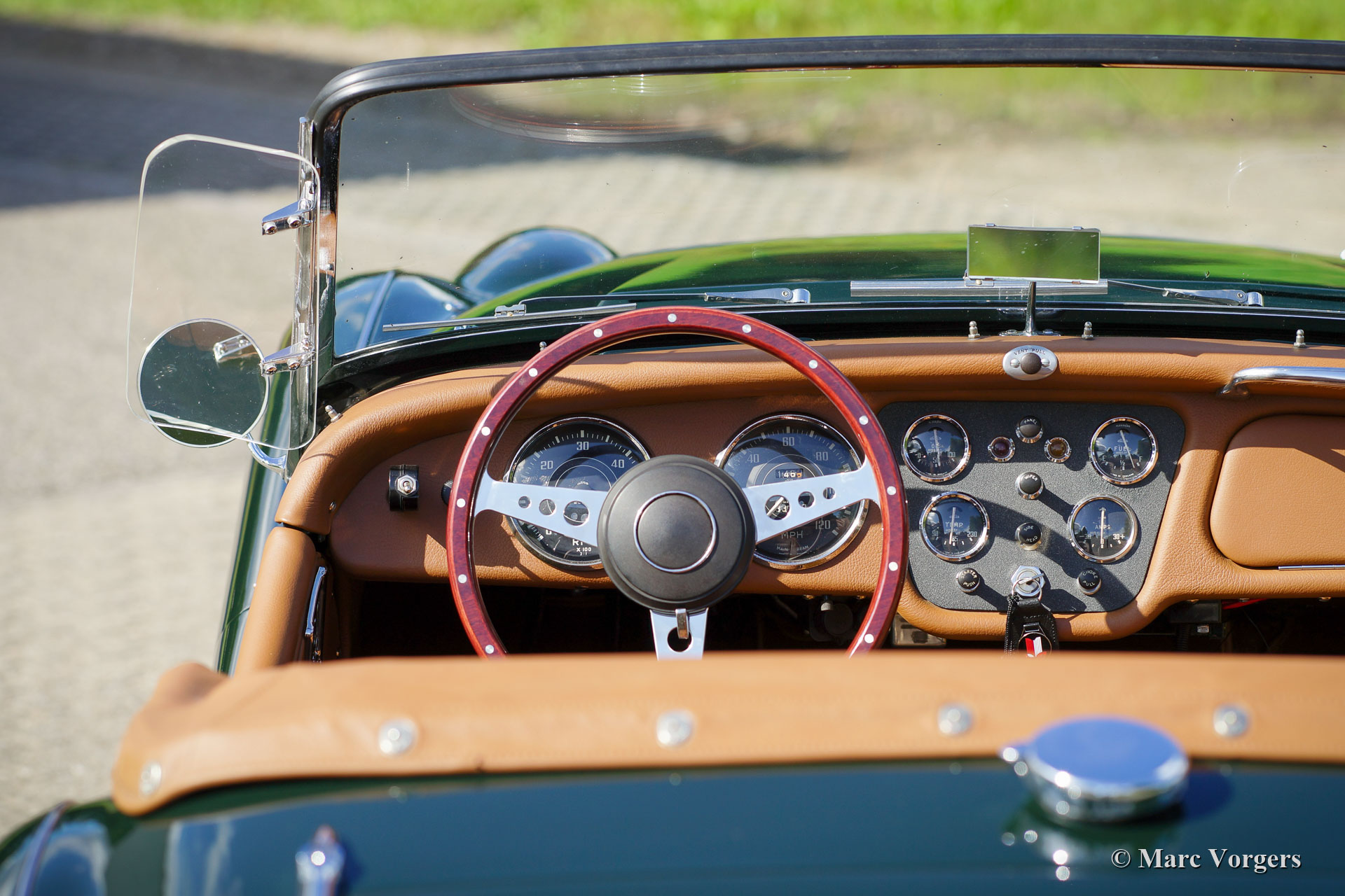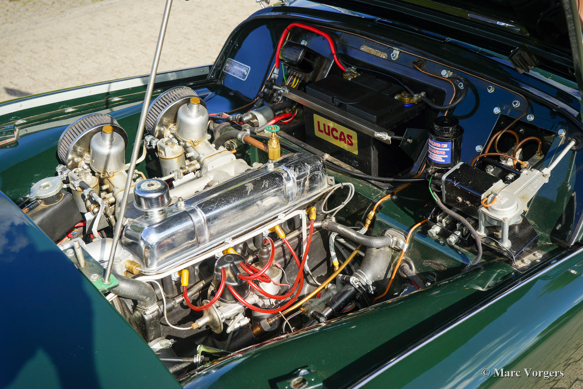 The Triumph TR 3 is a no nonsense sports car; very robust, simple and reliable, a true British sports car all over. The TR 3 was the first production car, off factory, equipped with disc brakes on the front-wheels. The engine was a Standard Vanguard based, cast-iron, long stroke, in-line four cylinder with a displacement of 1991cc. The TR 3 engine was equipped with two carburettors giving a power-output of almost 100 bhp.