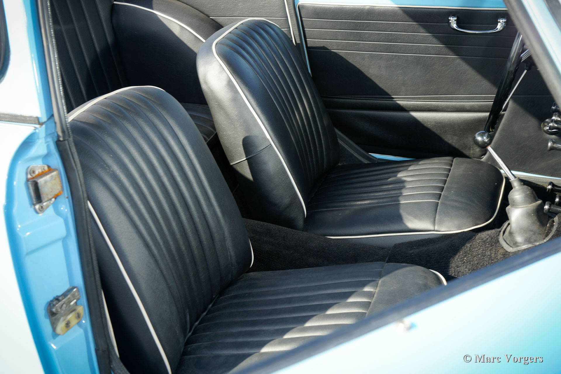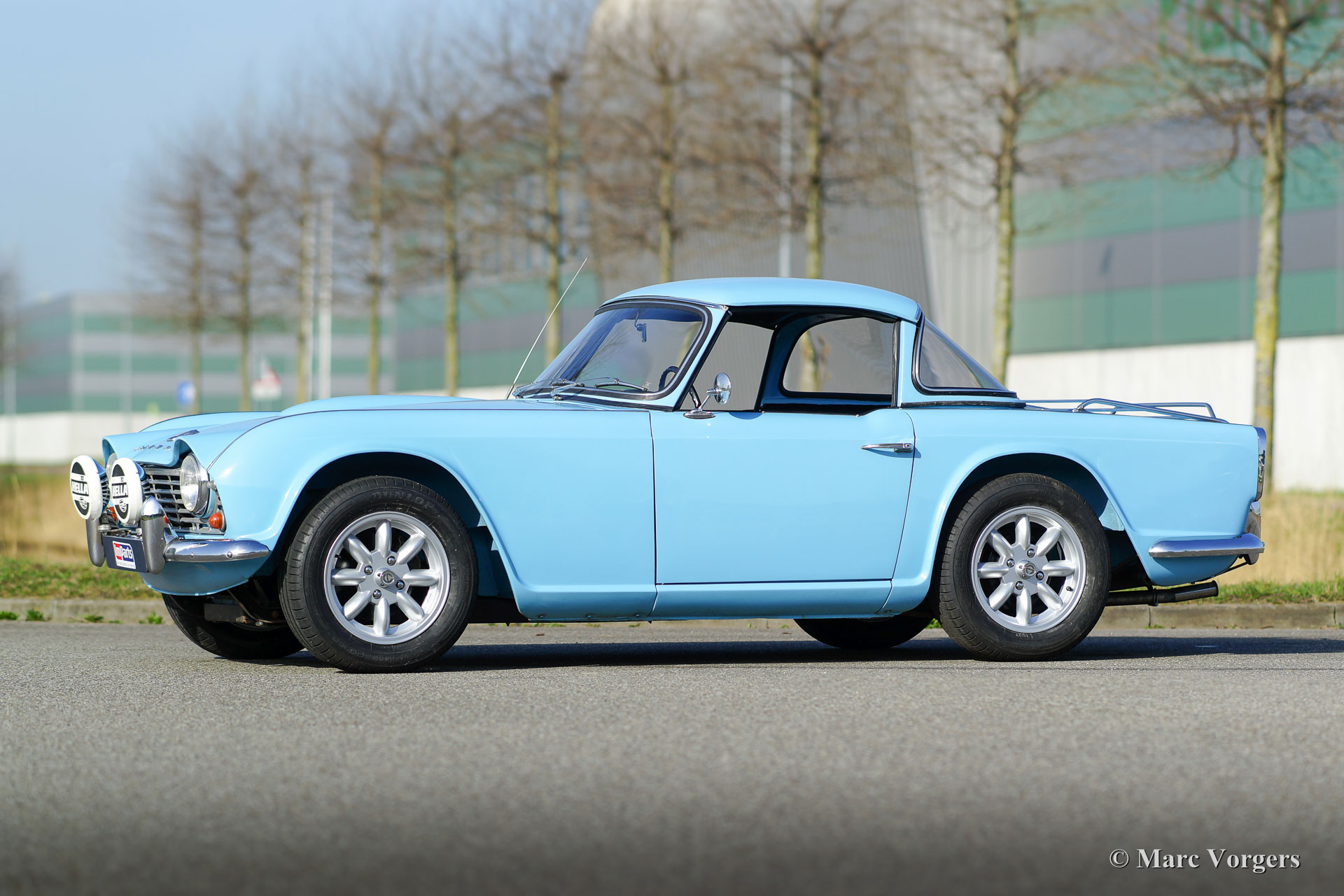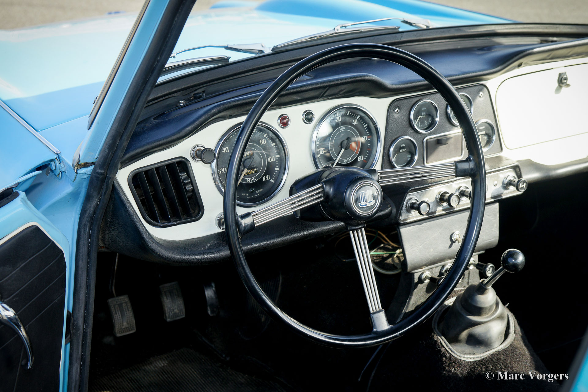 Triumph TR 4, année 1964. Couleur bleu pâle avec un Surrey-top en couleur de corps. Intérieur noir garni de passepoil blancs et de tapis noir. Ce merveilleux Triumph TR 4 a été restauré «body-off» il ya quelques années. Ce TR 4 se présente comme une voiture de rallye Triumph ‘works’ des années 1960 ! L'automobile est en excellente état et la voiture conduit très bien. Ce TR 4 dispose d'un sommier ‘Surrey’ recherché qui vient complet avec le panneau de toit interchangeable rigide et le toit pliable qui peut être rangé dans la chaussure. De plus, la voiture est équipée de roues de style Minilite et de grandes lampes de rallye Hella 192 au pare-chocs avant. L'intérieur montre tous les détails originaux comme le beau tableau de bord précoce et le volant d'origine. Un Triumph TR 4 très désirable !
