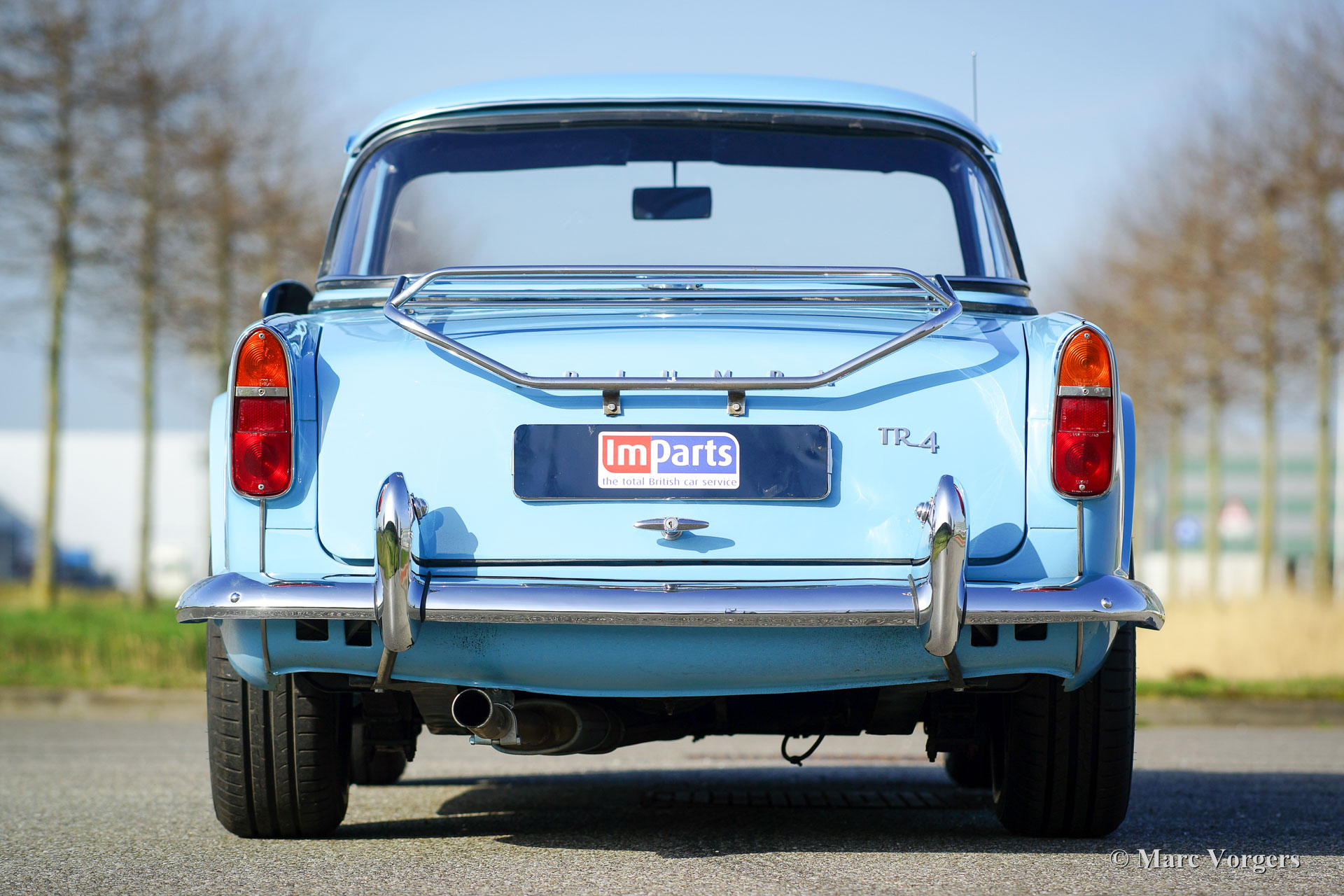 The Triumph TR 4 is a real British roadster; pure and honest. The TR 4 is built with a sturdy separate chassis with independent front suspension and a live rear axle. (IRS versions are equipped with independent rear suspension). The TR4 is equipped with disc brakes at the front and drum brakes at the rear. The bonnet shows a beautiful power bulge which gives space for the two carburettors. The Triumph TR 4 has a very beautiful wooden dashboard that is clear and functional and is equipped with large Smiths clocks. For the TR 4 a very nice "Surrey-top" is available as accessory. The Triumph "Surrey top" inspired Porsche to built the Porsche "Targa" versions. The Triumph TR4 is as all the TR versions a real drivers car.