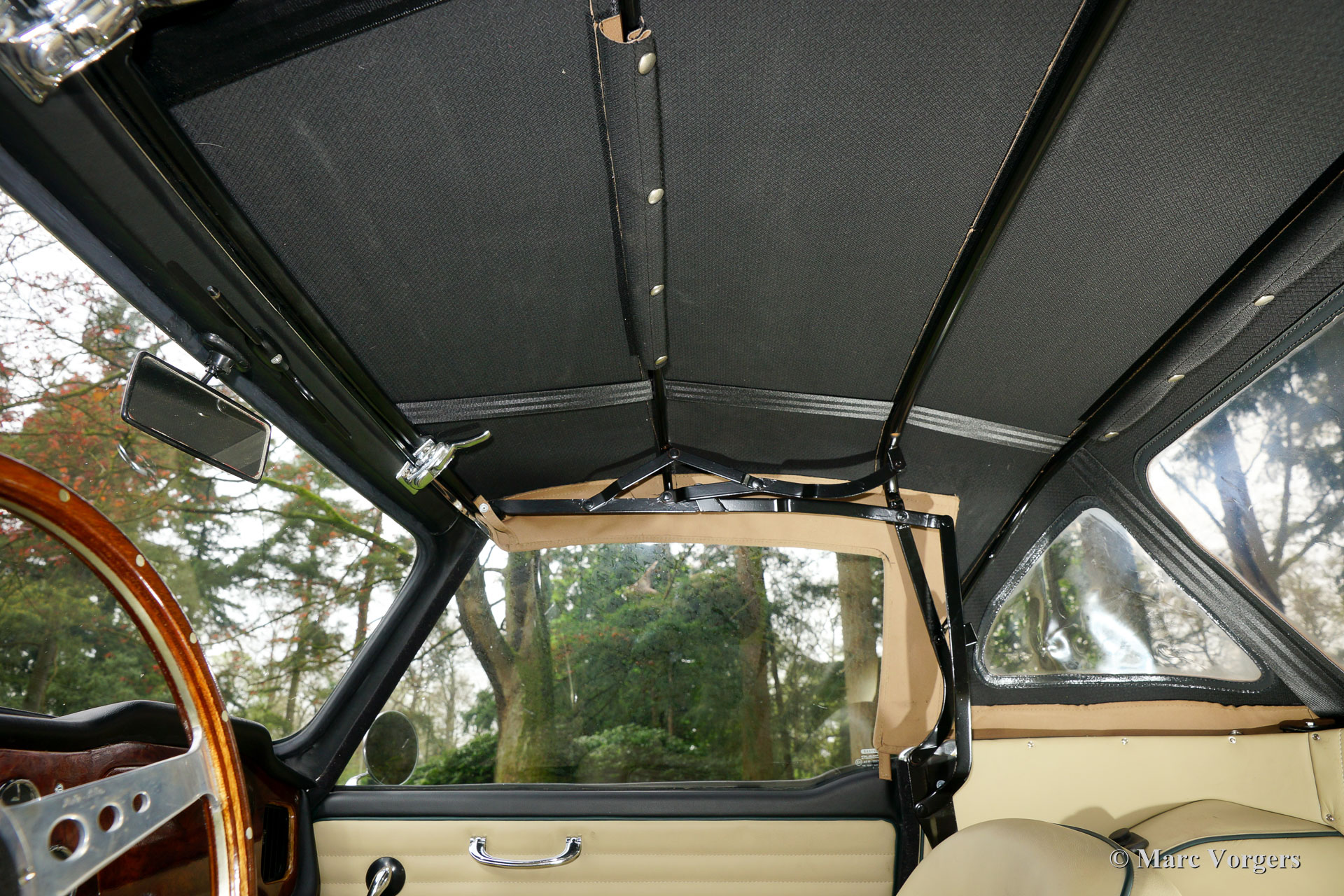 The Triumph TR 4 is a real British roadster; pure and honest. The TR 4 is built with a sturdy separate chassis with independent front suspension and a live rear axle. (IRS versions are equipped with independent rear suspension). The TR4 is equipped with disc brakes at the front and drum brakes at the rear. The bonnet shows a beautiful power bulge which gives space for the two carburettors. The Triumph TR 4 has a very beautiful wooden dashboard that is clear and functional and is equipped with large Smiths clocks. For the TR 4 a very nice "Surrey-top" is available as accessory. The Triumph "Surrey top inspired Porsche to built the Porsche "Targa" versions. The Triumph TR4 is as all the TR versions a real drivers car.