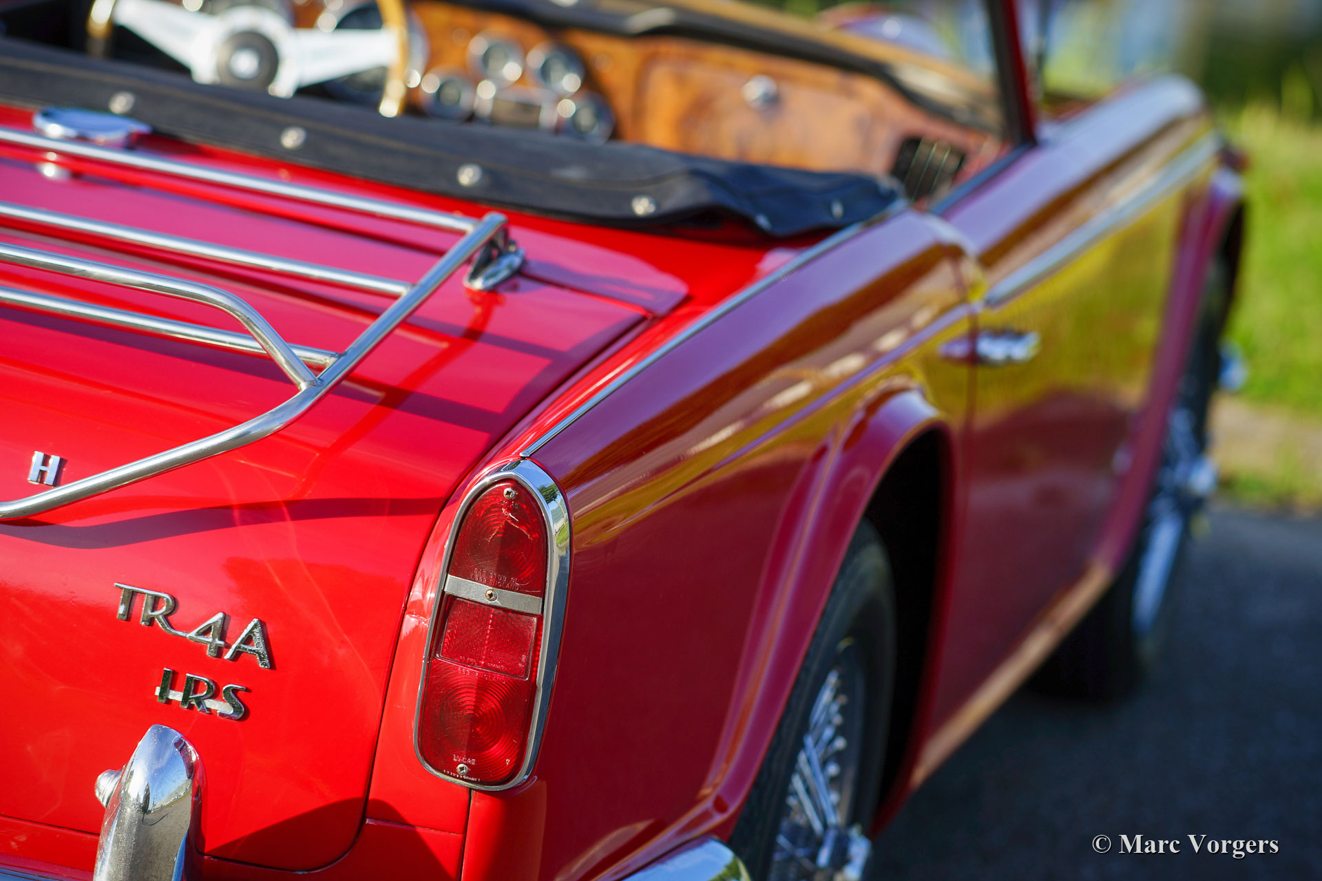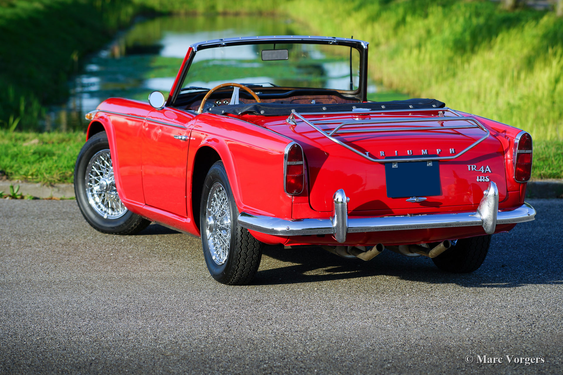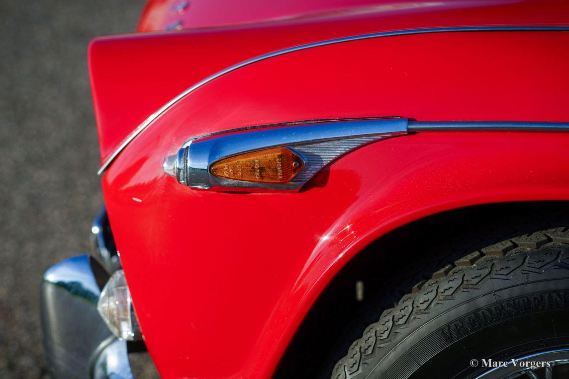 The Triumph TR 4 is a real British roadster; pure and honest. The TR 4 is built with a sturdy separate chassis with independent front suspension and a live rear axle. (IRS versions are equipped with independent rear suspension). The TR4 is equipped with disc brakes at the front and drum brakes at the rear. The bonnet shows a beautiful power bulge which gives space for the two carburettors. The Triumph TR 4 has a very beautiful wooden dashboard that is clear and functional and is equipped with large Smiths clocks. For the TR 4 a very nice "Surrey-top" is available as accessory. The Triumph "Surrey top inspired Porsche to built the Porsche "Targa" versions. The Triumph TR4 is as all the TR versions a real drivers car.