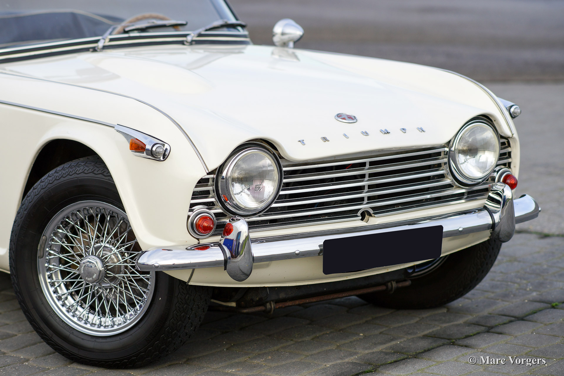 The Triumph TR 4 is a real British roadster; pure and honest. The TR 4 is built with a sturdy separate chassis with independent front suspension and a live rear axle. (IRS versions are equipped with independent rear suspension). The TR4 is equipped with disc brakes at the front and drum brakes at the rear. The bonnet shows a beautiful power bulge which gives space for the two carburettors. The Triumph TR 4 has a very beautiful wooden dashboard that is clear and functional and is equipped with large Smiths clocks. For the TR 4 a very nice "Surrey-top" is available as accessory. The Triumph "Surrey top inspired Porsche to built the Porsche "Targa" versions. The Triumph TR4 is as all the TR versions a real drivers car.