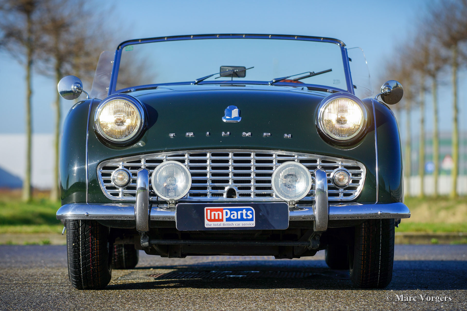 In the year 1957 the Triumph TR3a was presented. Again Triumph changed the grille (wider, covering the entire width of the car). Also the headlamps were placed a little backwards and door handles were fitted. Very short after the introduction of the TR 3a the Triumph TR 3b was introduced, the only change was the larger cylinder capacity of the engine.