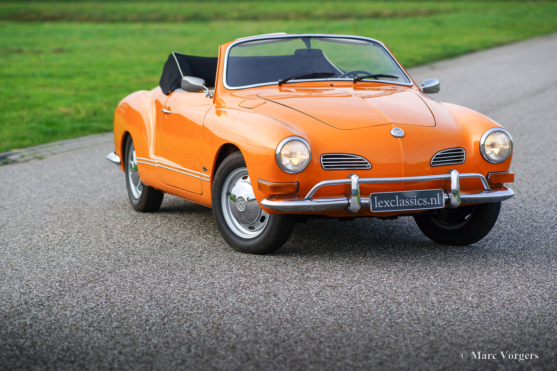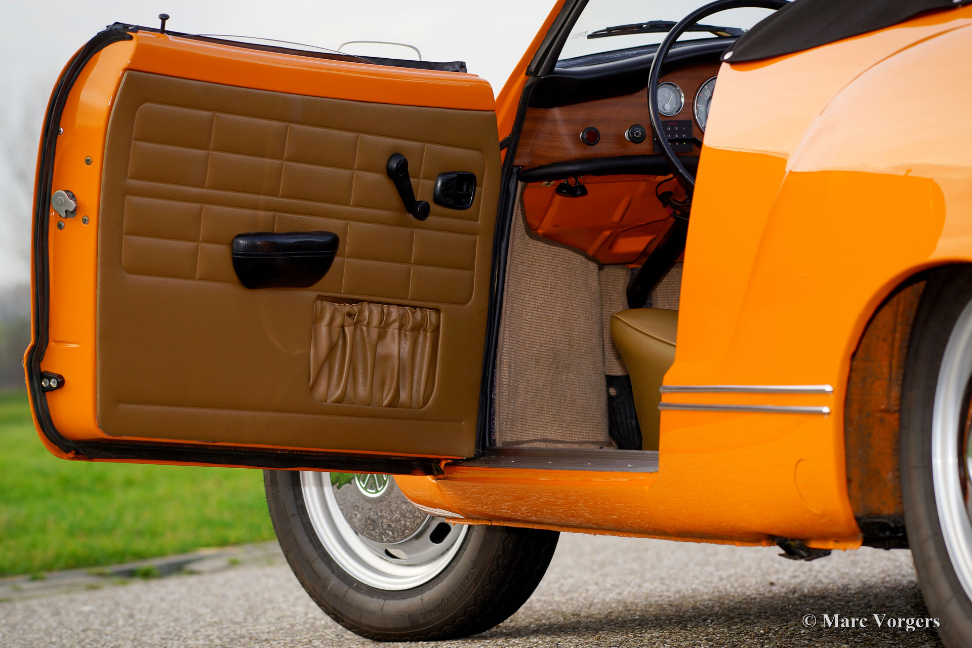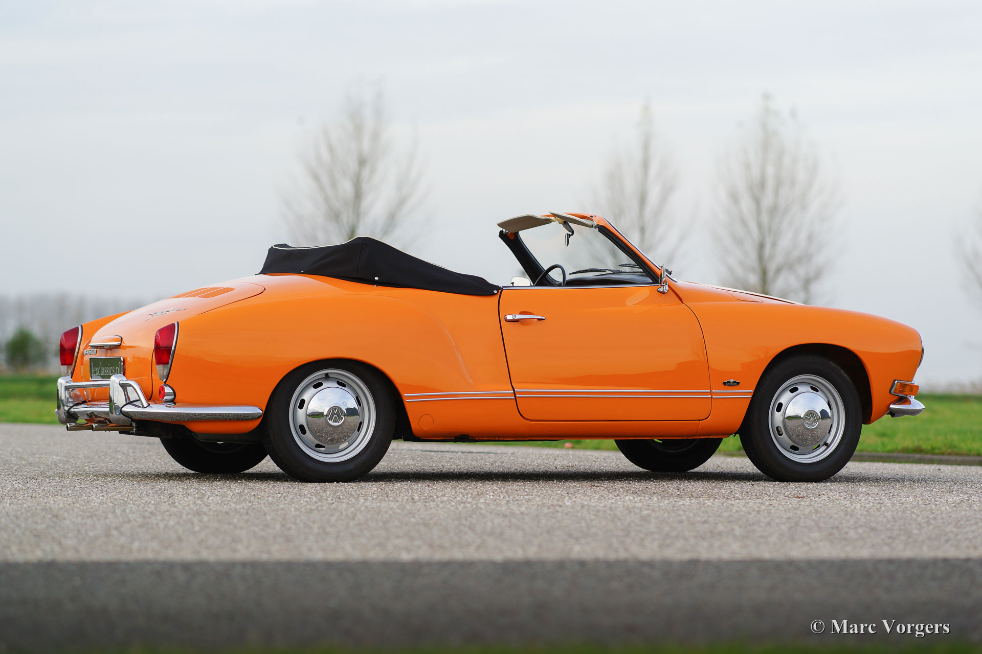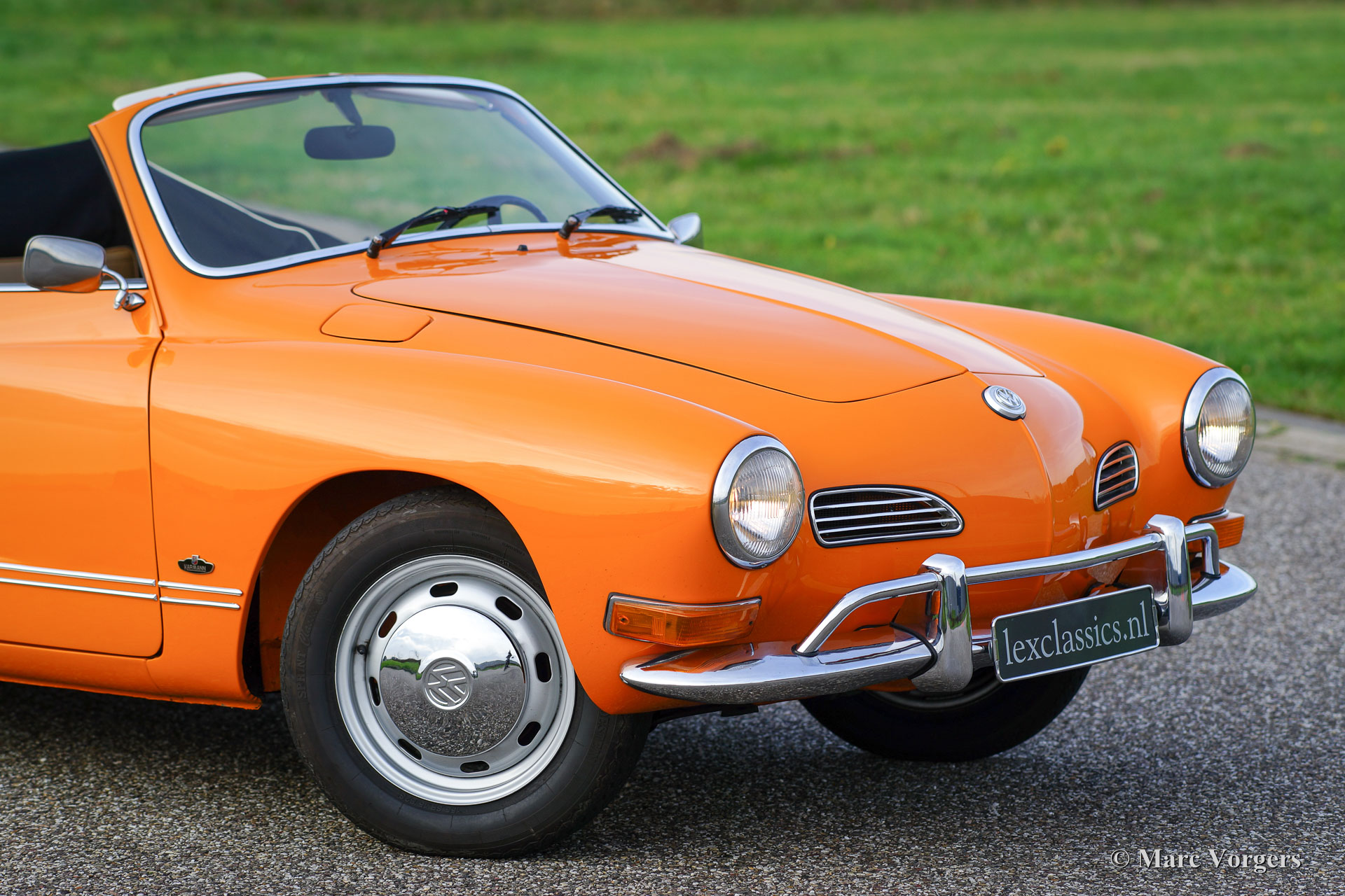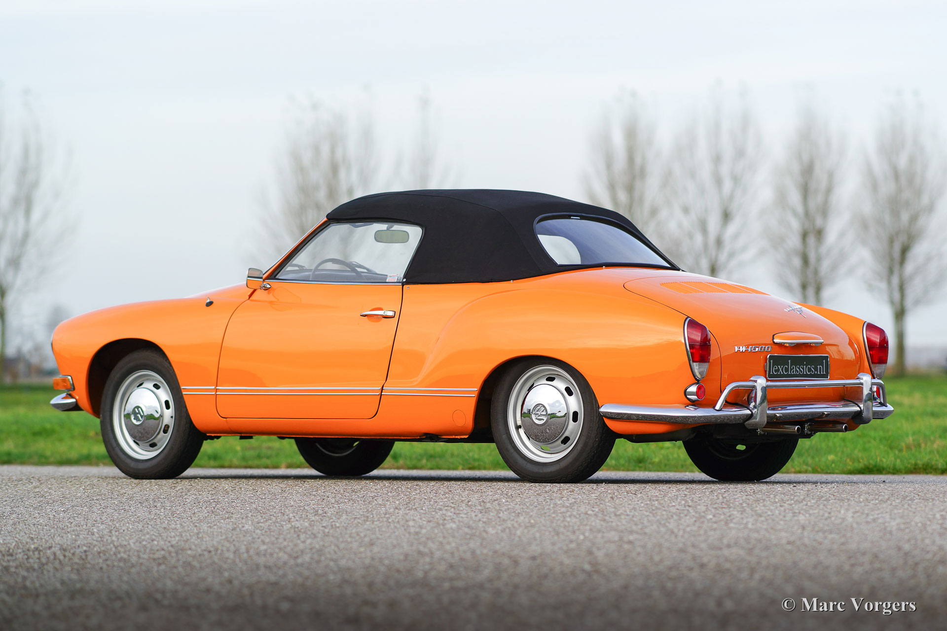 VW Karmann ghia 1500 cabriolet, année 1969. Couleur orange (Signalorange L20E) avec un intérieur beige en similicuir. Tapis beige et tapis protecteurs noirs. Capot noir et couvercle noir. Ce superbe Volkswagen Karmann Ghia cabriolet est en superbe état ! En 1969 la voiture a été vendue nouvelle à un employé de l'usine allemande VW. Décennies plus tard, la voiture a été importée aux Pays-Bas où la voiture a été restaurée détaillée. La restauration a débuté en 2005 et a été terminée en 2011. Les factures de la restauration sont présentes. Ce VW Karmann Ghia dispose du moteur boxer délicieuse 1500 cc à quatre cylindres à refroidissement par air. La voiture roule parfaitement et l'expérience de conduite est super !