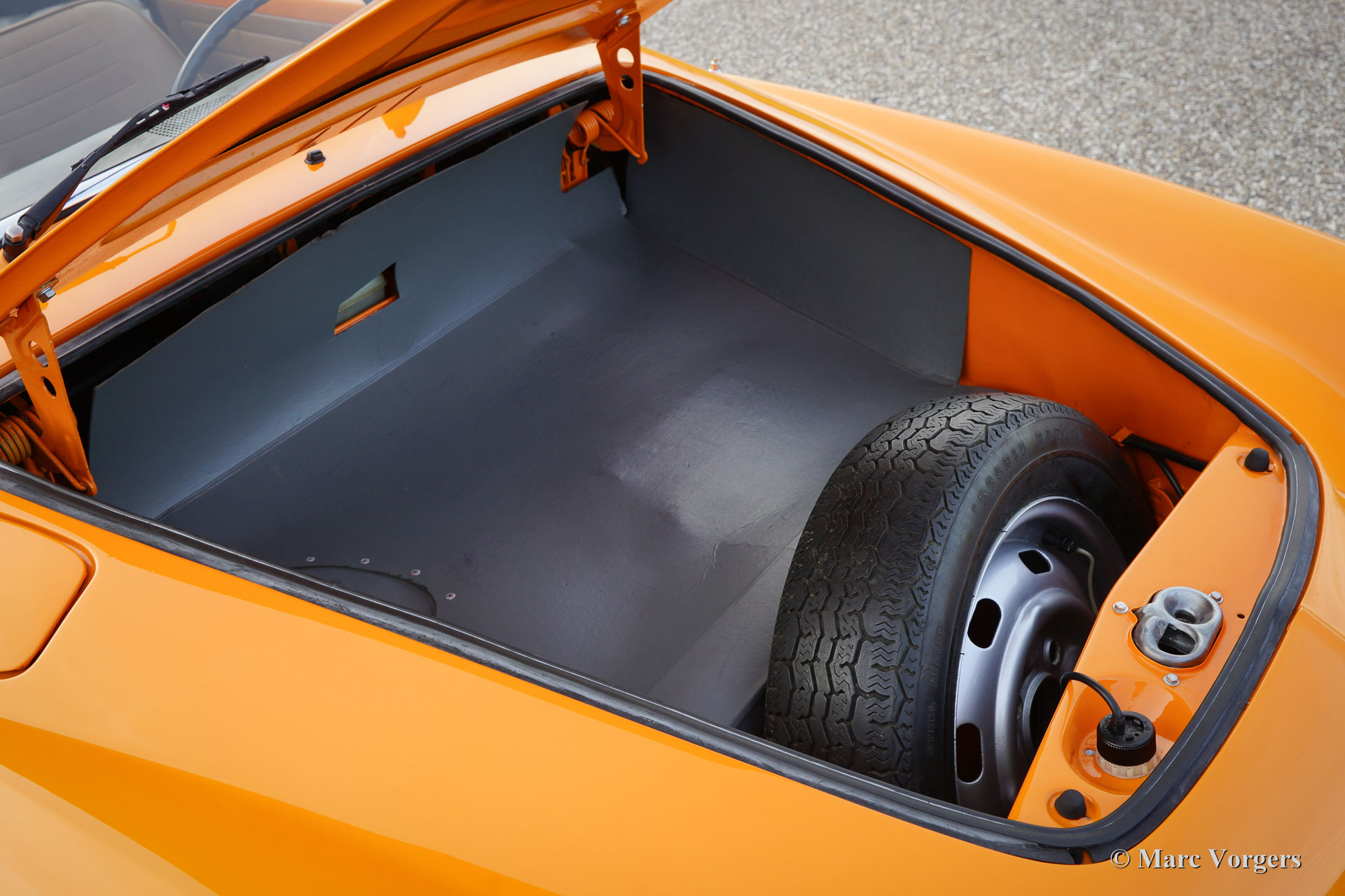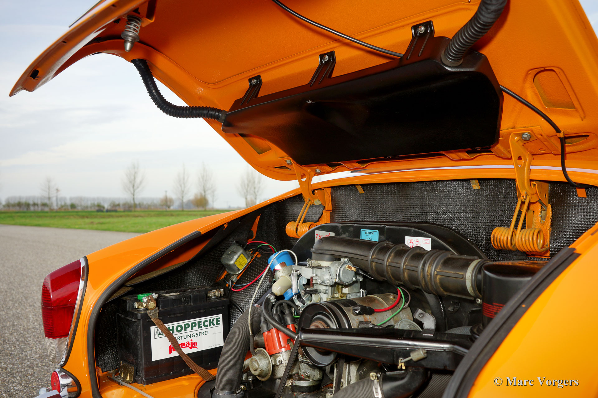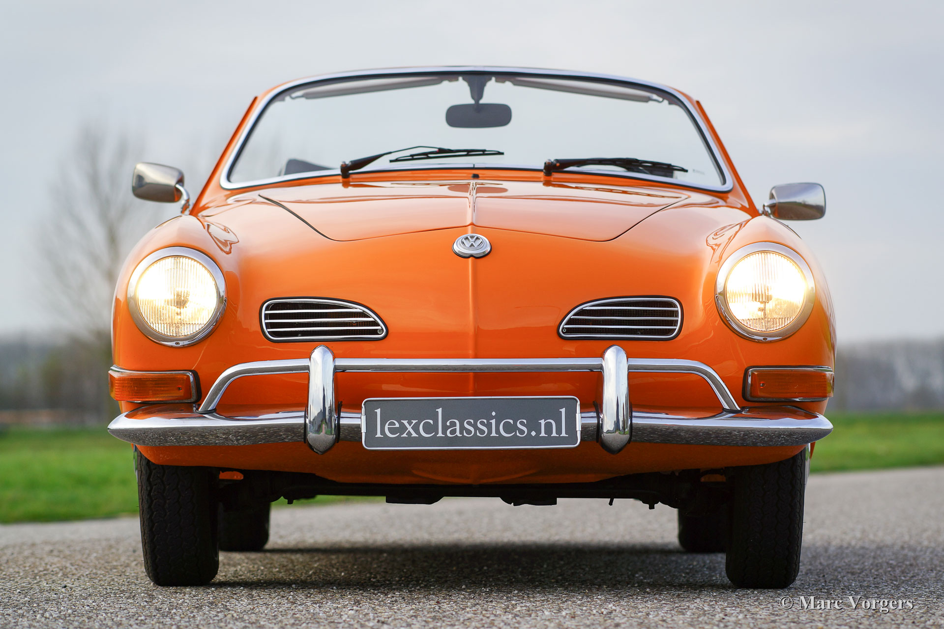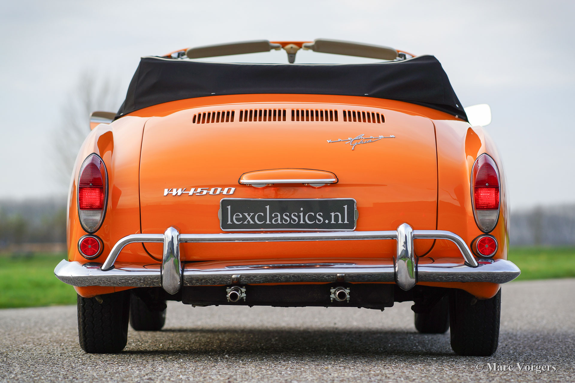VW Karmann ghia 1500 cabriolet, année 1969. Couleur orange (Signalorange L20E) avec un intérieur beige en similicuir. Tapis beige et tapis protecteurs noirs. Capot noir et couvercle noir. Ce superbe Volkswagen Karmann Ghia cabriolet est en superbe état ! En 1969 la voiture a été vendue nouvelle à un employé de l'usine allemande VW. Décennies plus tard, la voiture a été importée aux Pays-Bas où la voiture a été restaurée détaillée. La restauration a débuté en 2005 et a été terminée en 2011. Les factures de la restauration sont présentes. Ce VW Karmann Ghia dispose du moteur boxer délicieuse 1500 cc à quatre cylindres à refroidissement par air. La voiture roule parfaitement et l'expérience de conduite est super !