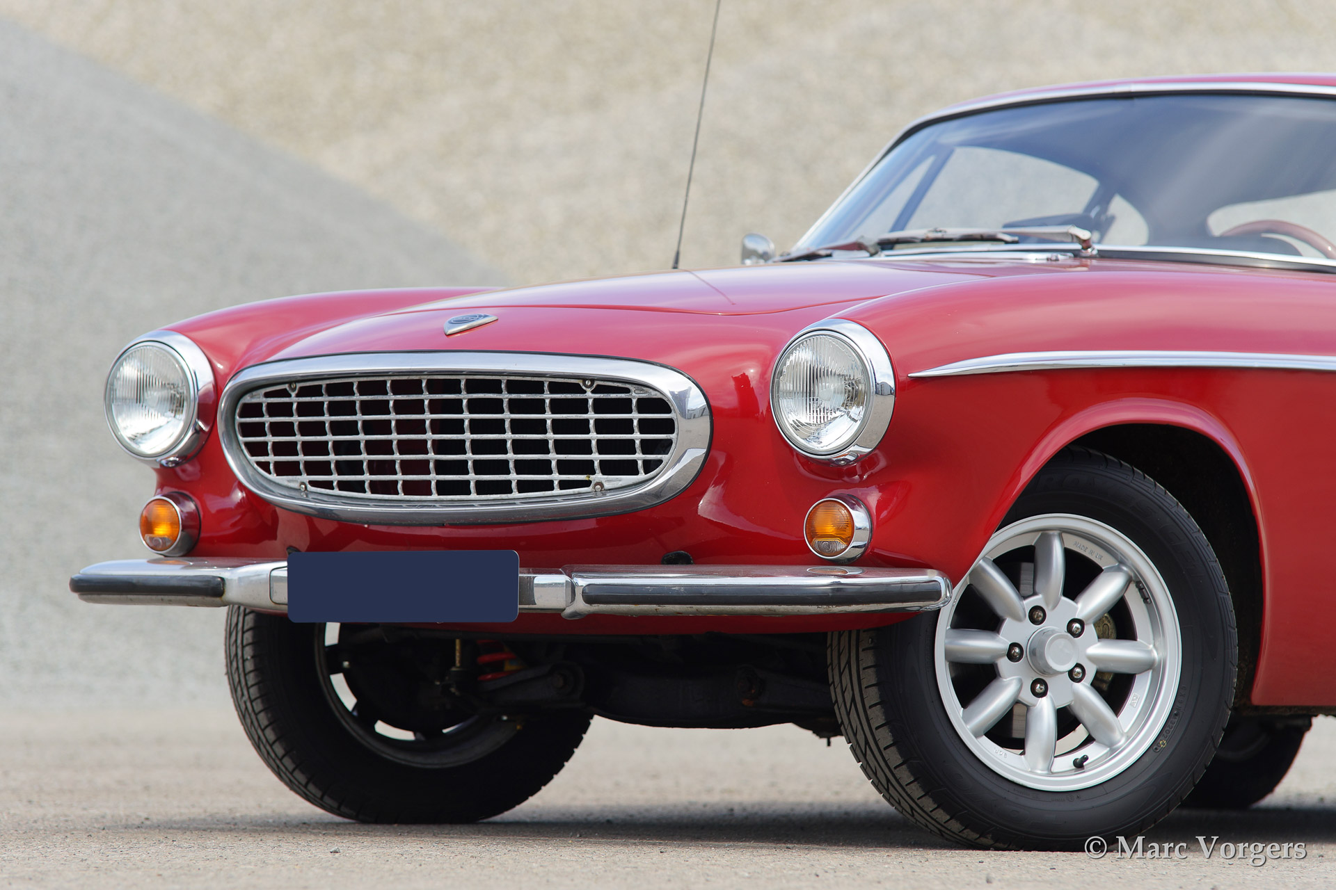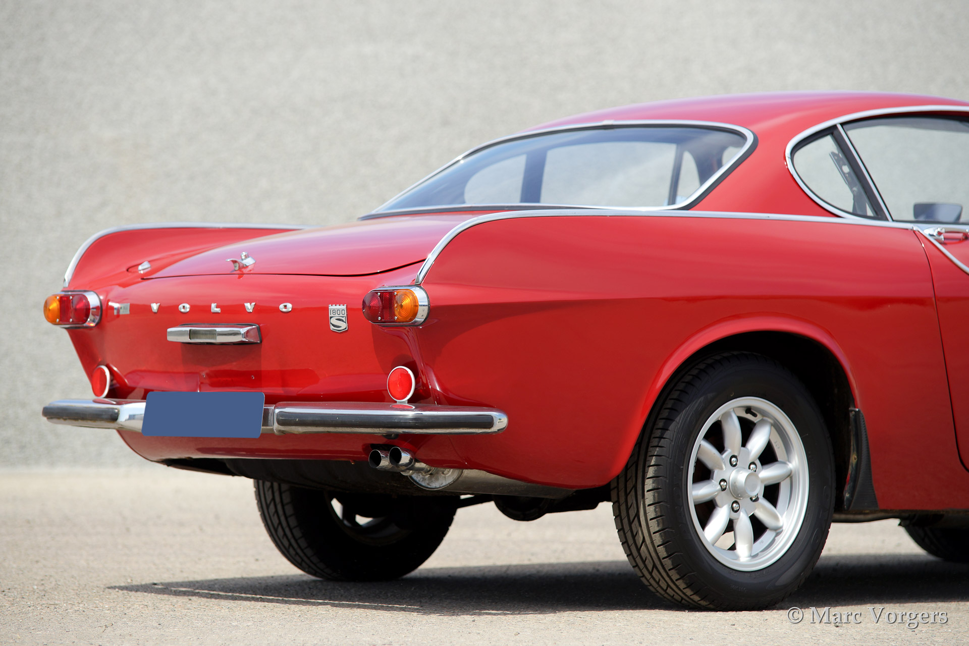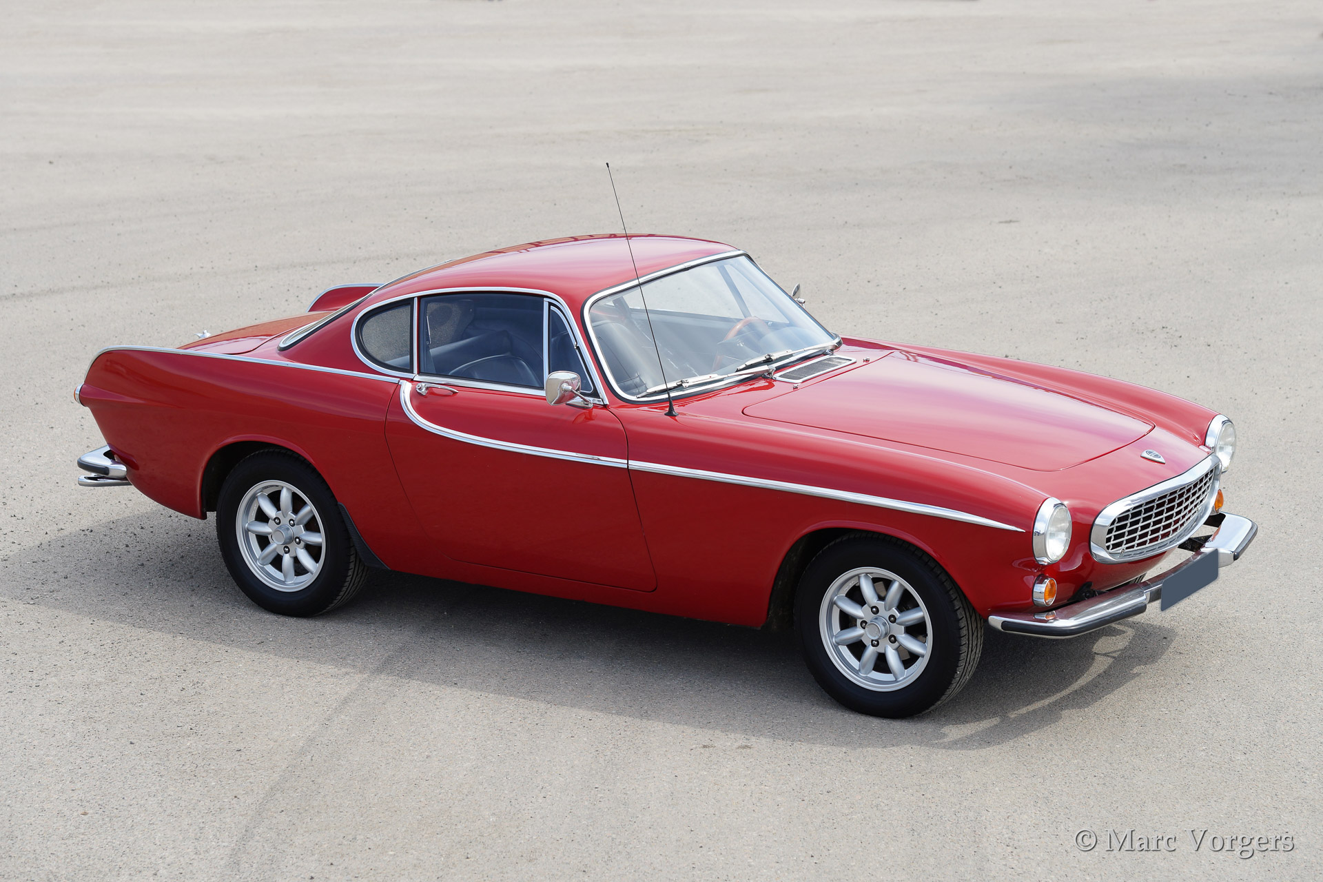 Volvo 1800 S, year 1966. Colour red with a black leather interior and anthracite/black carpet. This 1800 S features Minilite style alloy wheels and overdrive.