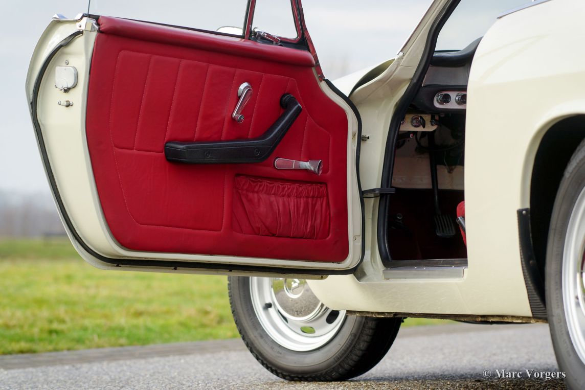 Volvo 1800 S, année 1966. Couleur crème blanche avec un intérieur en cuir rouge et tapis rouge. Cette belle Volvo 1800 S a été largement restaurée par un spécialiste néerlandais dans le passé. L'automobile est en excellent état. Cette Volvo est équipée avec des sièges spéciaux et overdrive. La voiture montre des très beaux détails d'origine et est équipée de roues à disques en acier d'origine avec moyeu-casquettes. En outre, un ensemble de roues en alliage léger de 16 pouces est inclus.