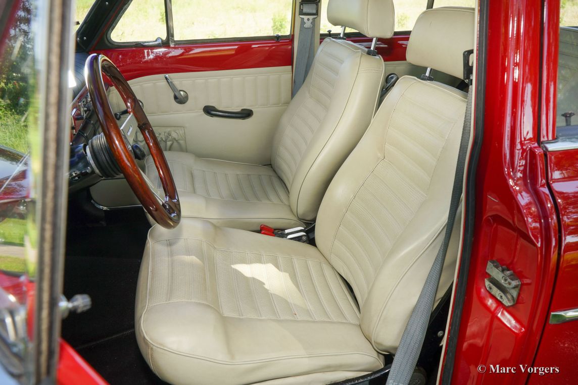 Volvo 221 ‘Amazon’ break, année 1967. Numéro de châssis (VIN) 2224410507XX. De couleur rouge avec un intérieur en cuir beige et un tapis noir. Cette belle break familiale Volvo 221 fut importée aux Pays-Bas en 1996. Il y a environ cinq ans, la voiture fut entièrement restaurée et remise en état dans les meilleures conditions ! Tout a été restauré et révisé ; la carrosserie, l'intérieur et les composants mécaniques. La carrosserie montre un ajustement parfait des panneaux, une peinture magnifique et du chrome superbe. L'intérieur fut recouvert de cuir beige. Le compartiment moteur est très propre et joliment détaillée. Cette Volvo 221 ‘Amazon’ est en superbe état de TOP ; concours ! Il sera difficile de trouver un autre exemple dans cette condition optimale. La voiture est équipée d’overdrive, d’une galerie de toit, d’une barre de remorquage et de jantes en alliage style MiniLite. Une Volvo 221 ‘Amazon’ hautement souhaitable !