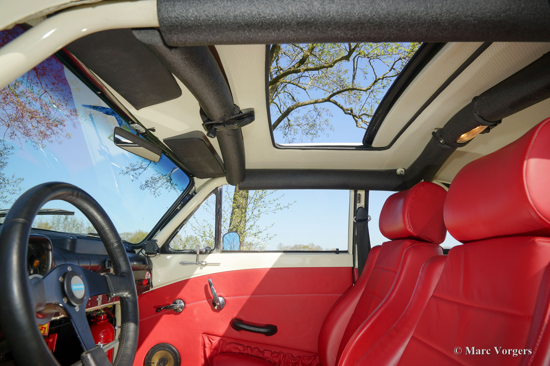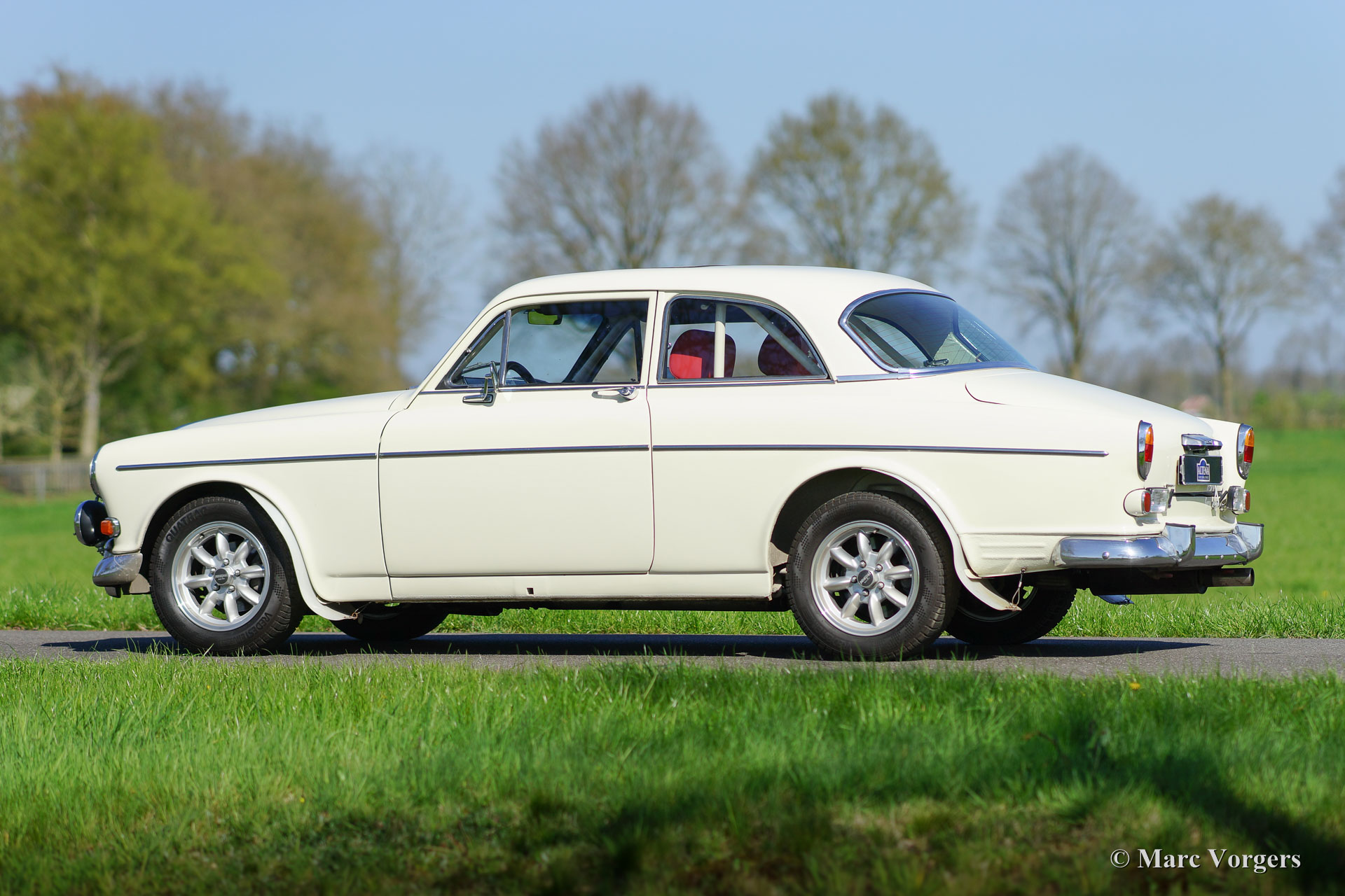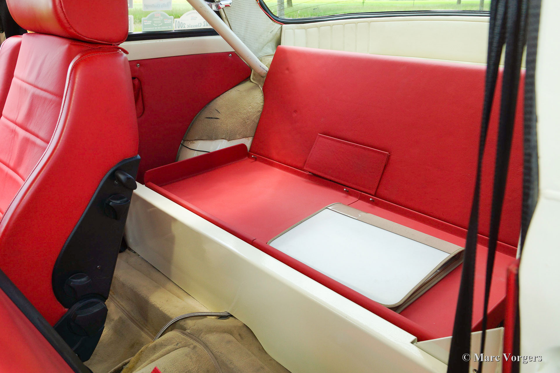 Volvo P130 Amazon rally car, year 1967. Colour crème with a red leather fully prepared rally interior and beige carpet. This Volvo P130 Amazon rally car was extensively restored and beautifully rally prepared! The car features a specially tuned engine, two twin choke Weber carburettors, up rated suspension, fully equipped rally interior and dashboard, safety fuel cell in the boot, Panasport alloy wheels and much more.