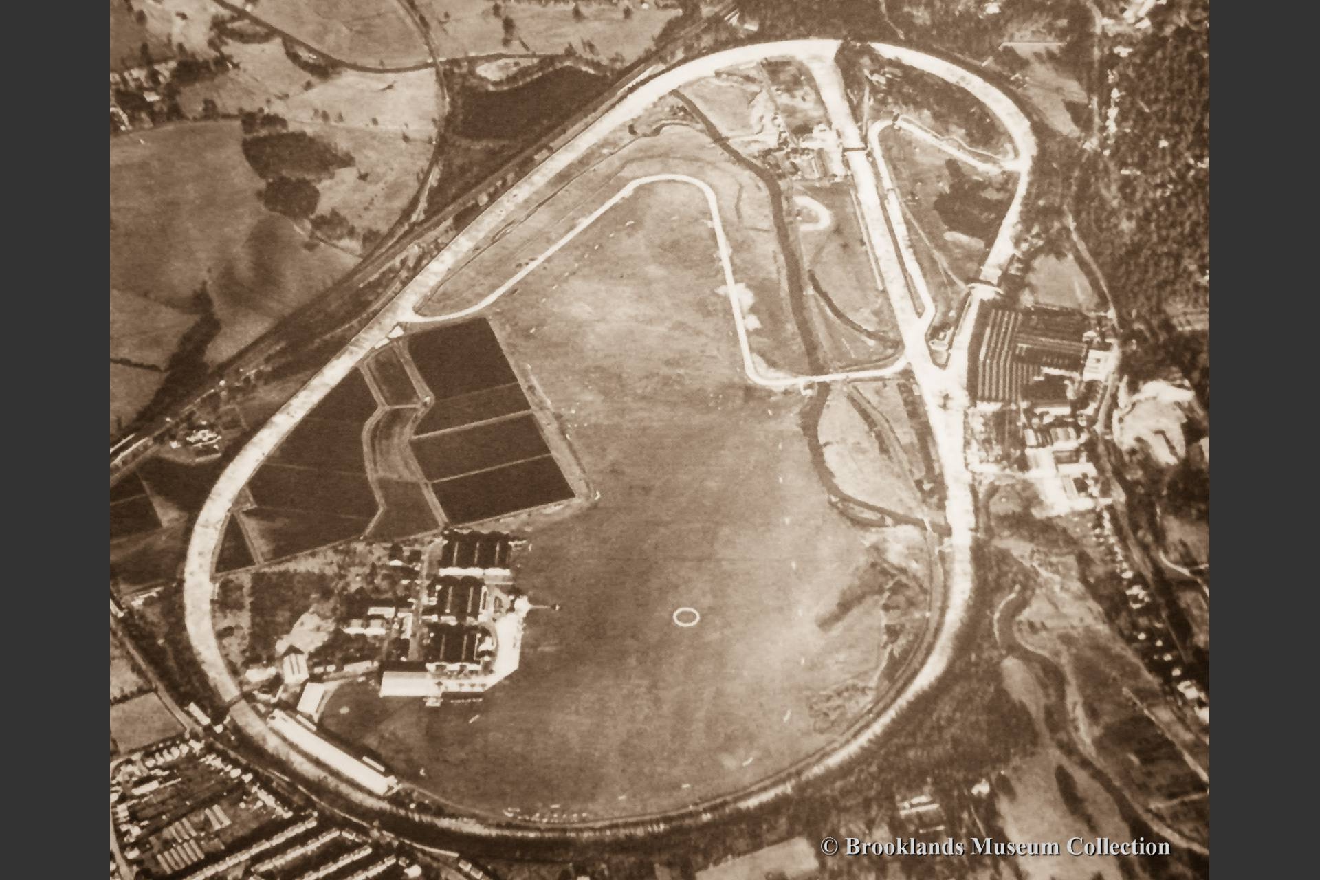 • 3 Aerial photo of Brooklands in the late 1930ies incorporating the 'mountain circuit' and the 'Campbell circuit'