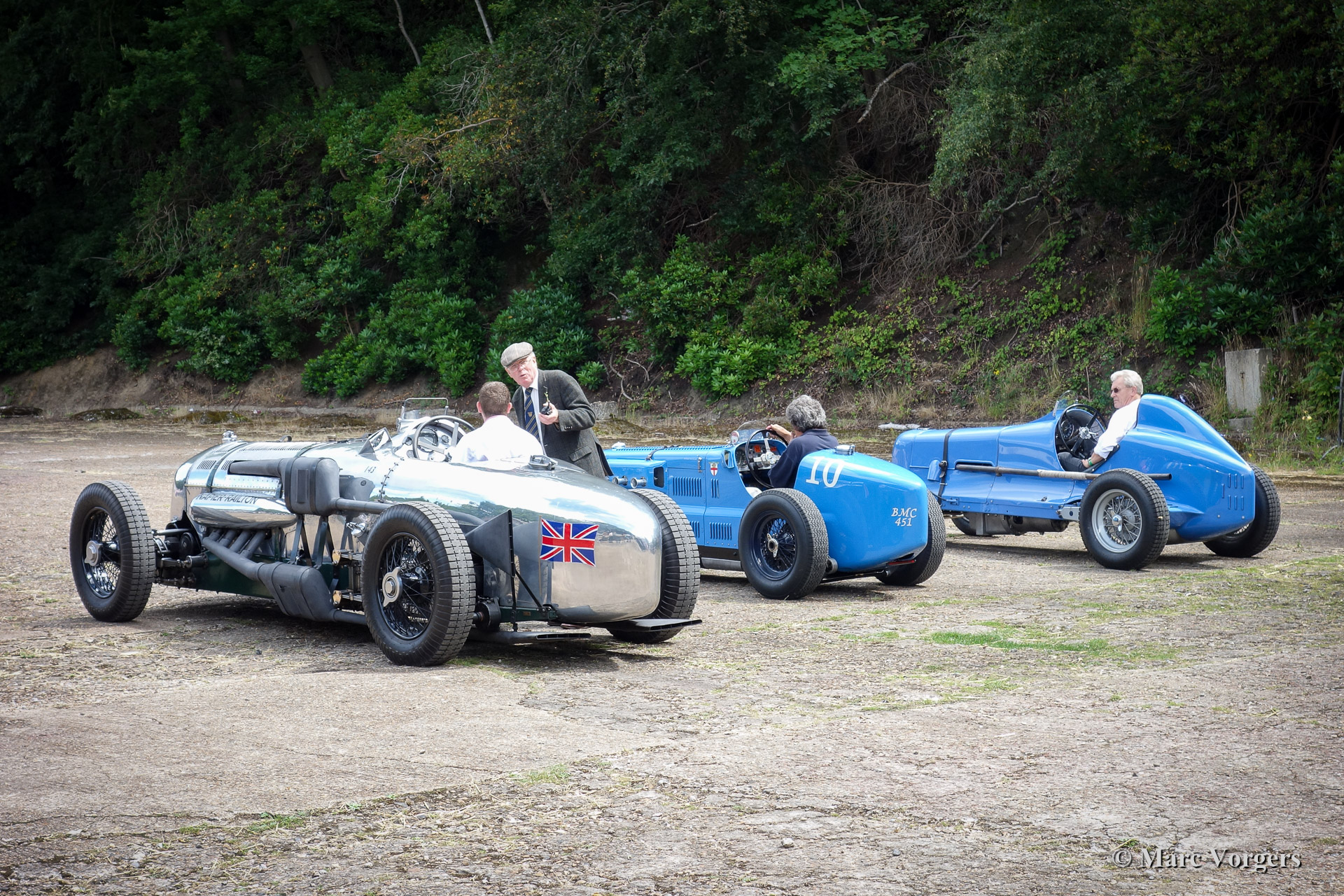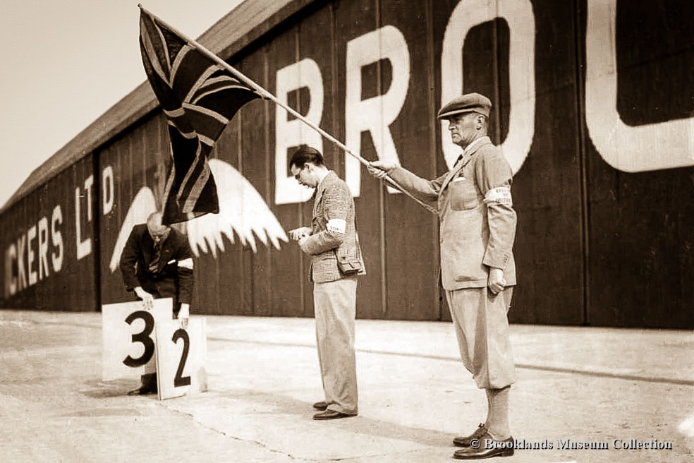 • 74 Malcolm Campbell is waving the starting flag in the 1937 500 KM race
