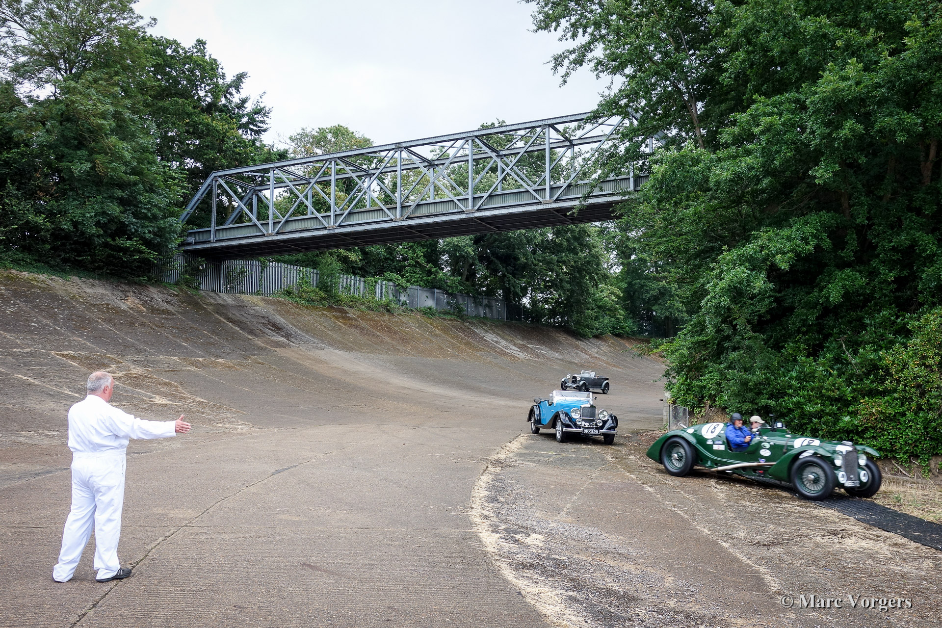 • 93-100 Photos taken at the Brooklands Museum site. The old clubhouse and the 'members banking' with the 'members bridge' as most famous Brooklands landmark. These photos were taken during the Brooklands Members Reunion on Sunday 13 Juli 2014