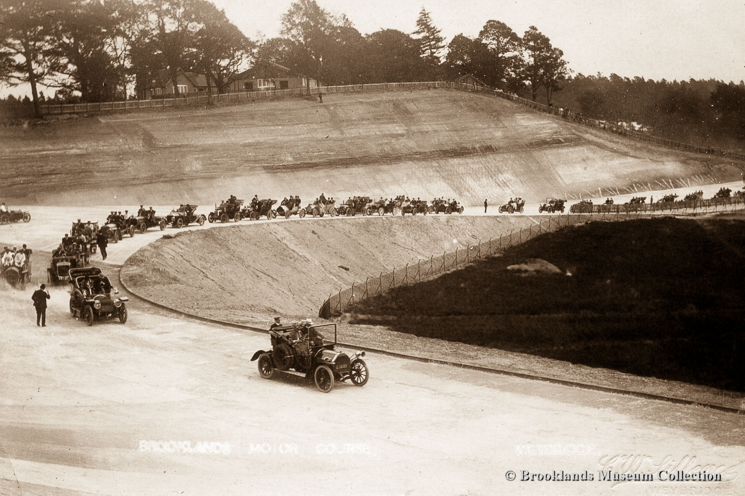 • 7-8 Opening of the track with speech by Hugh Locke King, opening parade and luncheon 17 June 1907. During the parade a few participants raced each other on the fresh concrete
