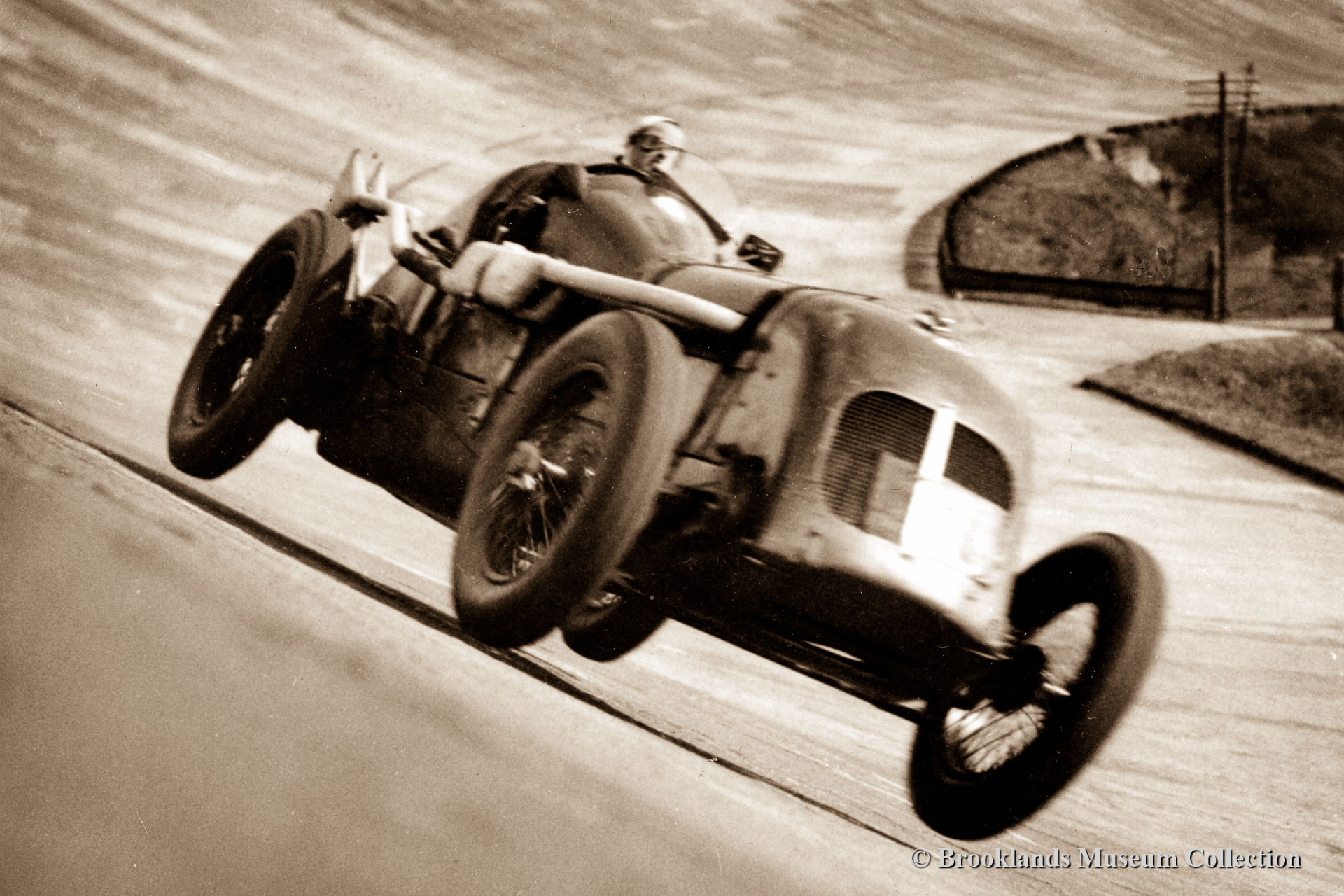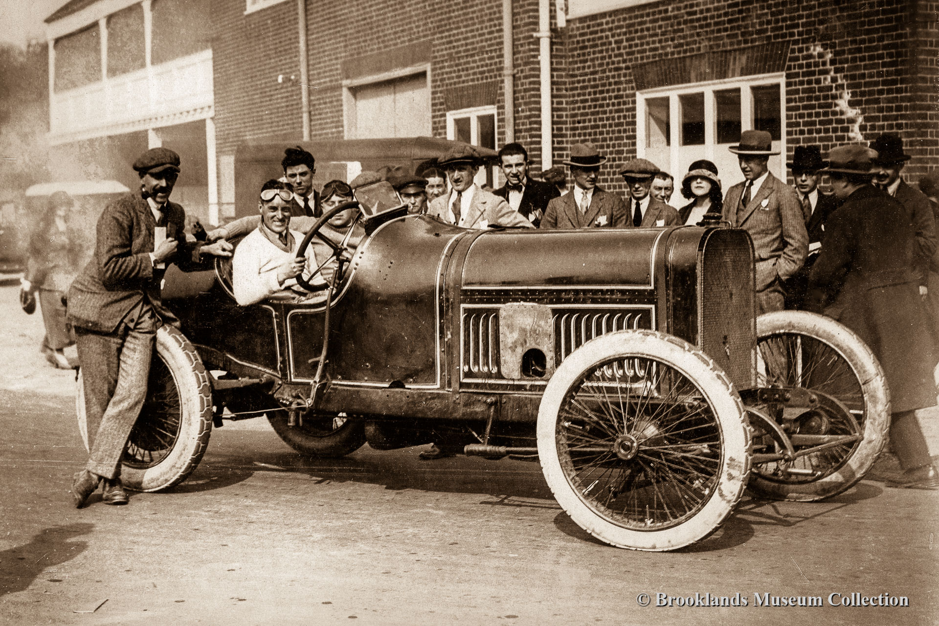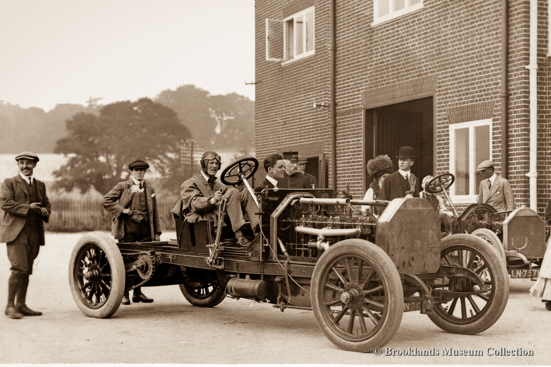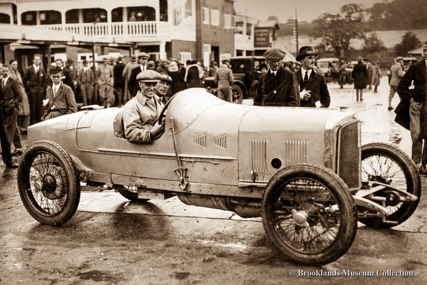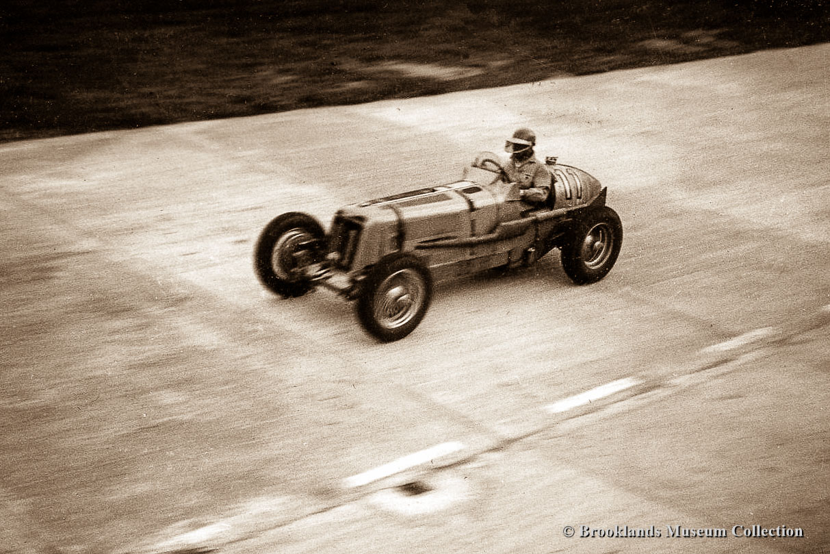 • 22 Brooklands Giant Chitty 1 with Zborowski at the wheel in front of the clubhouse.