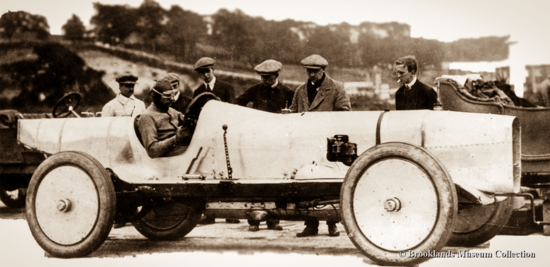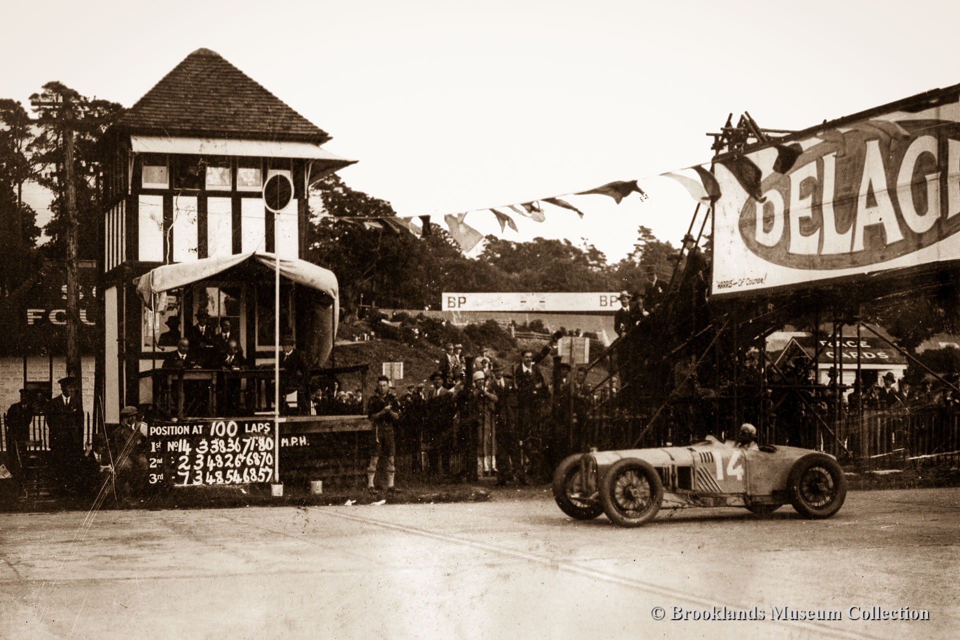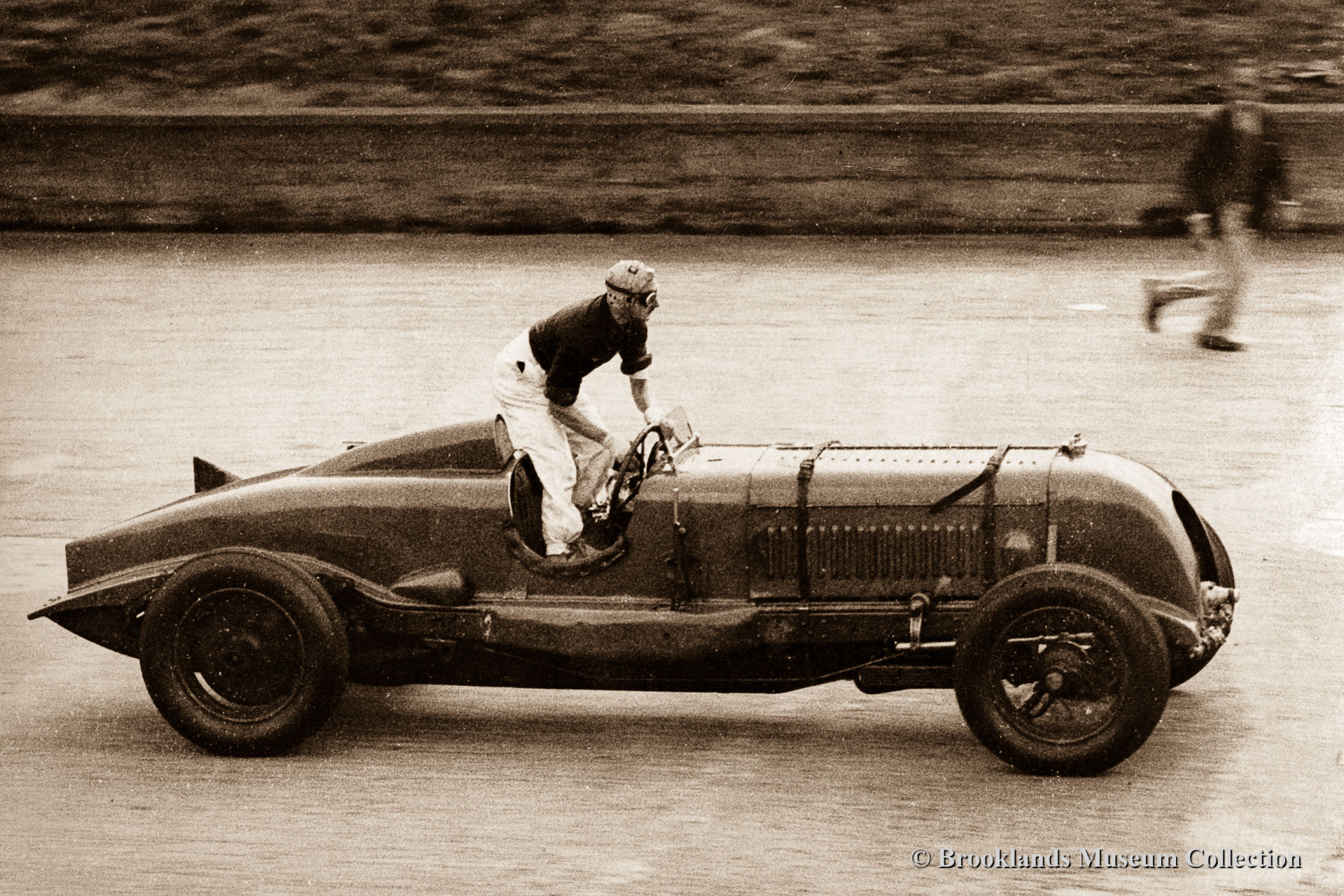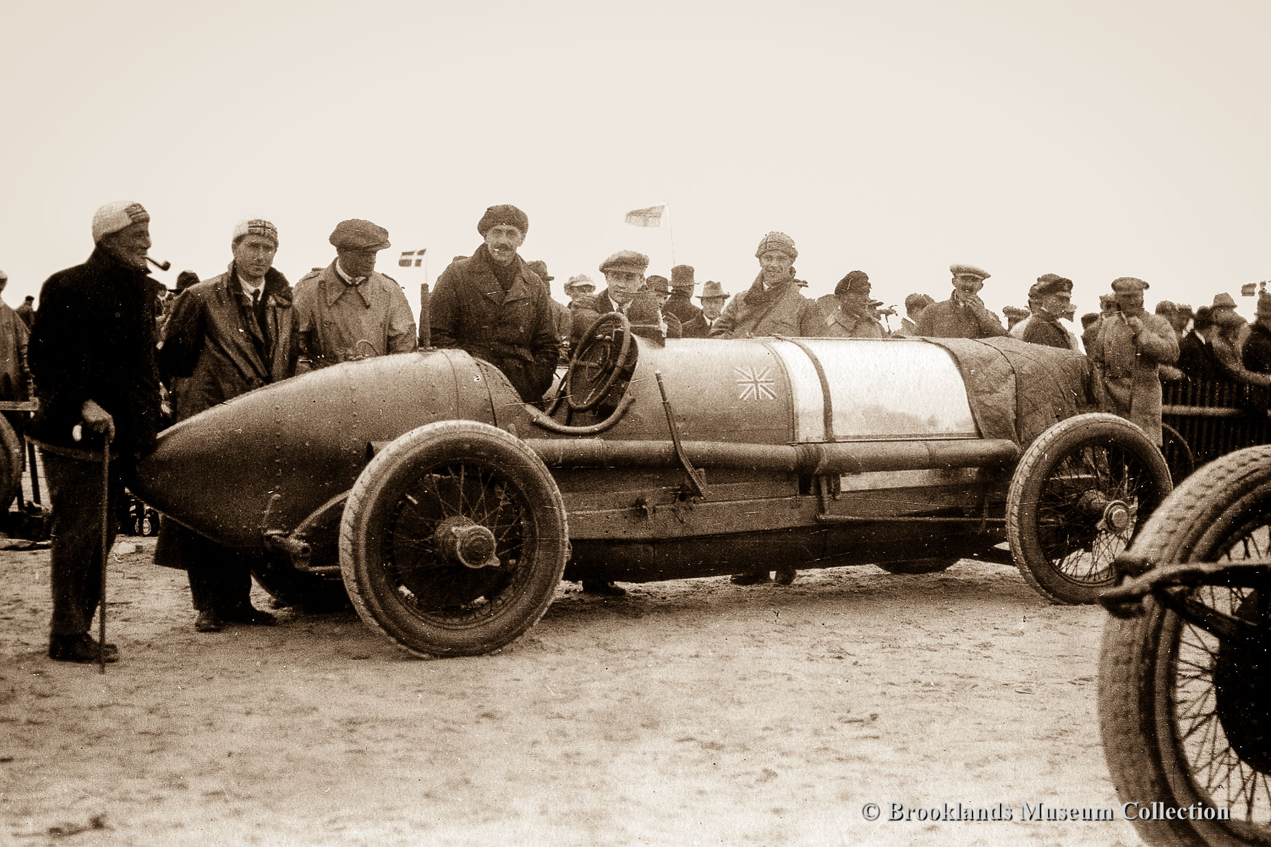 • 22 Brooklands Giant Chitty 1 with Zborowski at the wheel in front of the clubhouse.