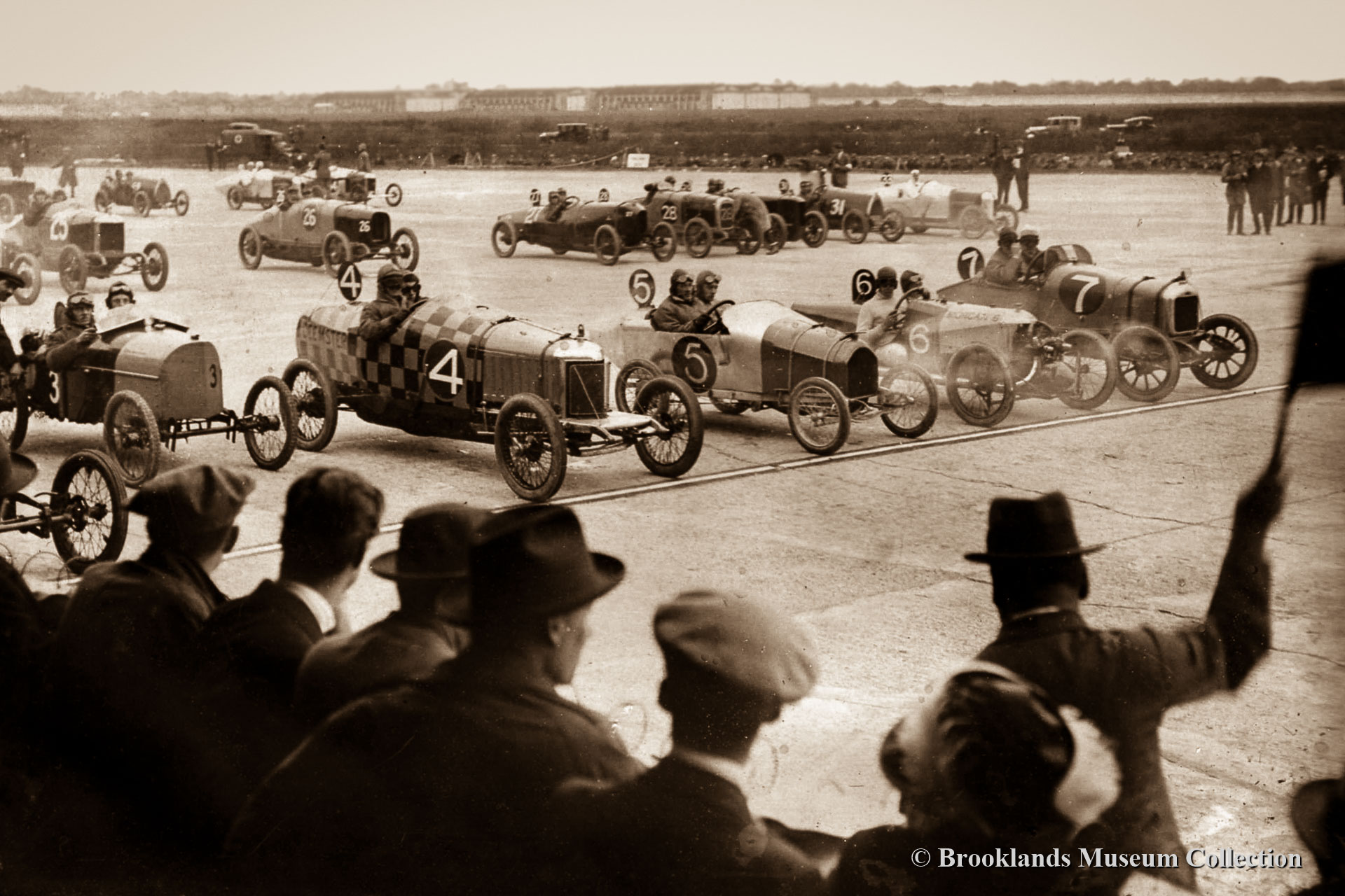 • 29 The first Junior Car Club (JCC) 200 miles race for 'voiturettes' (racing cars up to 1500 cc). View of the start-line 22 October 1921